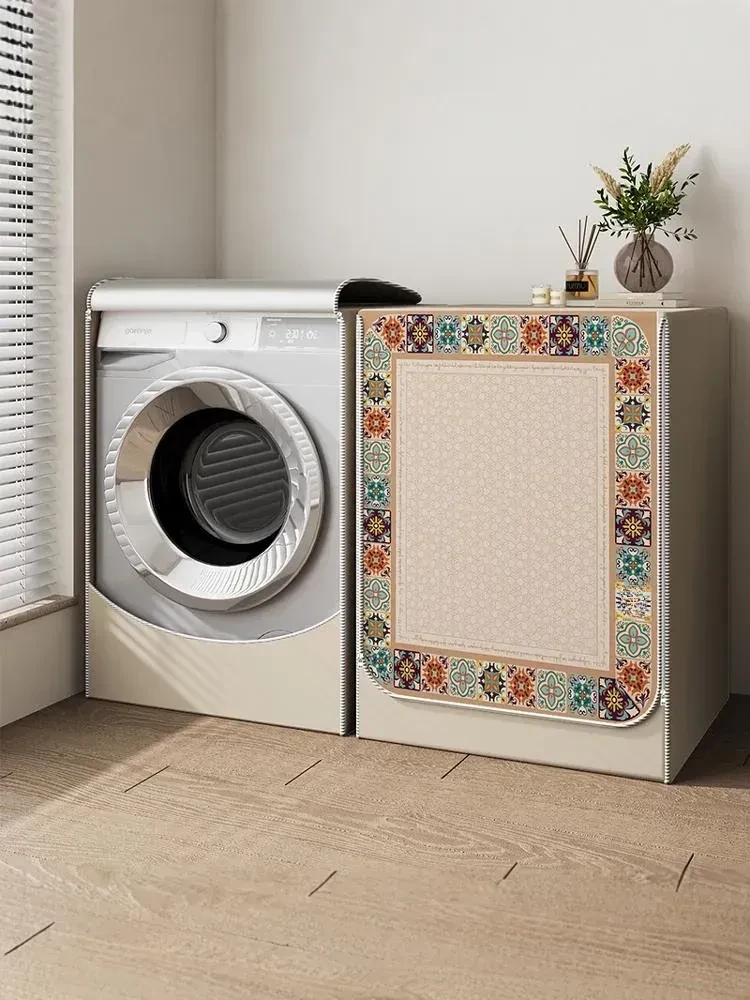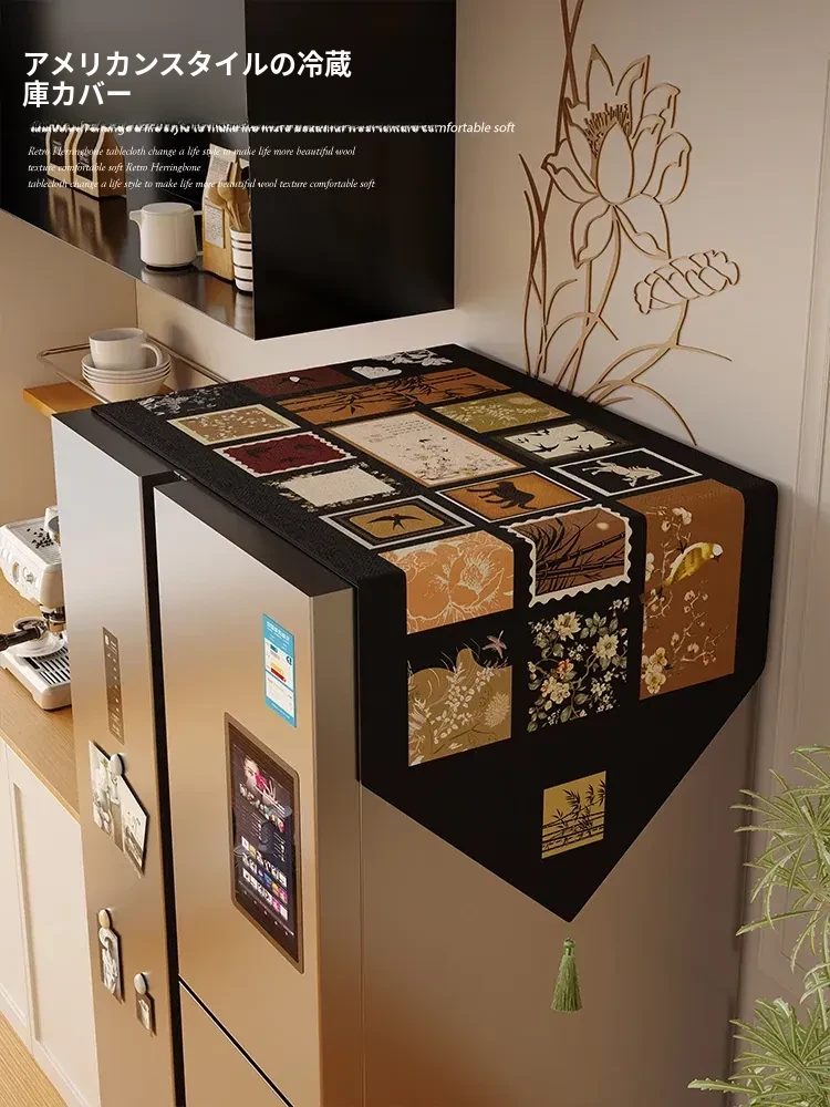 アメリカンスタイル冷蔵庫専用防塵カバー - 高級感あふれる通気性のあるデザインで、ベッドサイドテーブルや洗濯機もしっかりガード!おしゃれに埃から守ります。