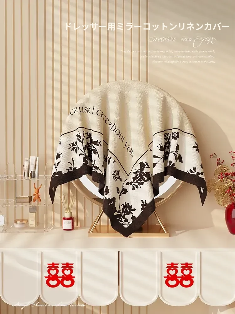 ドレッサー用円形ミラー防塵カバー - アメリカンスタイルのドレッサーにぴったり!プリンターや他の家具も守るおしゃれで実用的な防塵カバー。埃から守りながら、お部屋を美しく演出します!