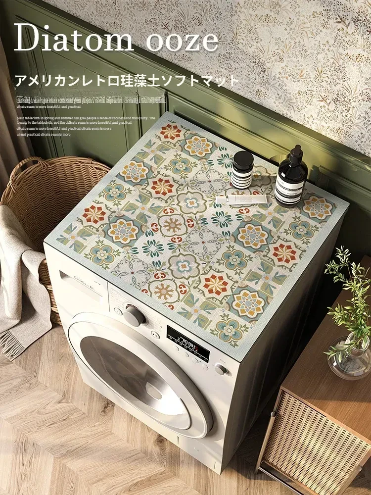 アメリカンスタイルのラグジュアリー 滞水防塵マット 洗濯機用、ベッドサイドキャビネット用 滑り止めデスクカバー シリカゲル製、あなたの部屋をスタイリッシュに守ります!