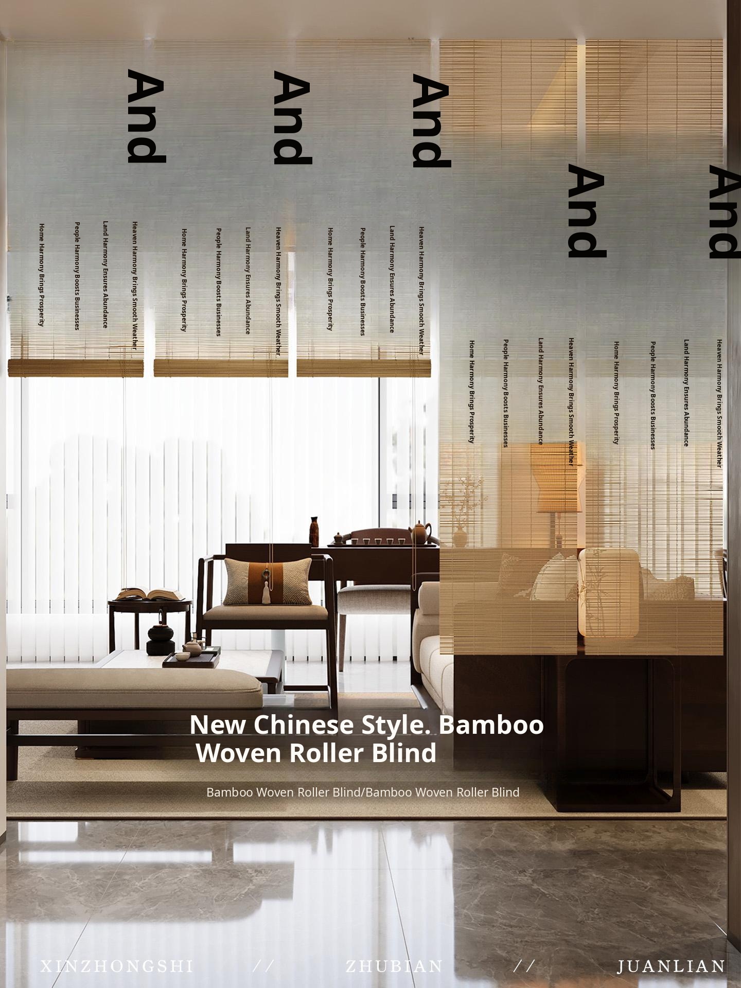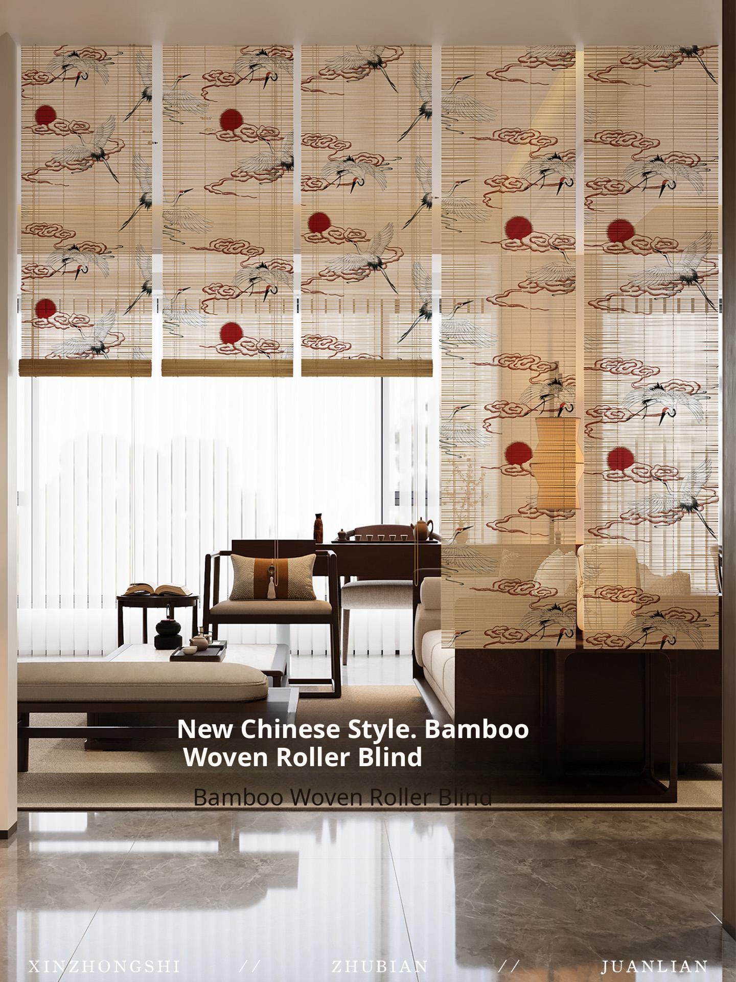 Zen-Style New Chinese Bamboo Roller Blinds - Elegant Tea Room Bamboo Curtains for Sunshade and Privacy, No Drill Installation, Perfect Wall Decor