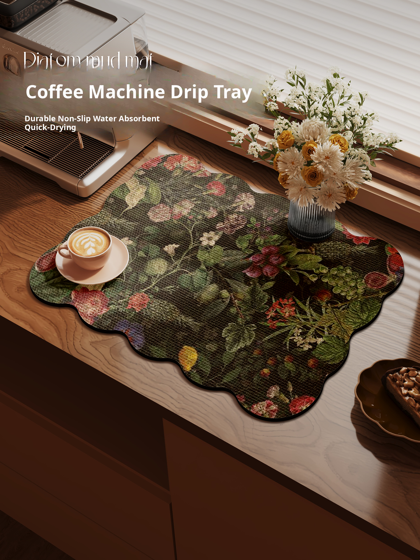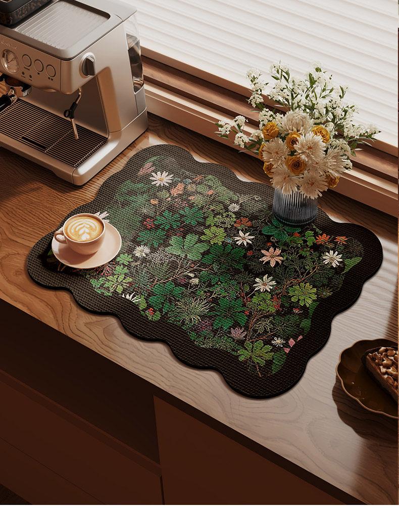 Absorbent Kitchen Counter Mat for Coffee Machines - Stylish Draining Mat for Dining Tables, Small Bar, and Tea Stations - Heat-Resistant Coaster for Effortless Cleanup and Protection