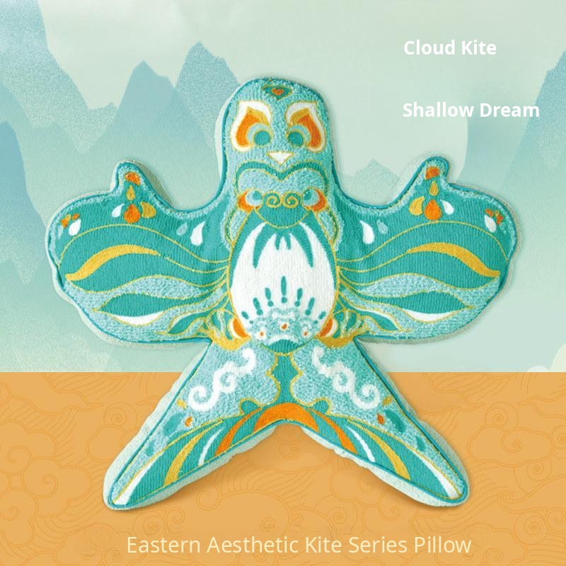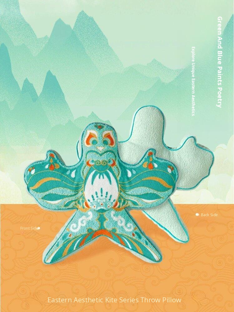 Creative Chinese-Style Kites Embroidered Throw Pillow for Living Room Sofa - Unique Designer Back Cushion with Artistic Flair