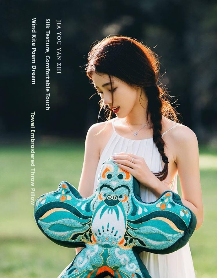 Wind Kite Poetry Dream Towel Embroidered Pillow