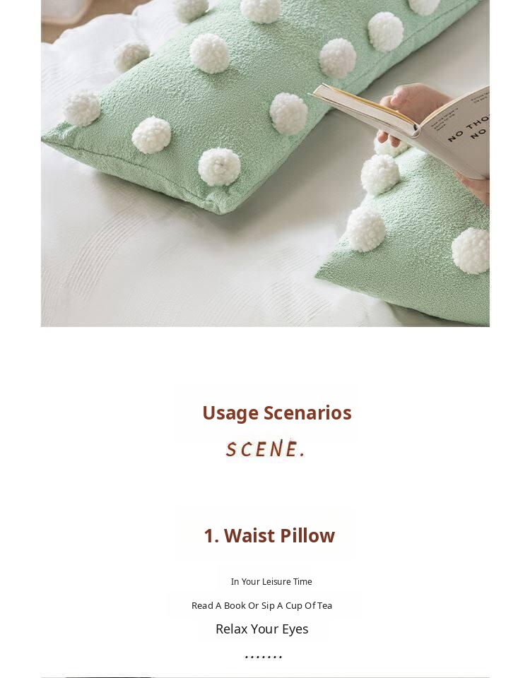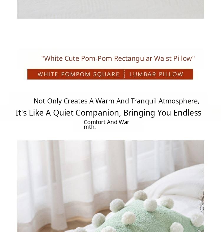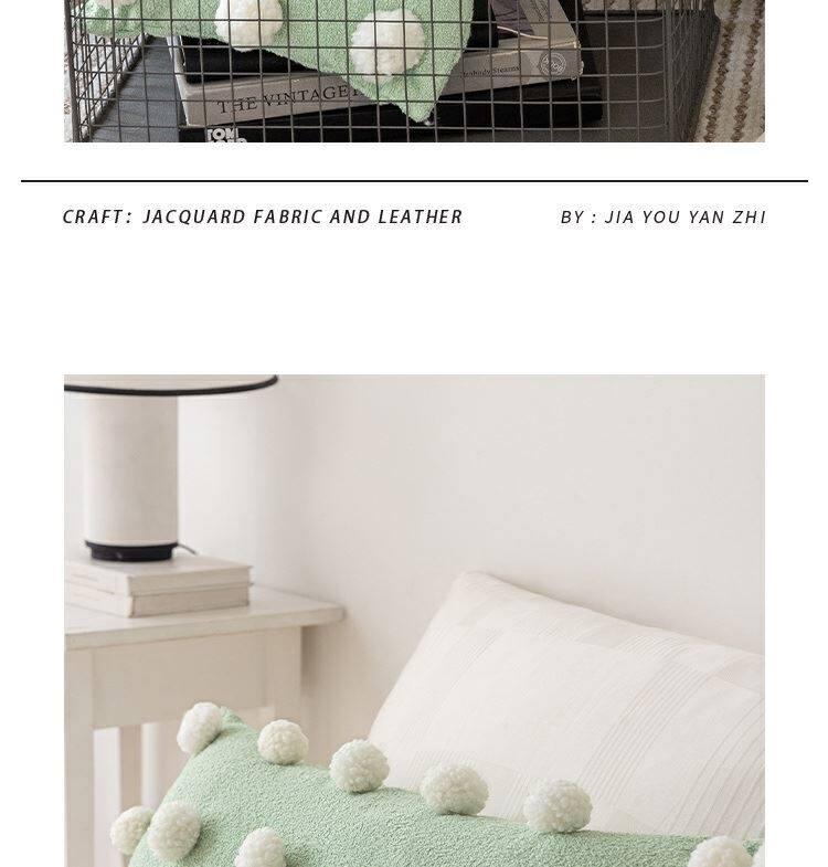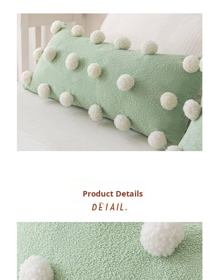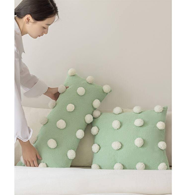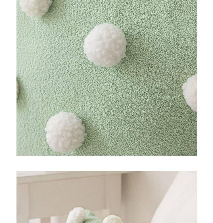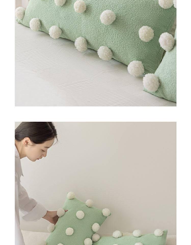 Cute Matcha Green Tea Pom Pom Long Pillow Cover for Sofa - Luxurious Accent Cushion for Living Room and Bedroom, Perfect for Back Support and Cozy Decor