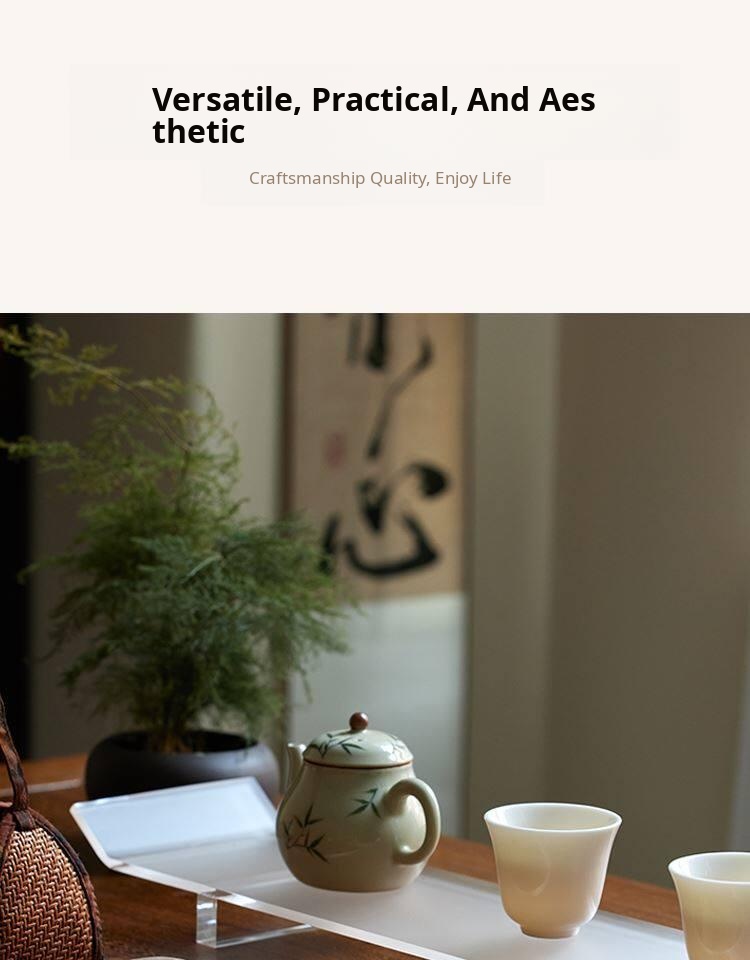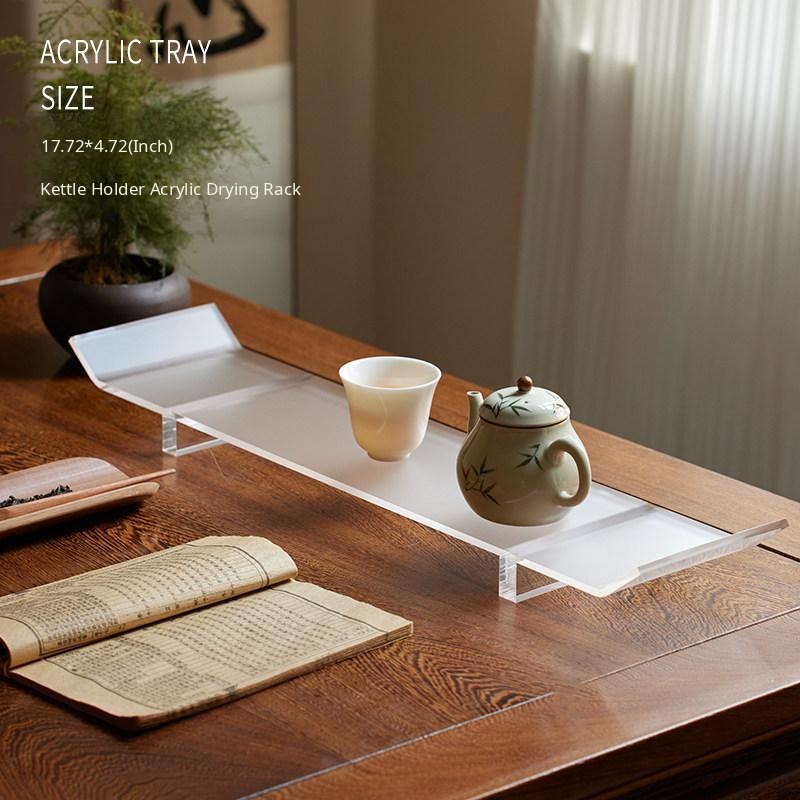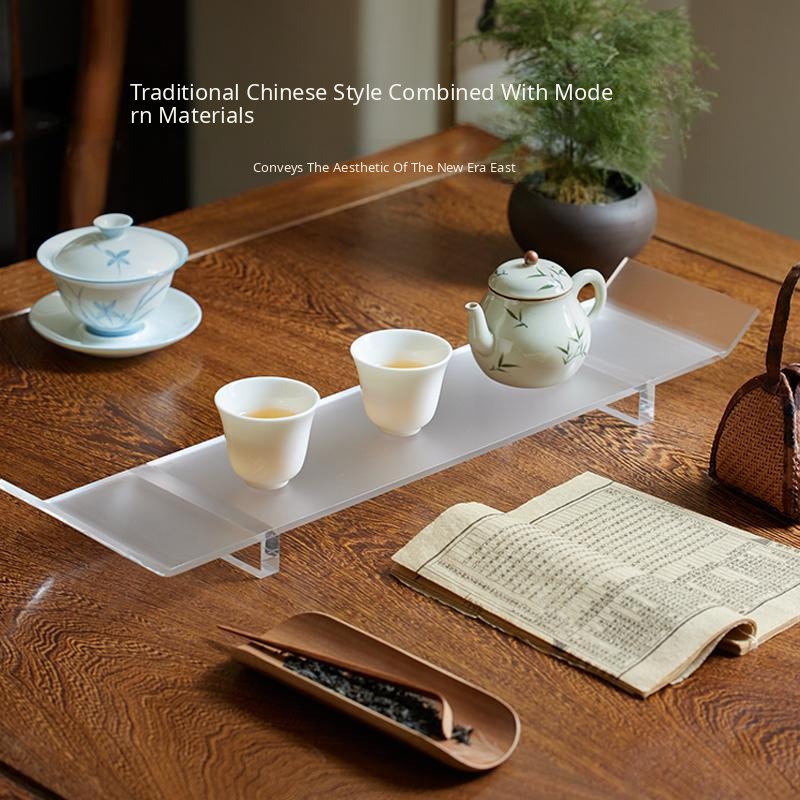 Elegant New Chinese Style Acrylic Drying Tea Set with Teapot, Teacups, Tea Tray, and Storage Rack - Perfect for Tea Ceremony and Home Decor