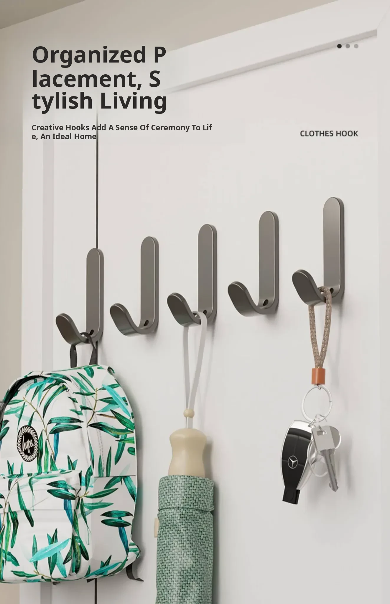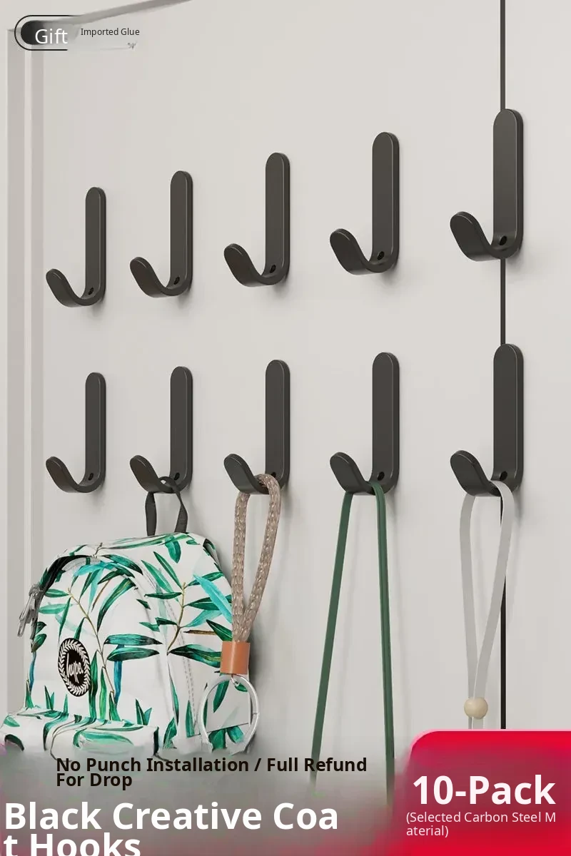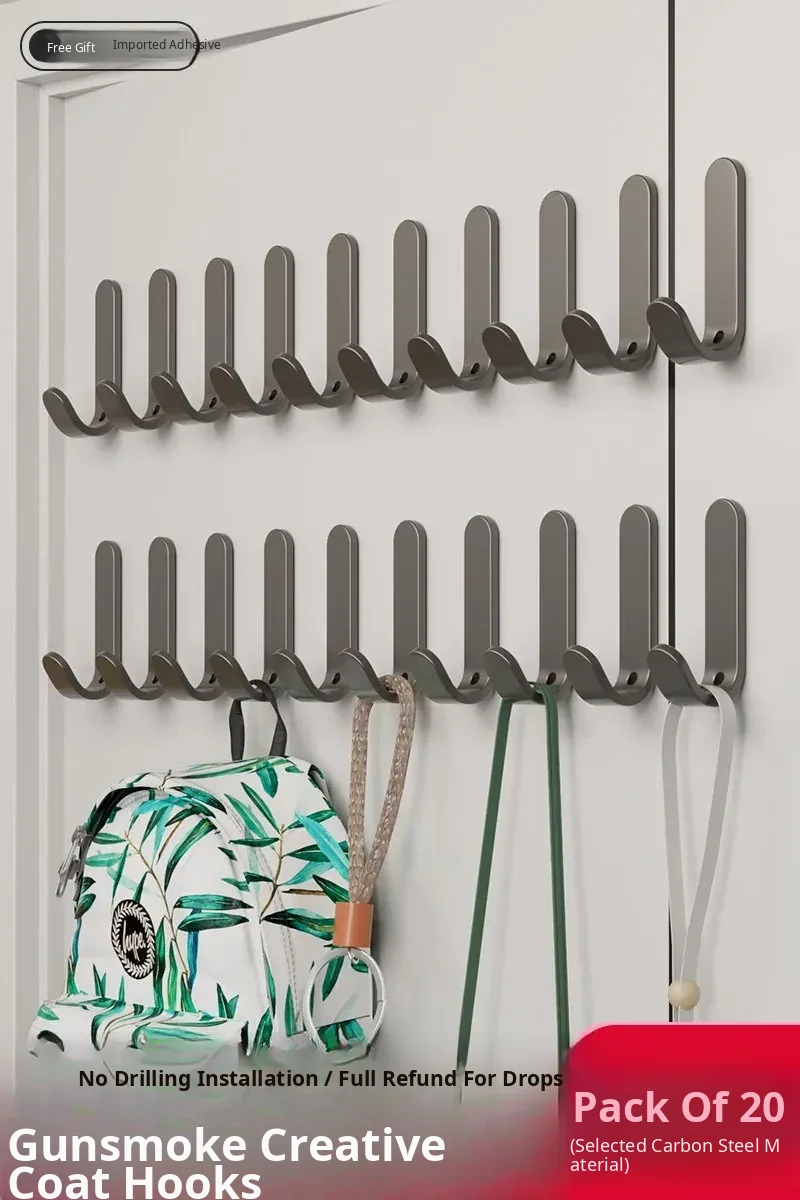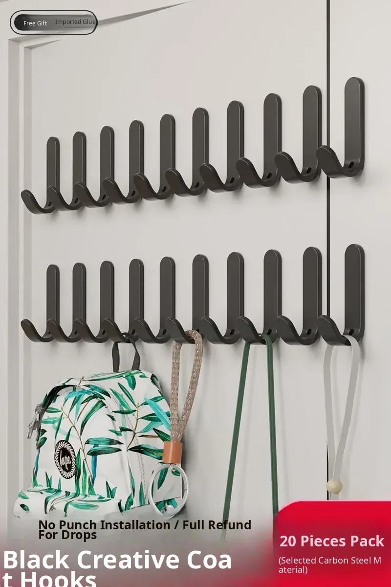 Heavy-Duty No-Drill Adhesive Hooks for Wall & Door - Strong Coat and Hat Rack for Easy Storage and Organization - Perfect for Hanging Clothes, Bags, and Accessories