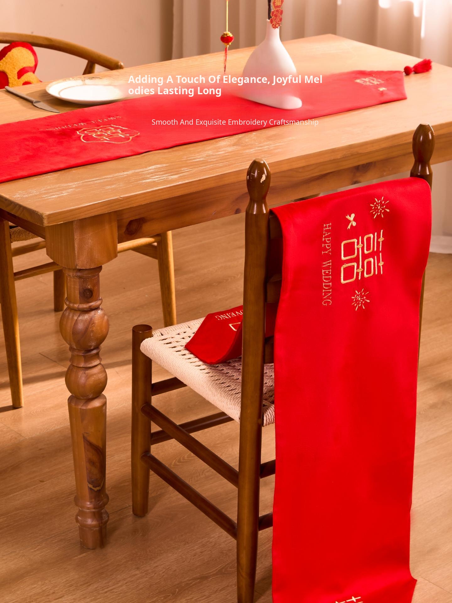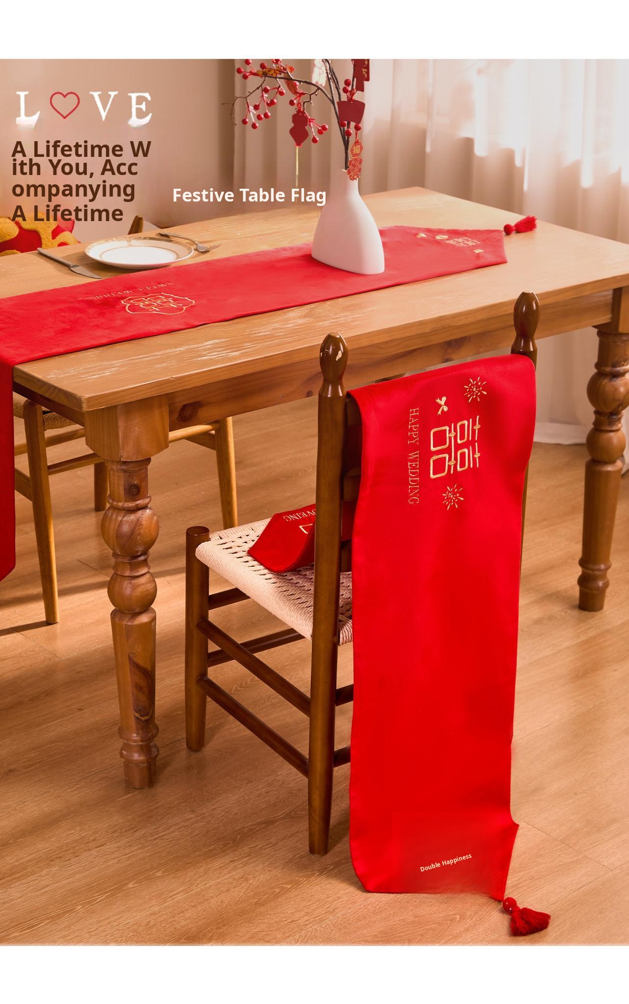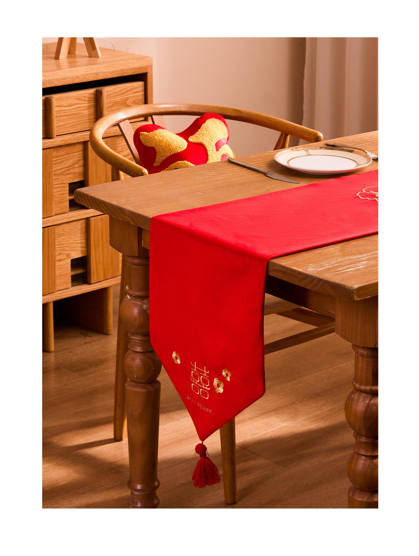 Luxurious Red Celebration Table Runner - Elegant New Chinese Style Embroidered Tablecloth for Weddings, Perfect for Tea Tables, Oil-Resistant and Atmosphere Enhancing