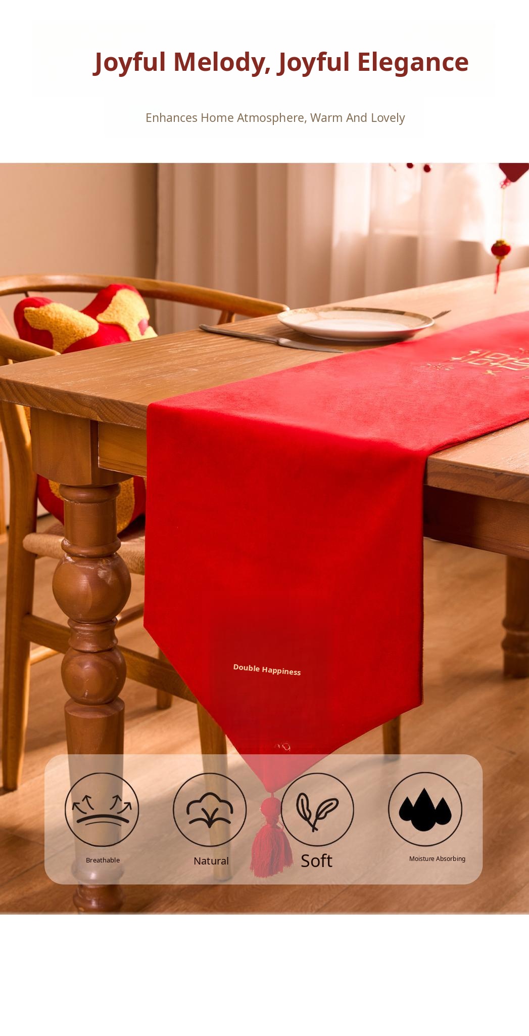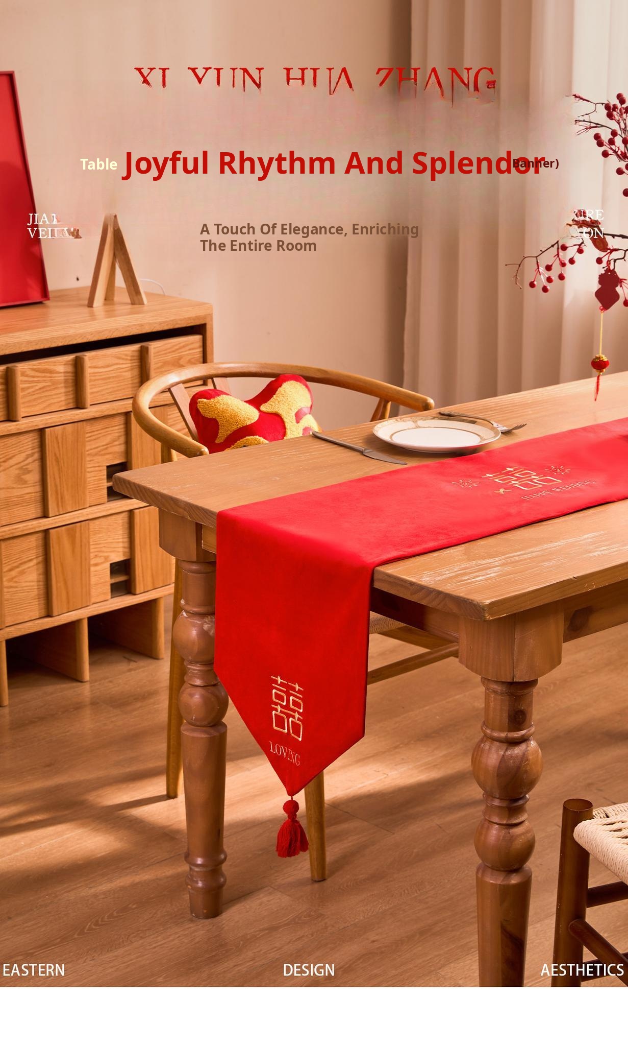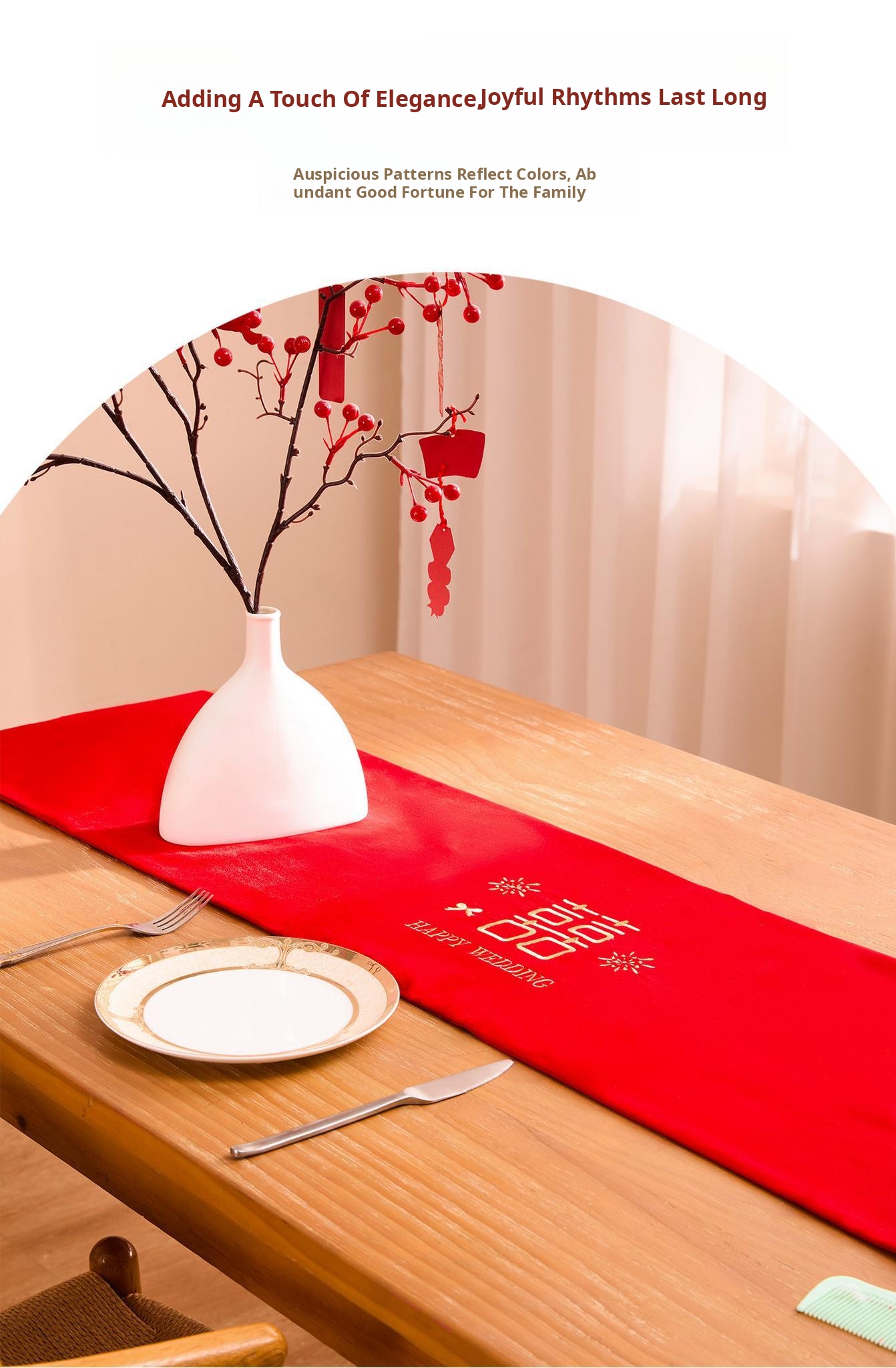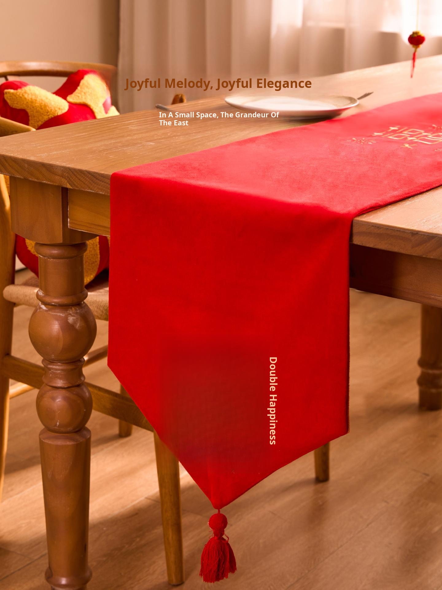 Luxurious Red Celebration Table Runner - Elegant New Chinese Style Embroidered Tablecloth for Weddings, Perfect for Tea Tables, Oil-Resistant and Atmosphere Enhancing