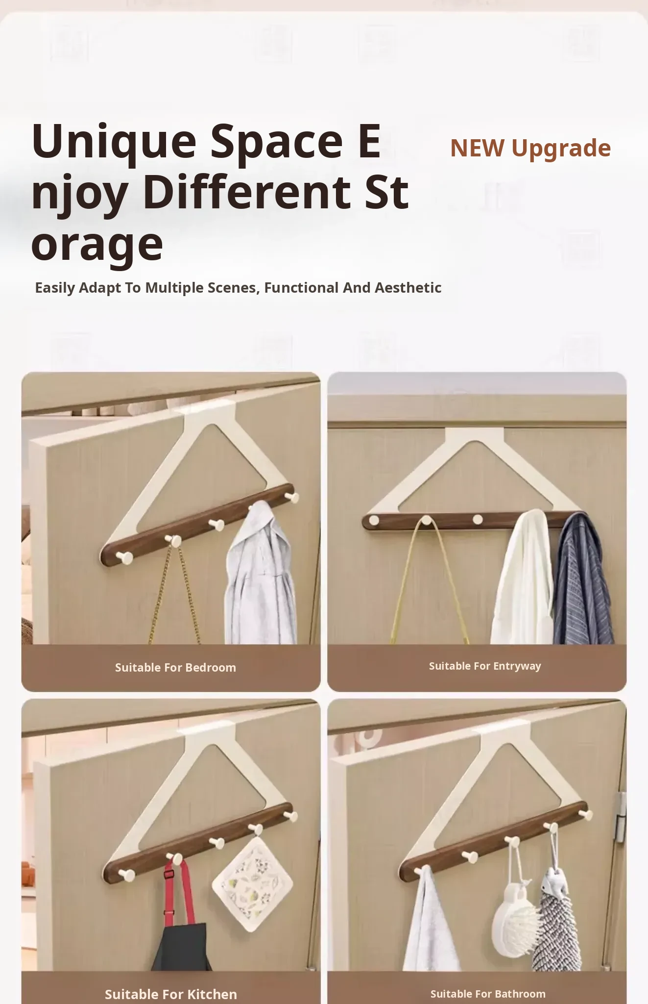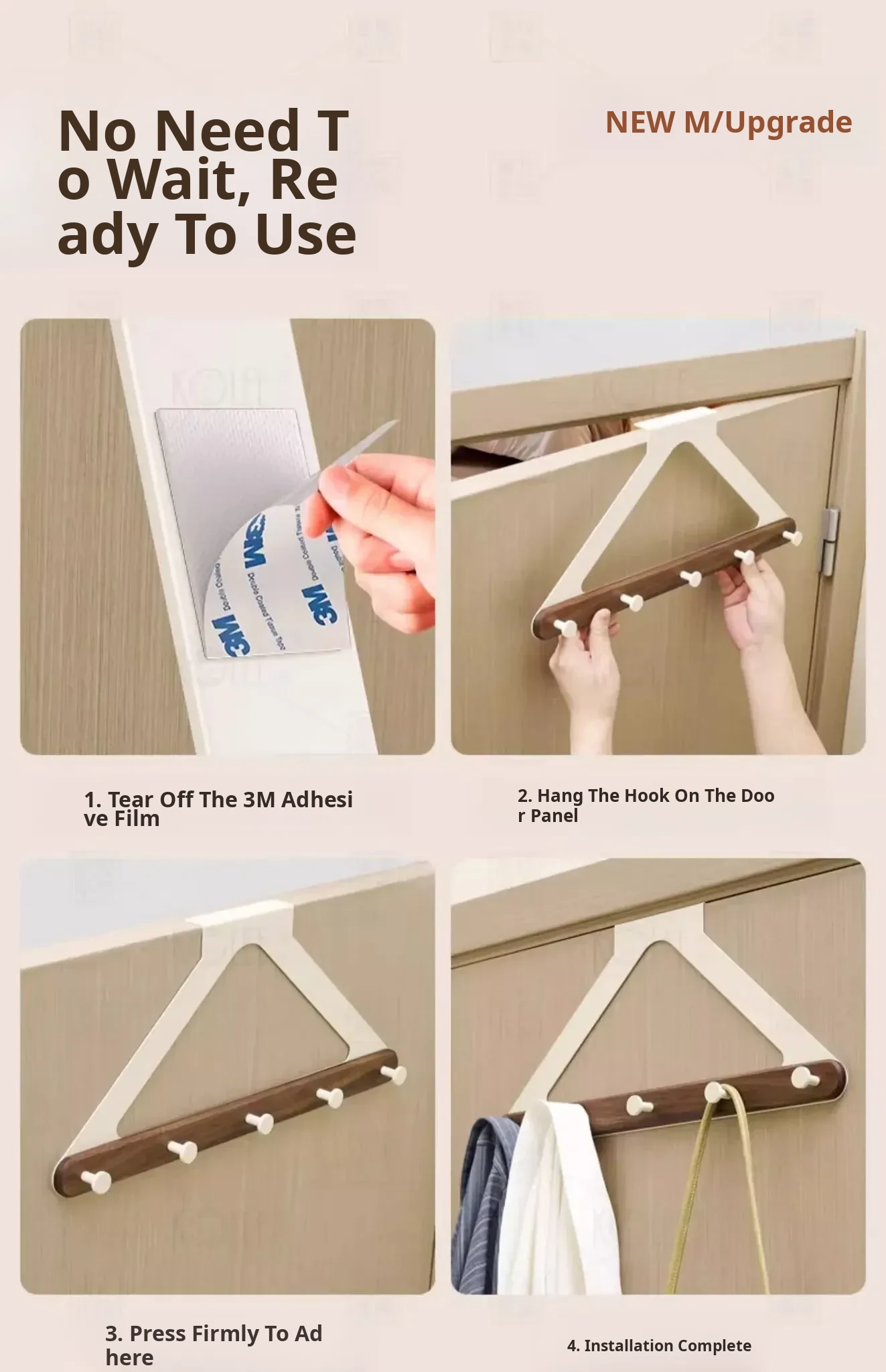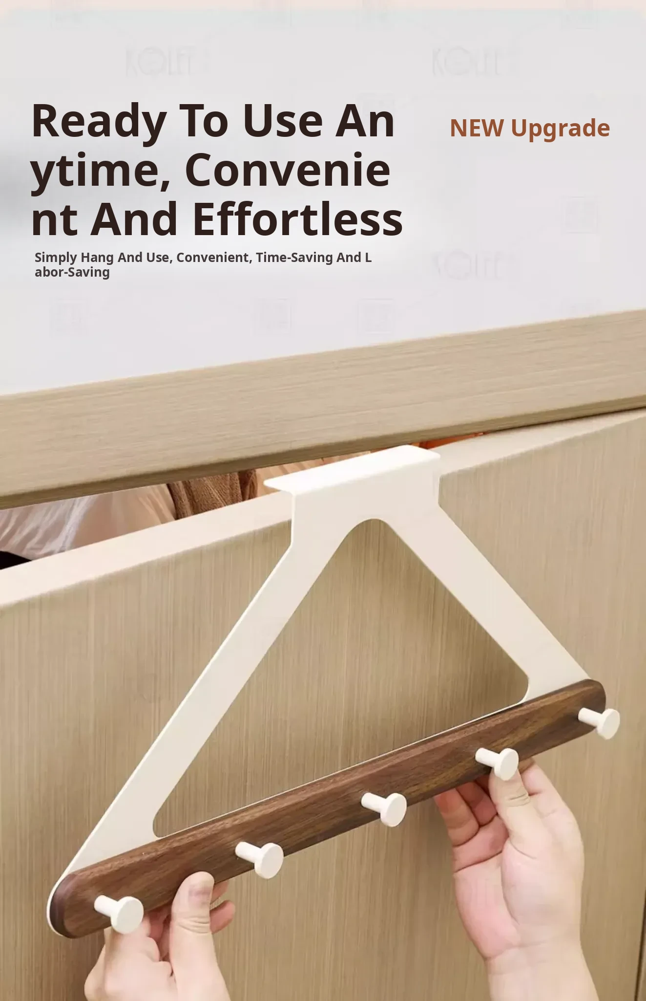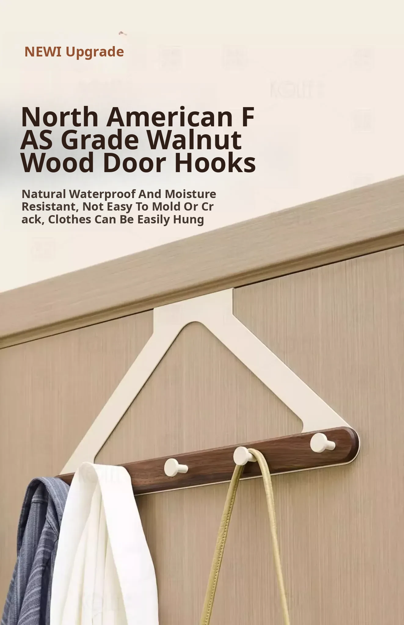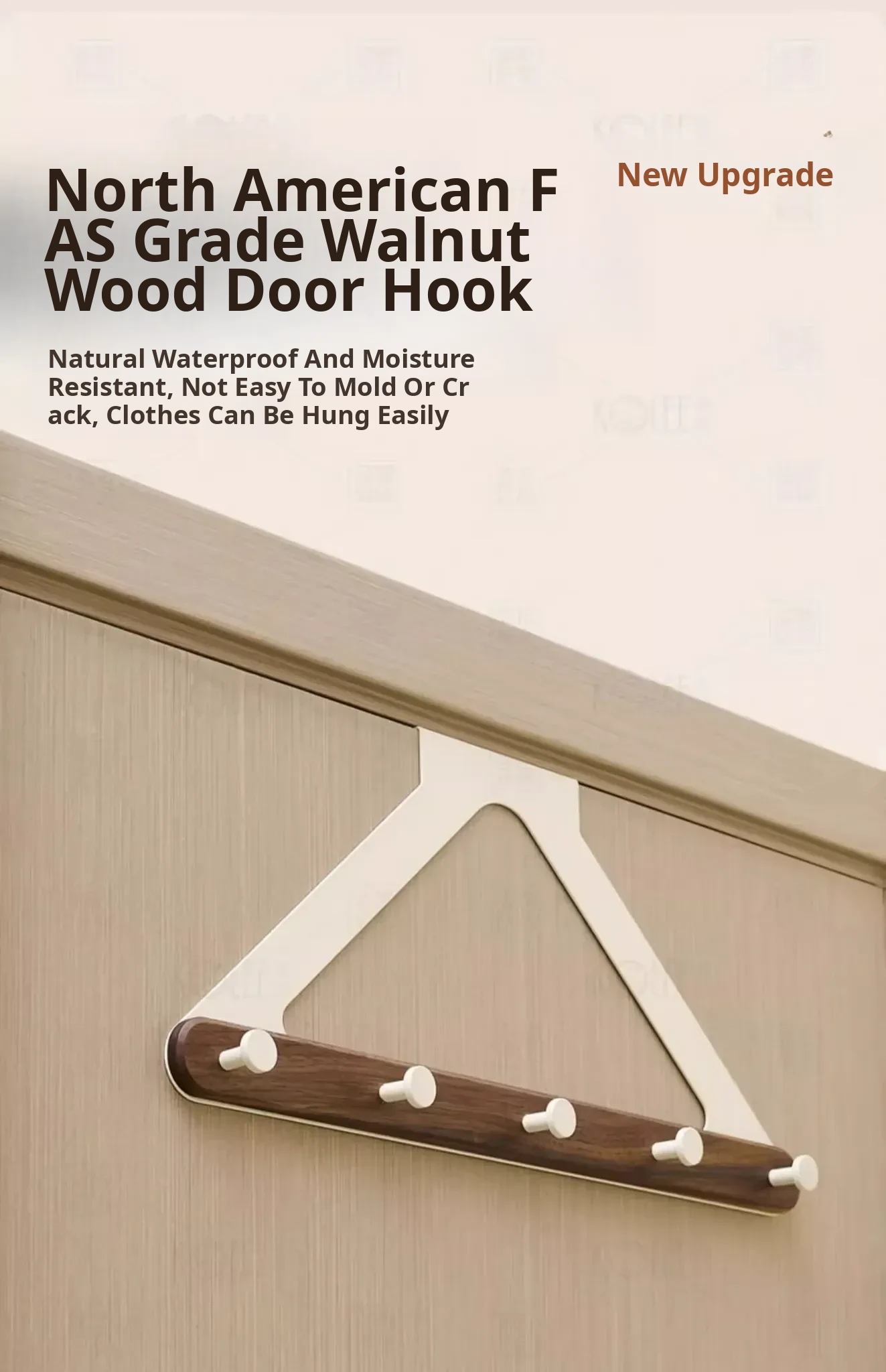 Milard Walnut Wood Wall-Mounted Coat Rack with Hooks – No-Drill, Seamless Design for Door Back – Perfect for Organizing Coats, Hats, and Accessories