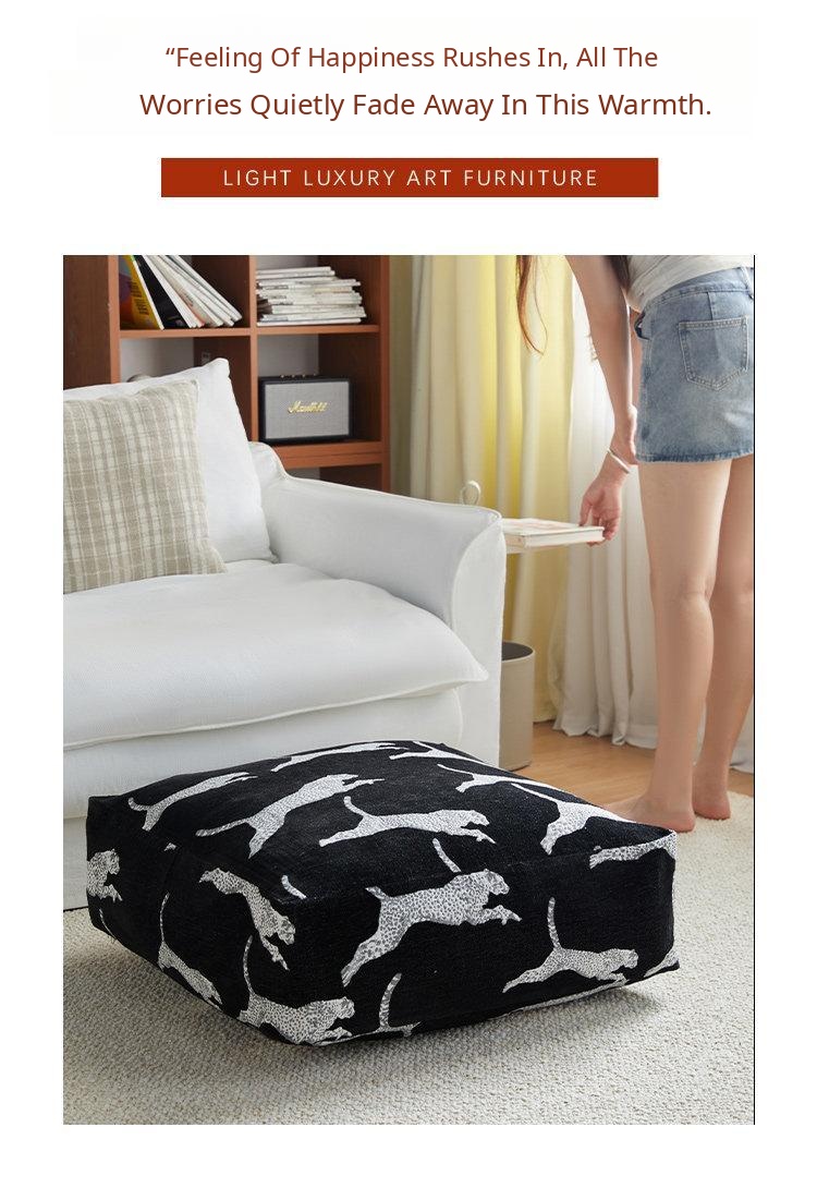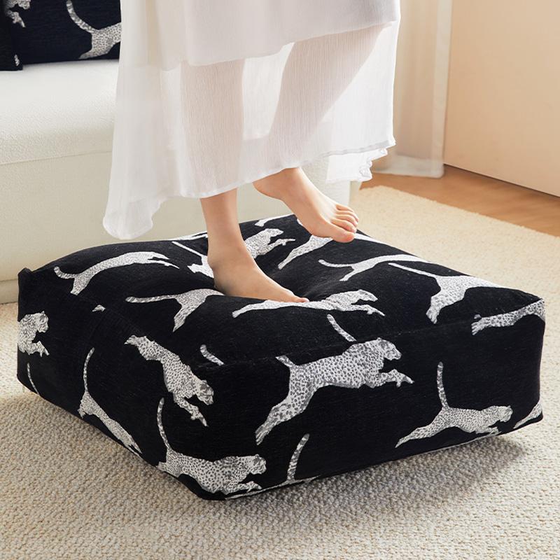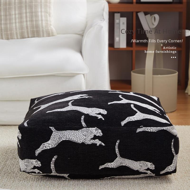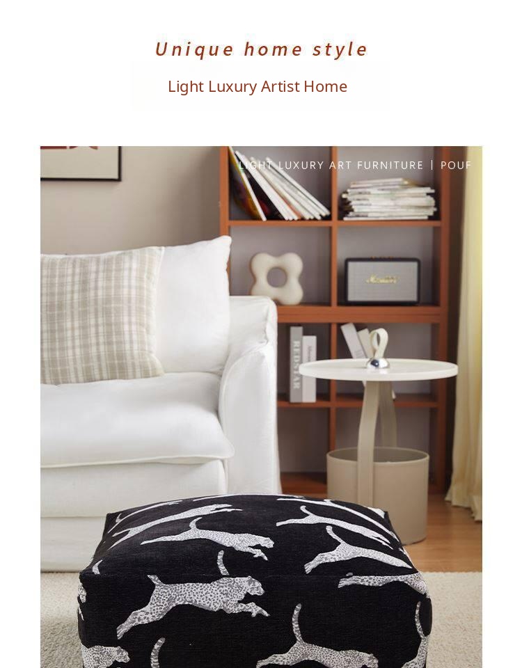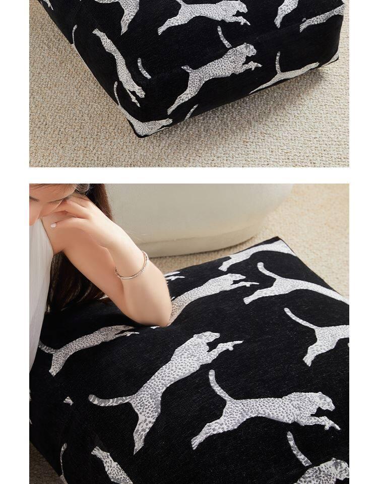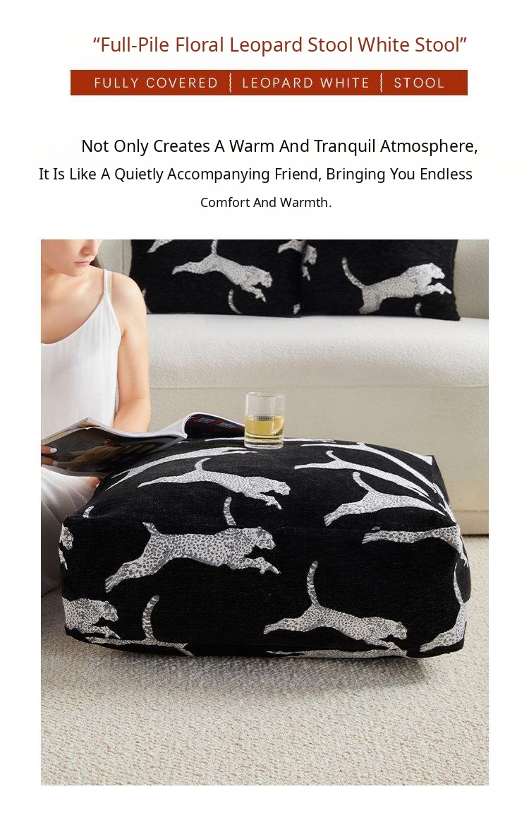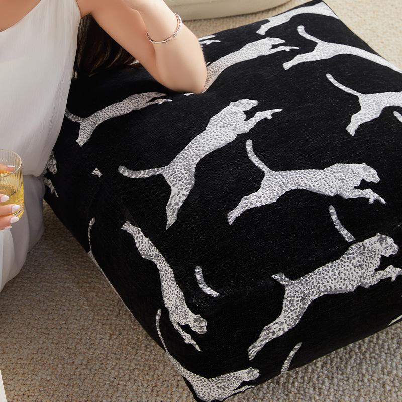 Full Leopard Print Black Pouf