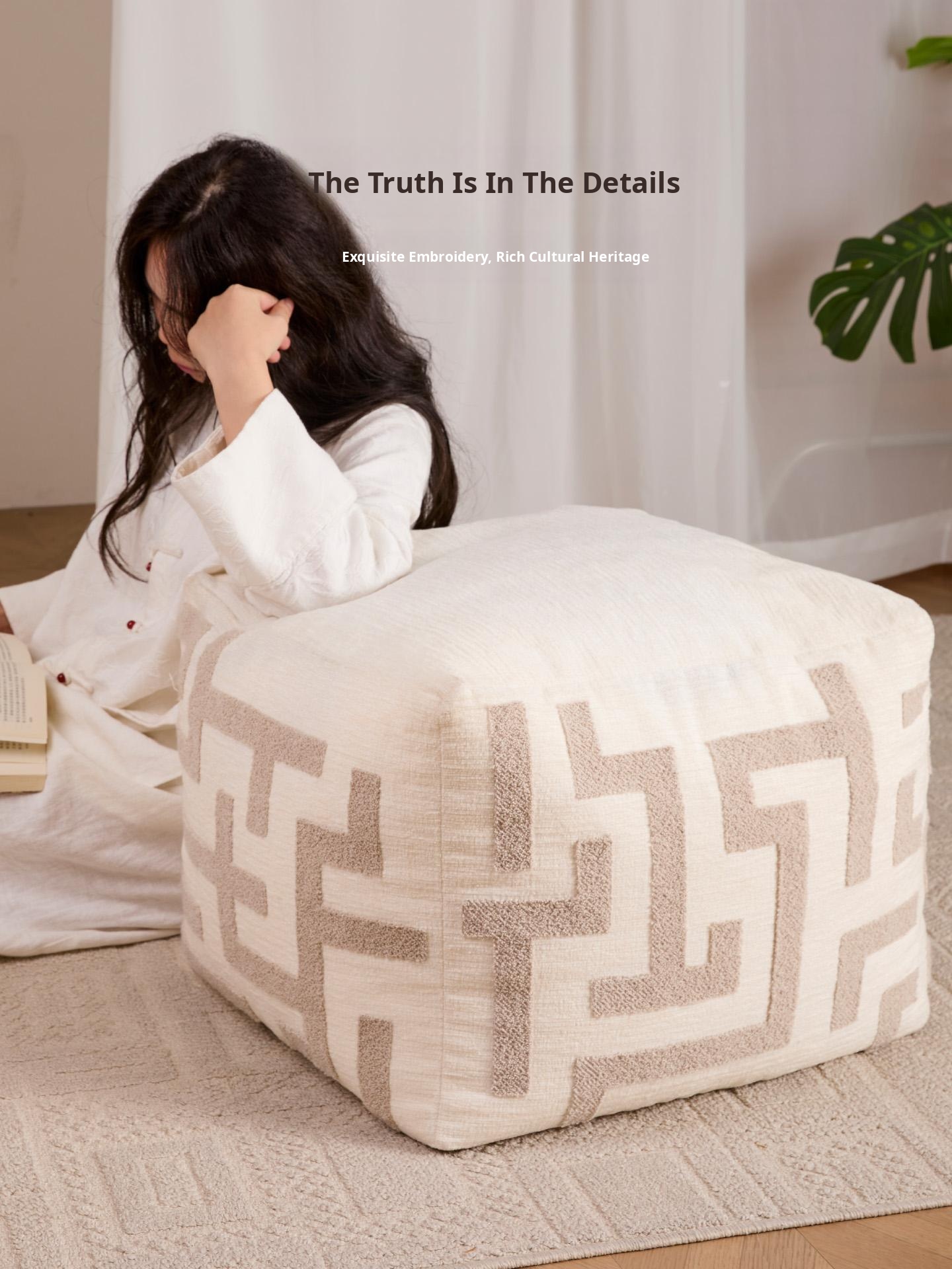 Modern Chinese Style Floor Cushion - Versatile Ottoman for Living Room and Bedroom, Perfect for Footrest, Bay Window Seating, and Lazy Sofa for a Cozy Home Experience.
