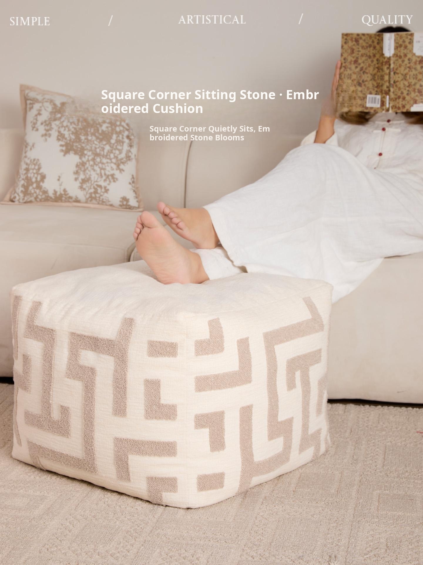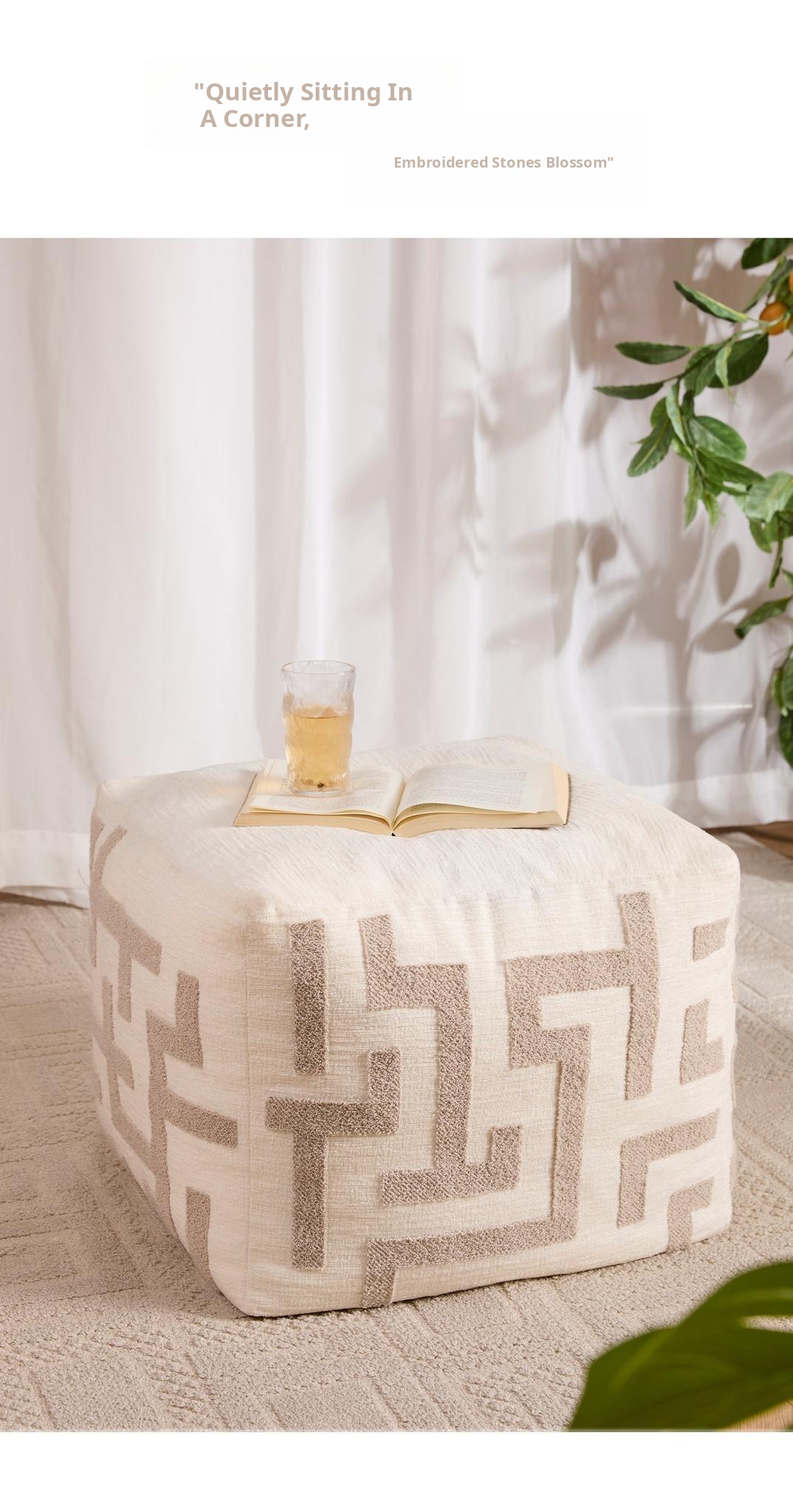 Fangyu Sitting Stone Embroidered Pouf (15.75in*19.69in)