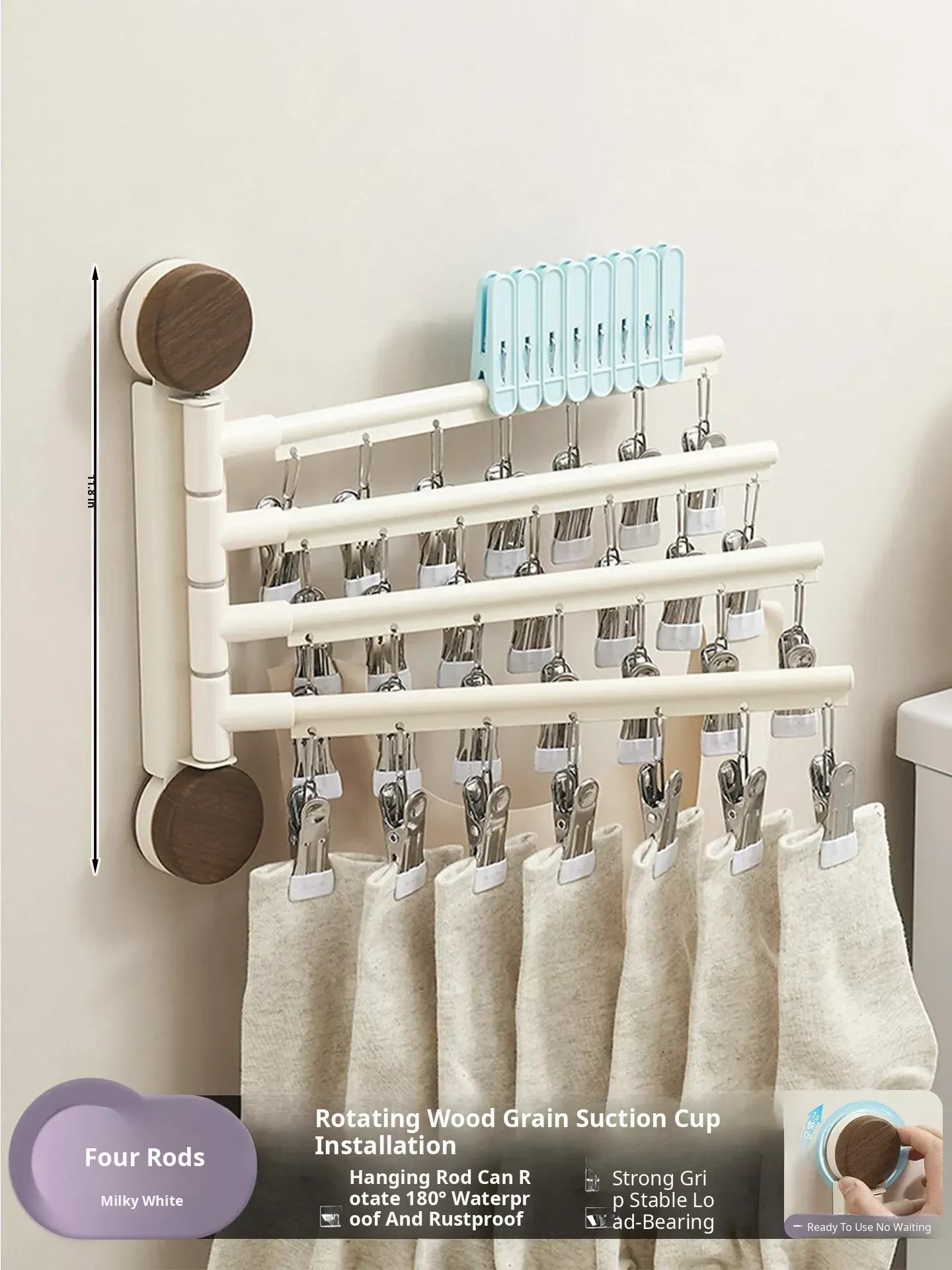 Black Walnut Milk White - Four Rods [Hanging Rod Rotates 180°]°】