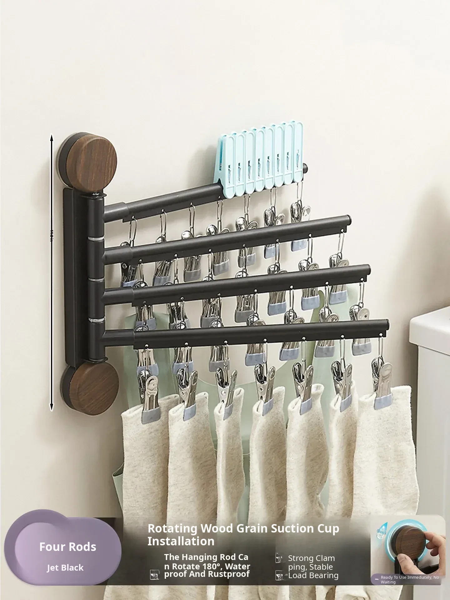 Black Walnut Color - Four Poles [Hanging Rod Can Be Rotated 180°】