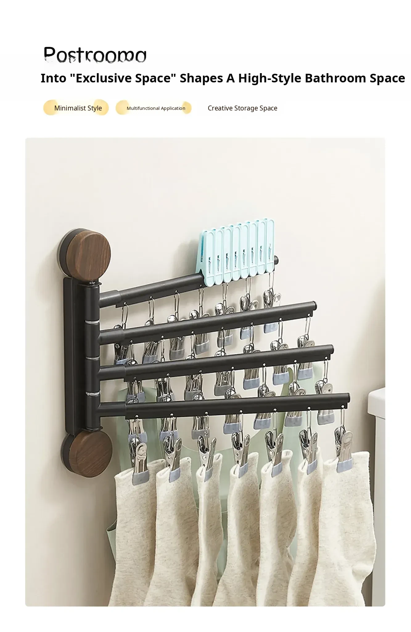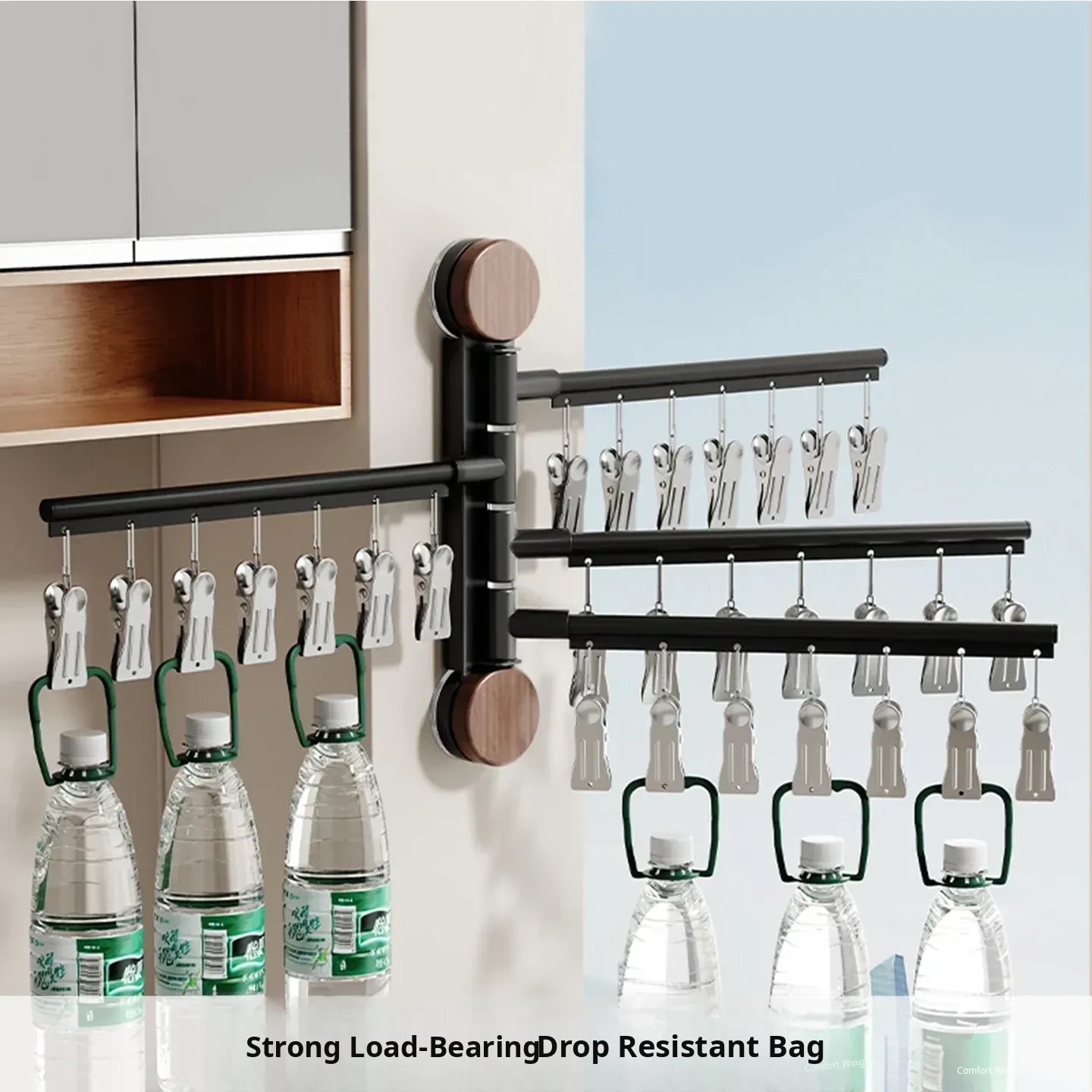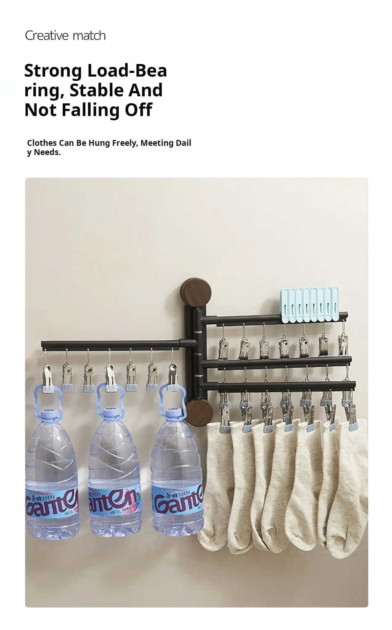 Black Walnut Color-Three Poles [Hanging Pole Can Be Rotated 180°】