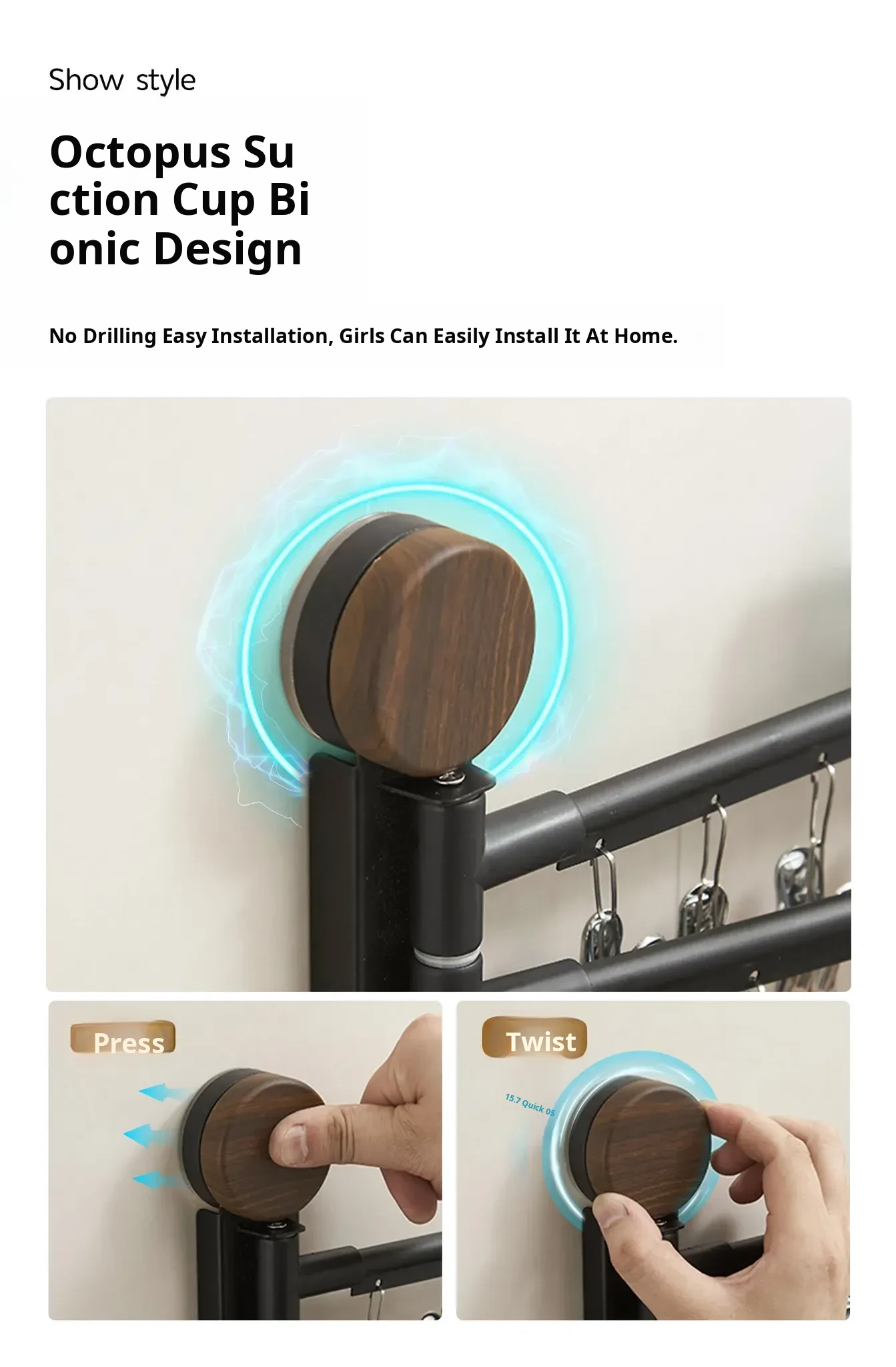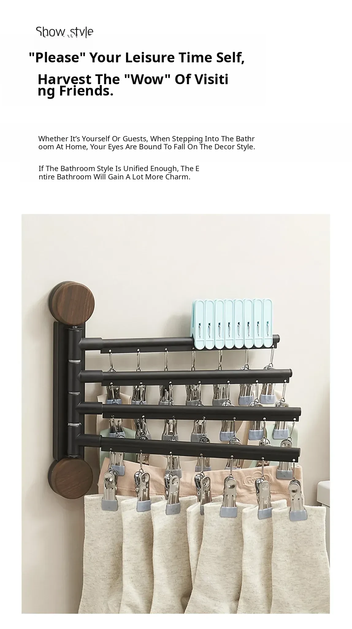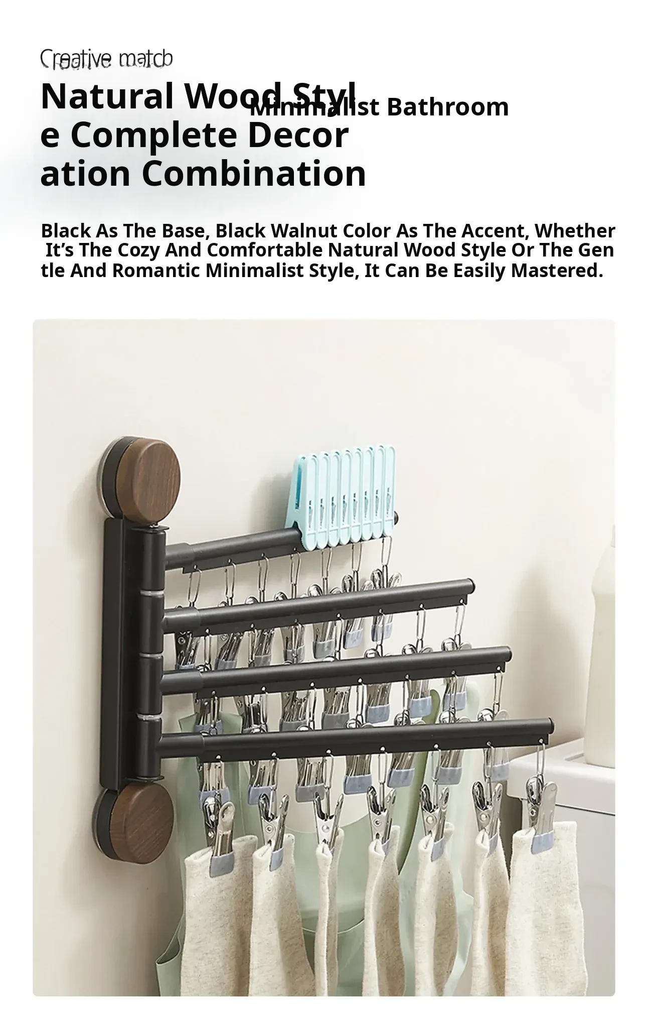 Black Walnut Milk White - Three Rods [Hanging Rod Rotates 180°]°】