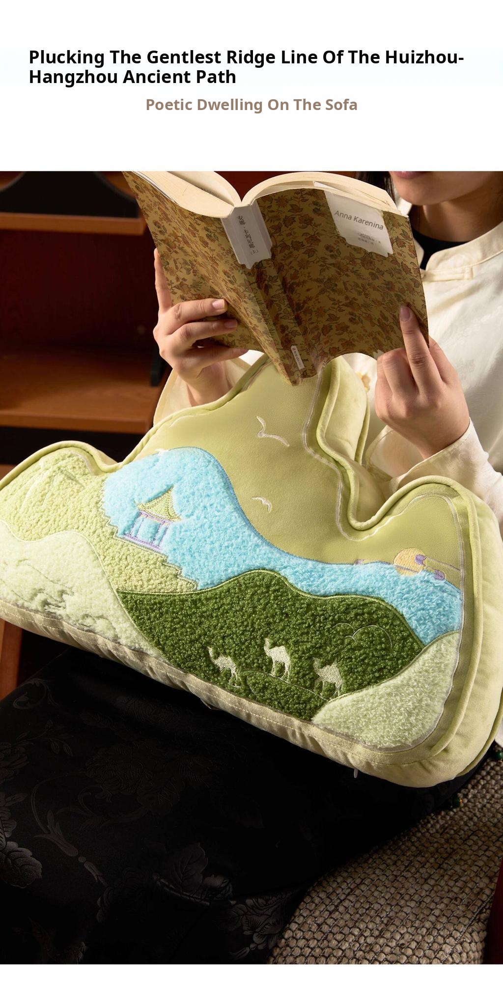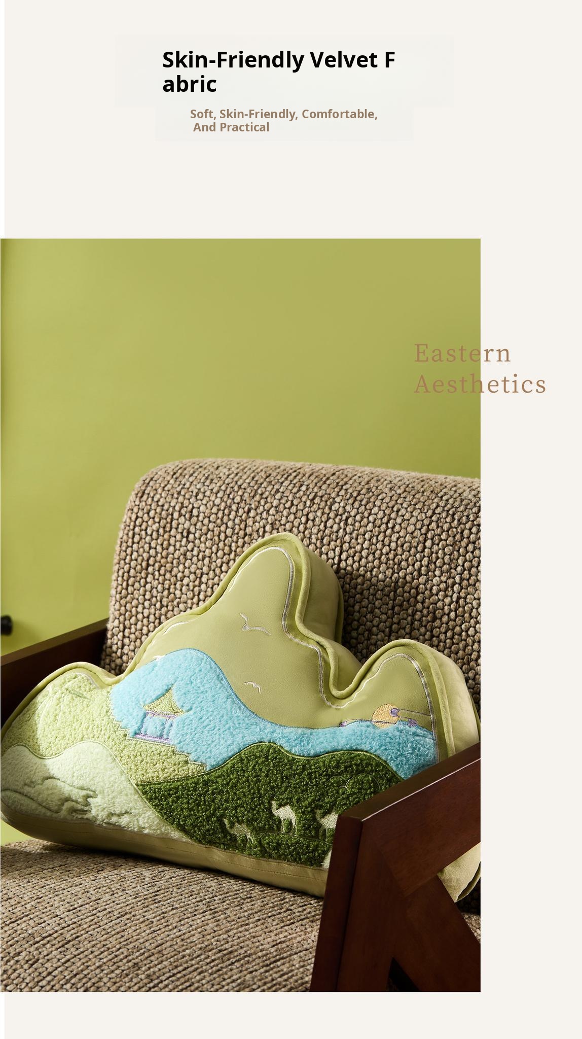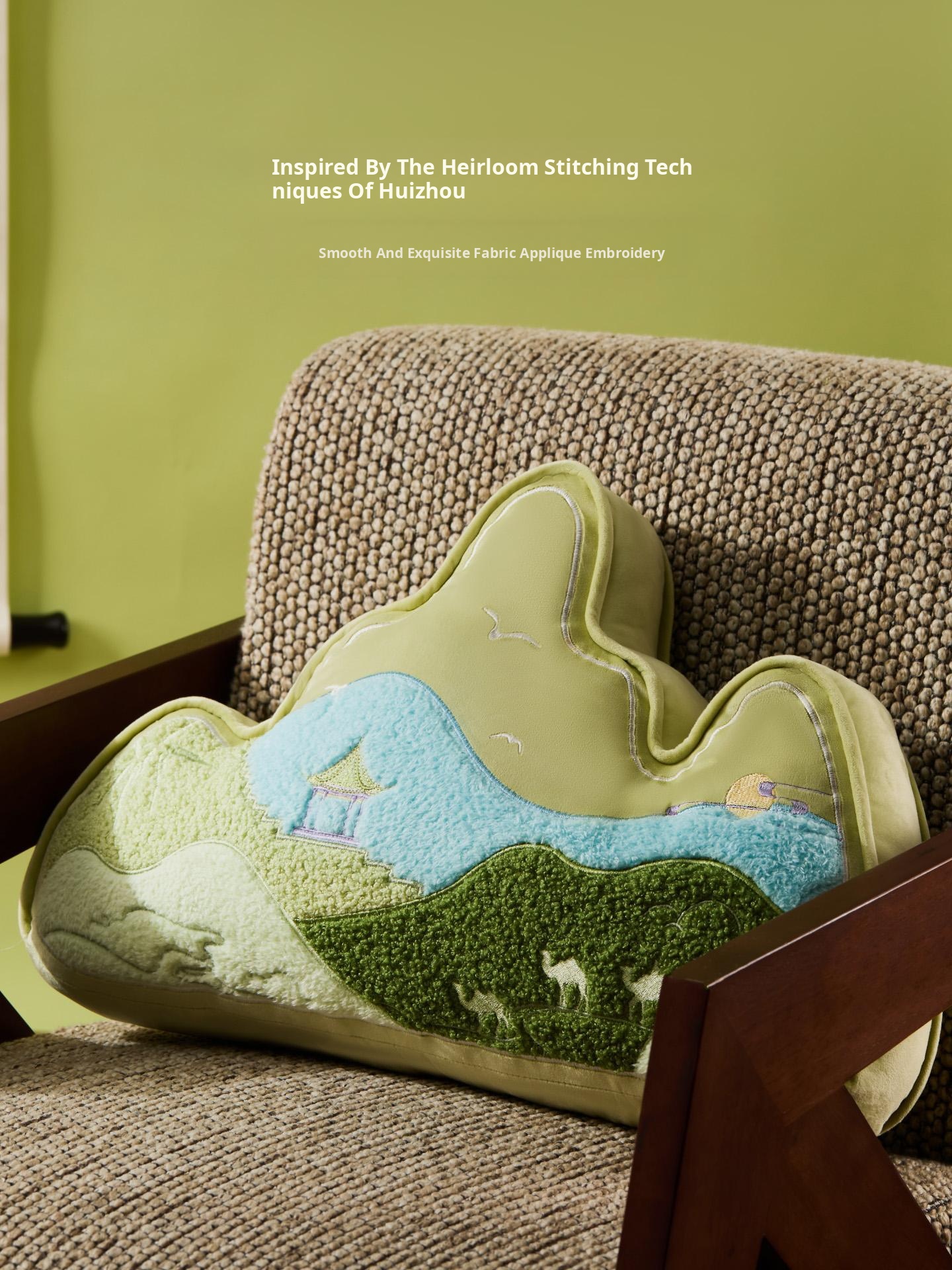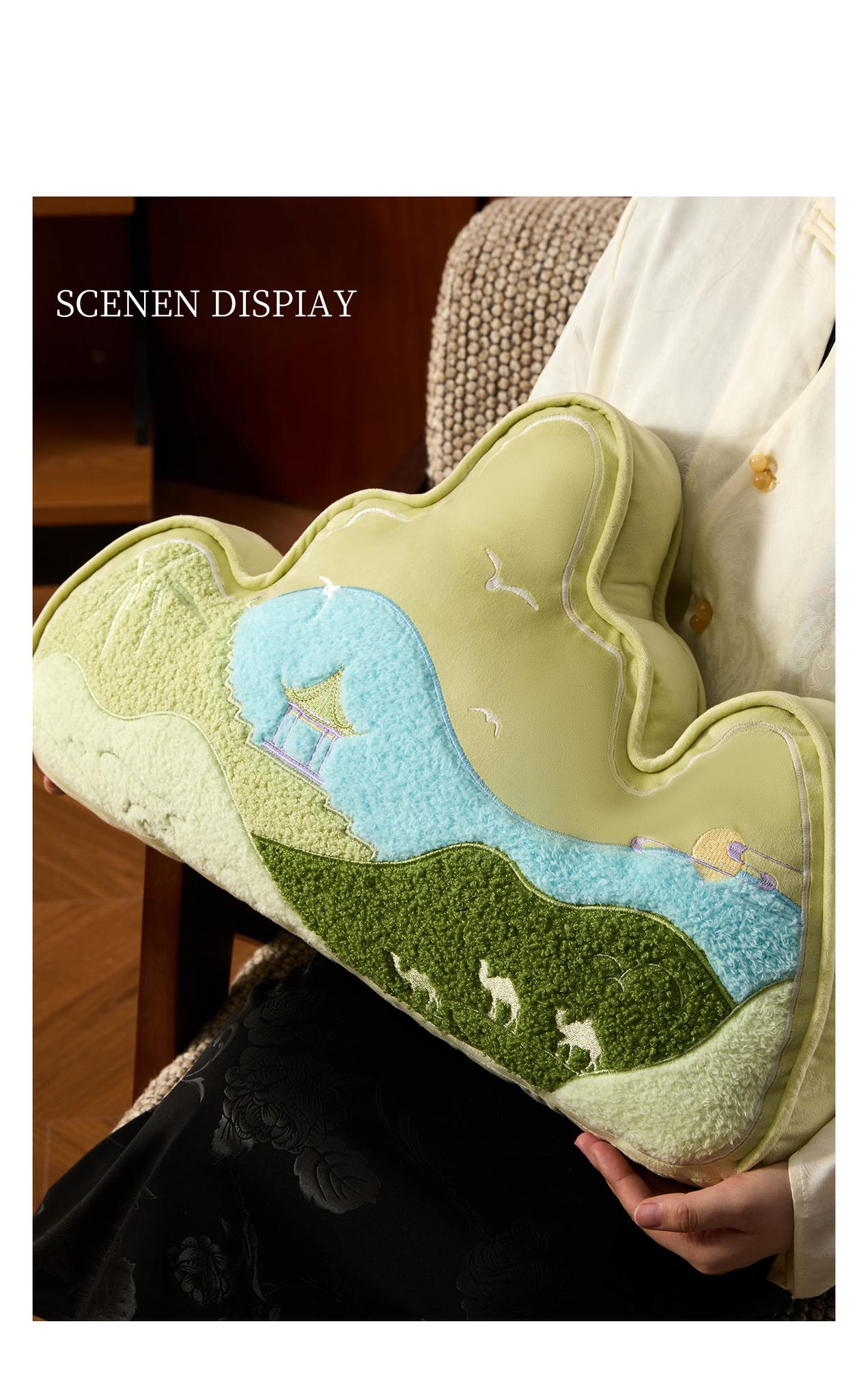 New Chinese Style Embroidered Mountain-Shaped Backrest Pillow - Perfect for Office Chairs and Home Decor, Provides Comfort and Support for Your Back with Elegant Design