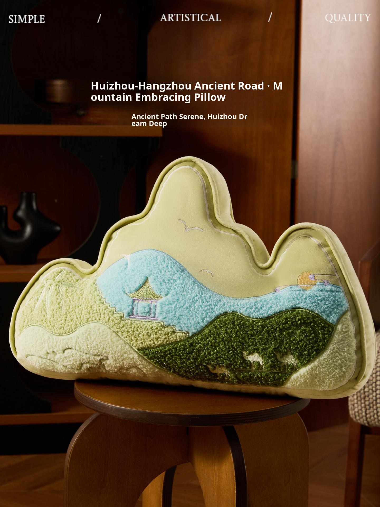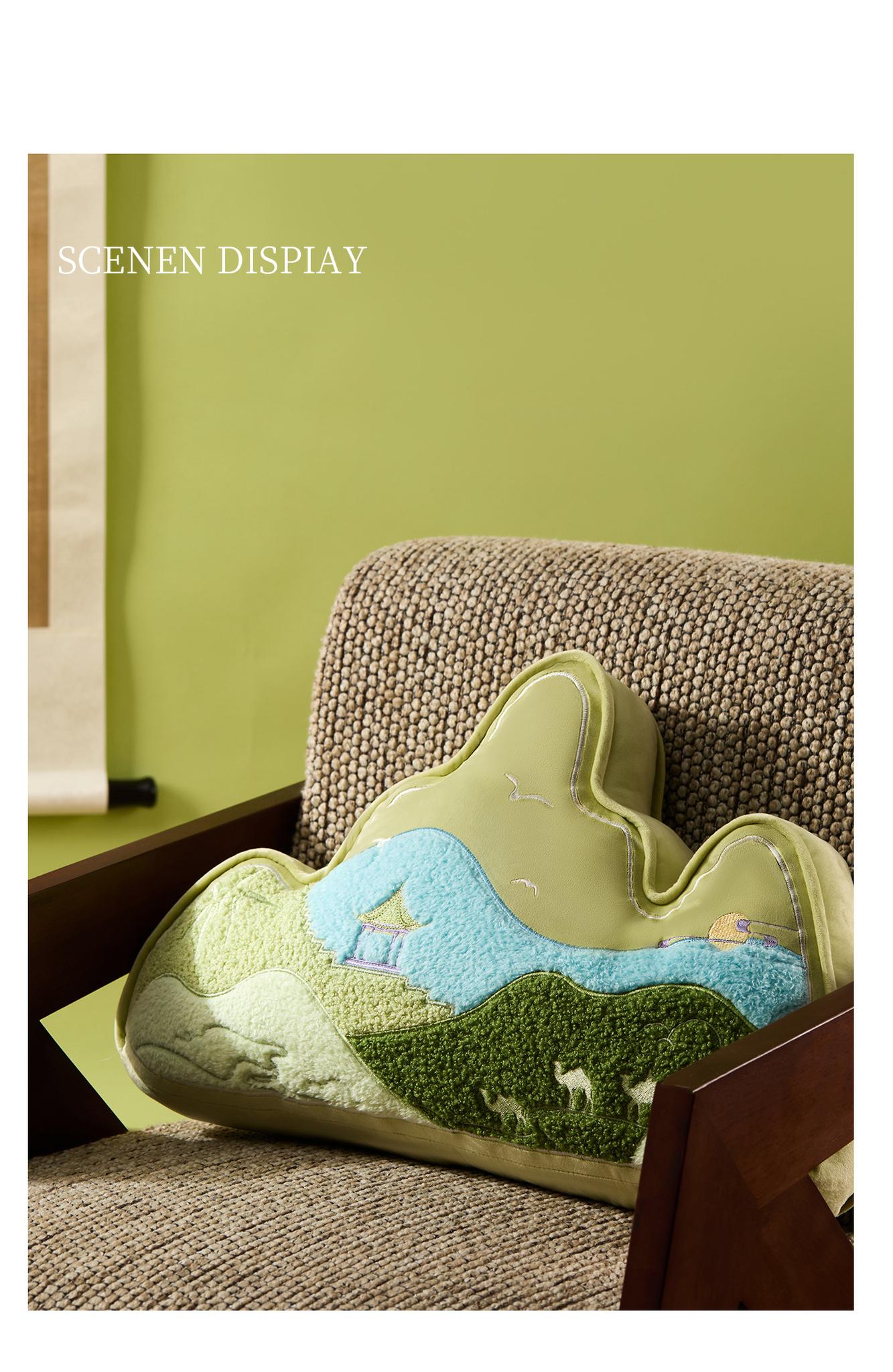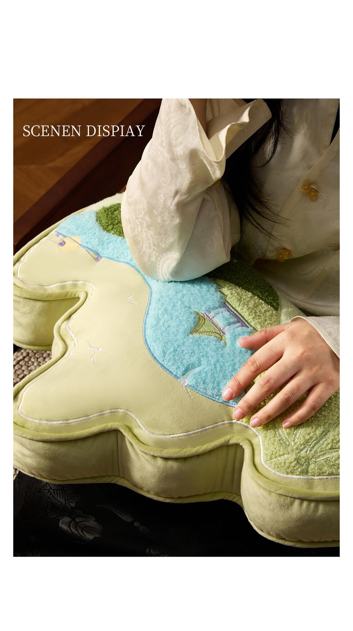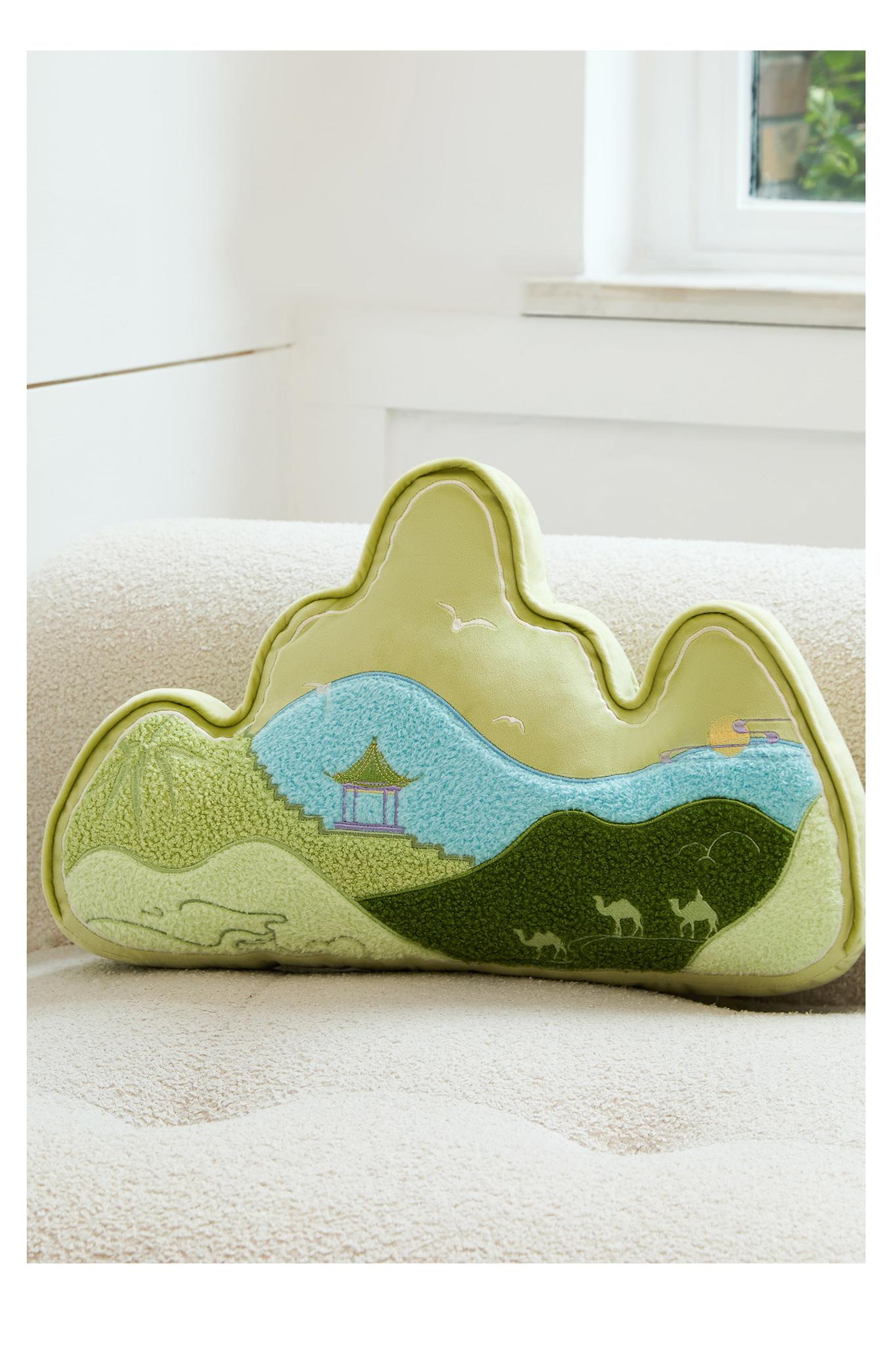New Chinese Style Embroidered Mountain-Shaped Backrest Pillow - Perfect for Office Chairs and Home Decor, Provides Comfort and Support for Your Back with Elegant Design