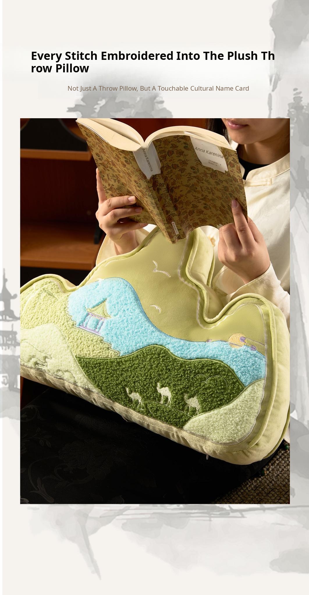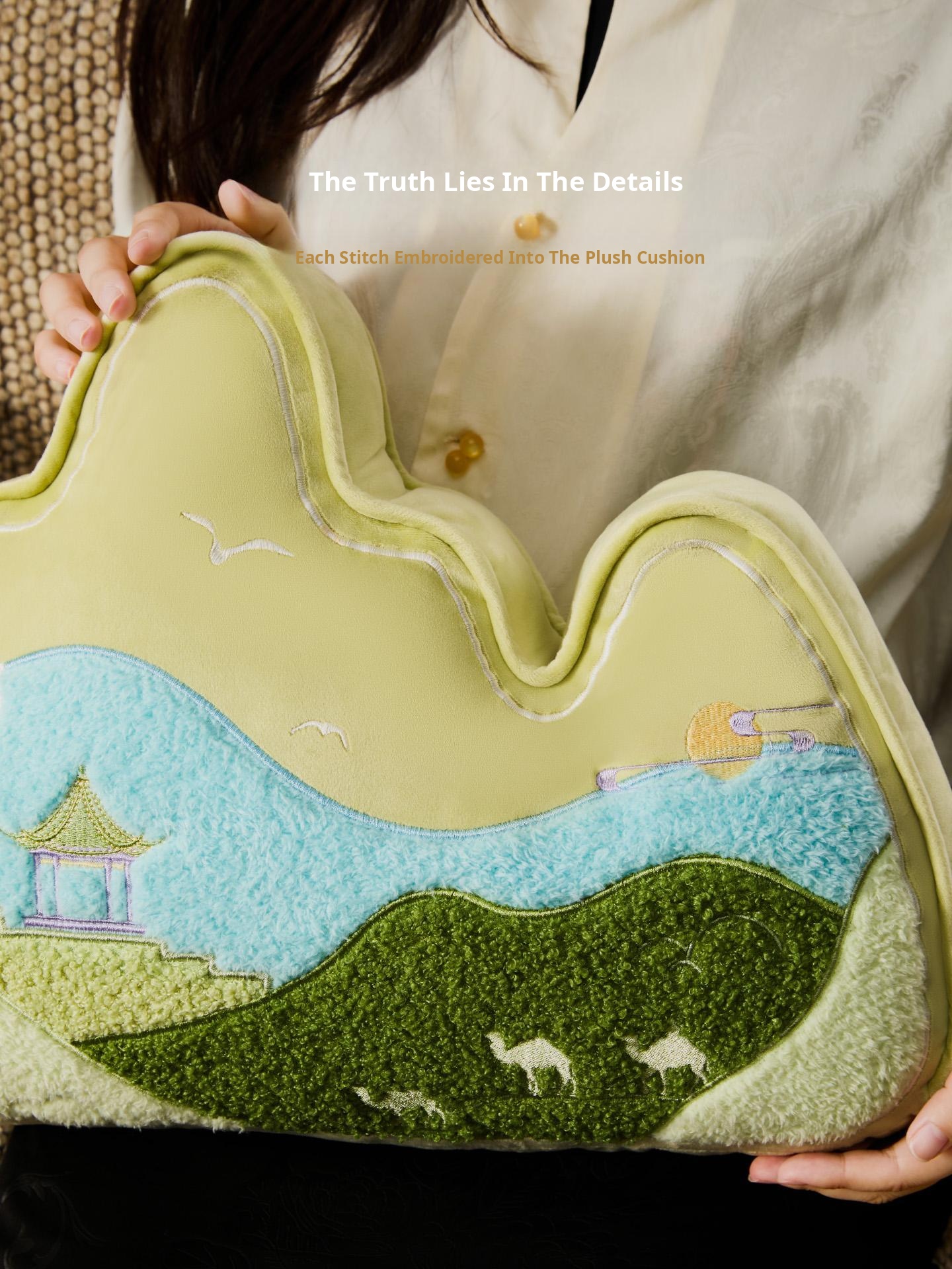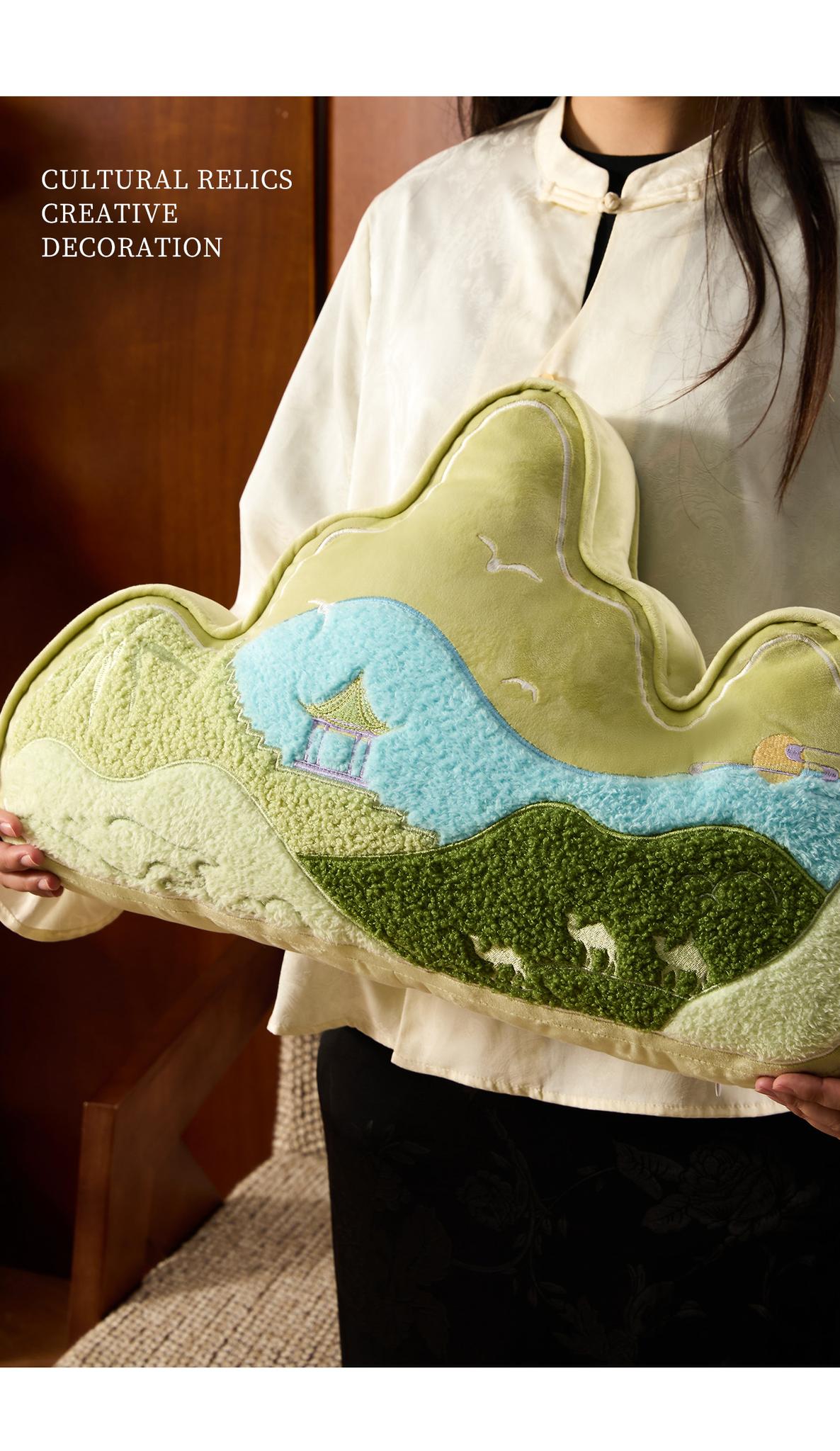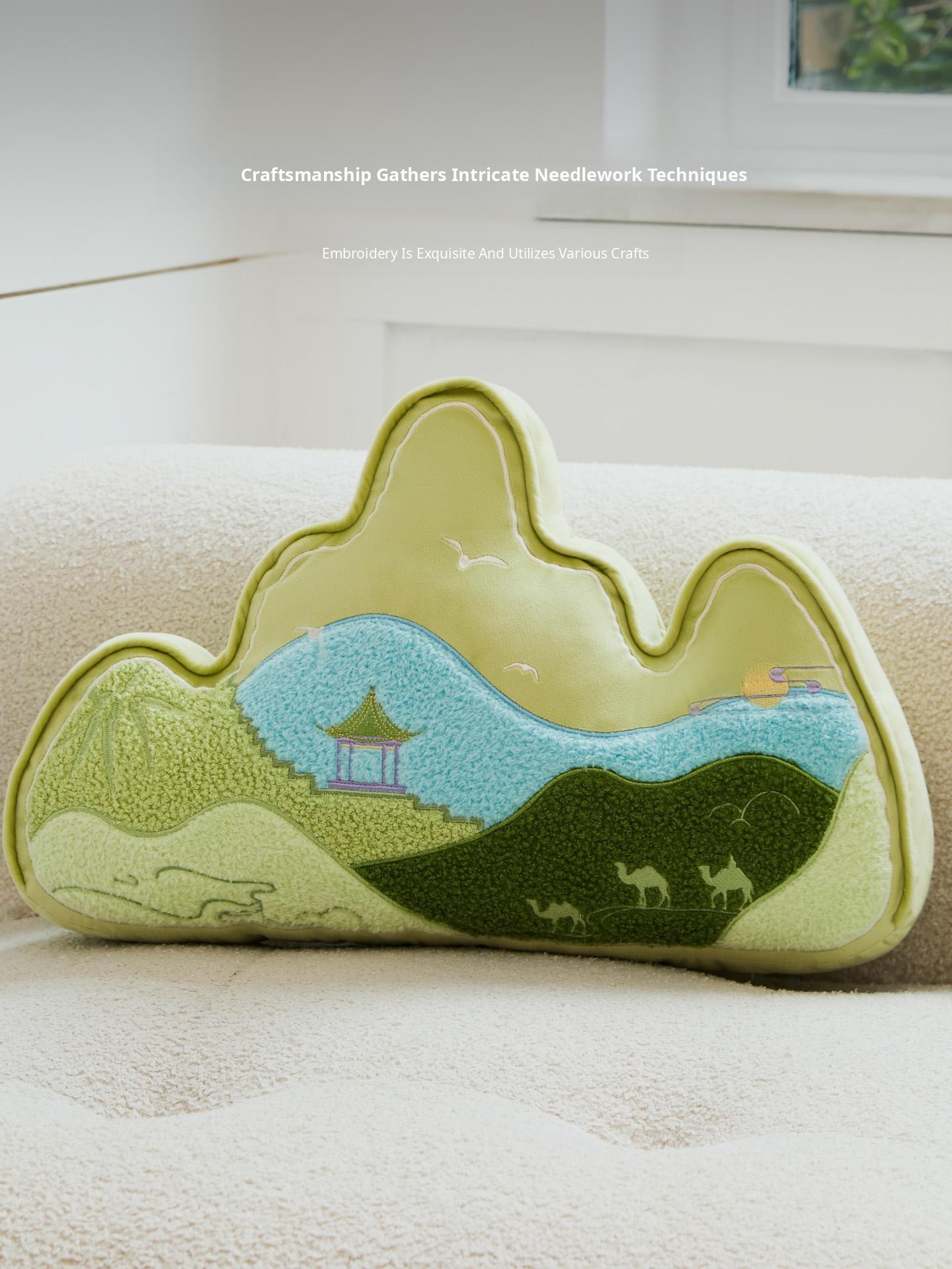 New Chinese Style Embroidered Mountain-Shaped Backrest Pillow - Perfect for Office Chairs and Home Decor, Provides Comfort and Support for Your Back with Elegant Design