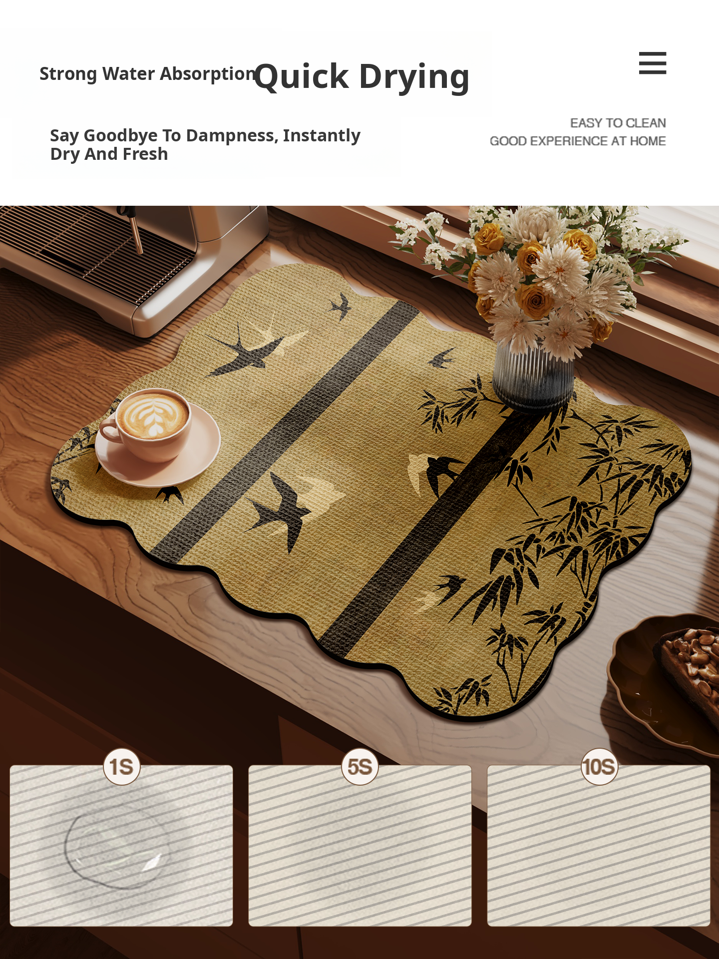 New Chinese Style Kitchen Drain Mat - Diatomaceous Earth Absorbent Pad, Surface Protector, Heat Resistant Mat, Dining Mat, Perfect for Coffee Machines
