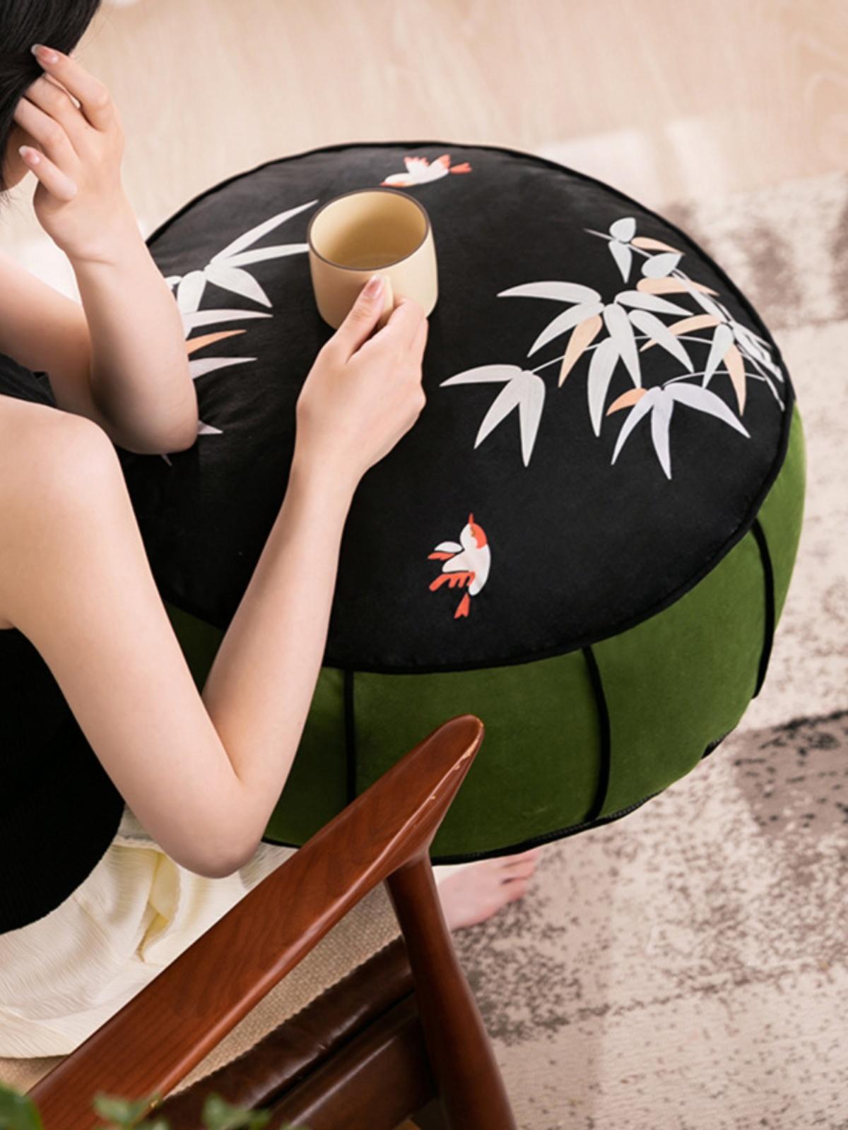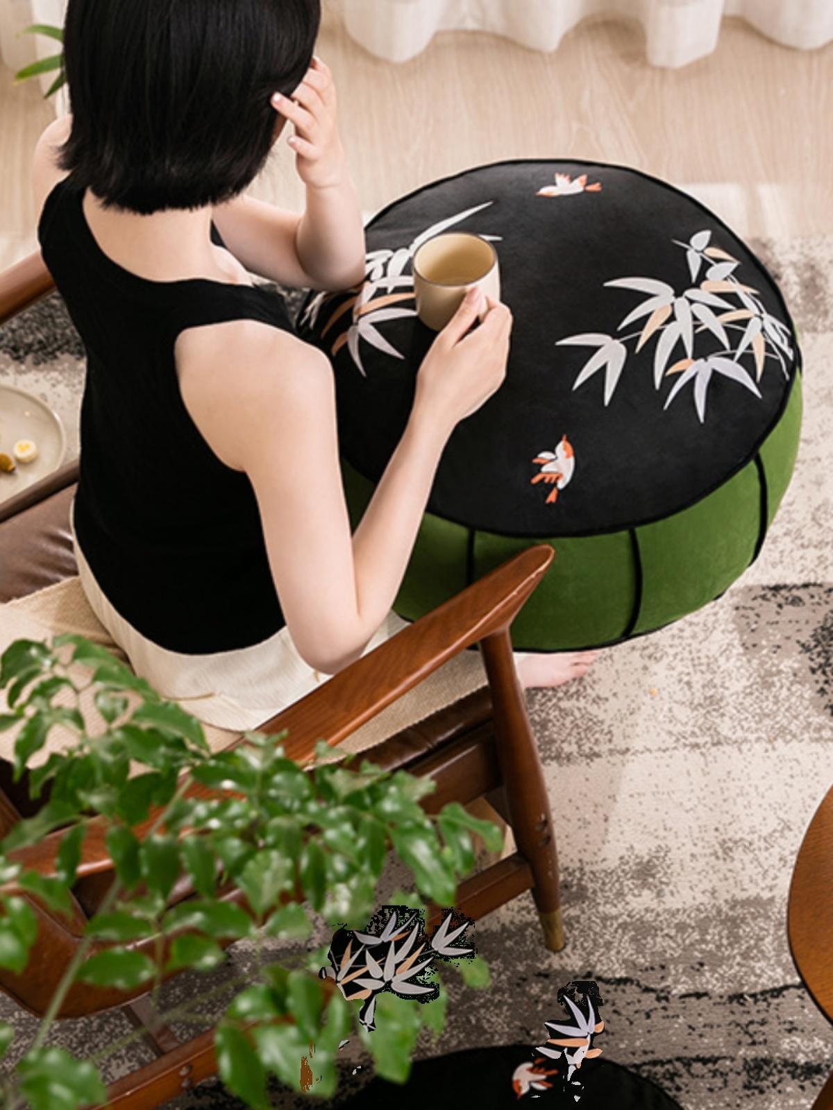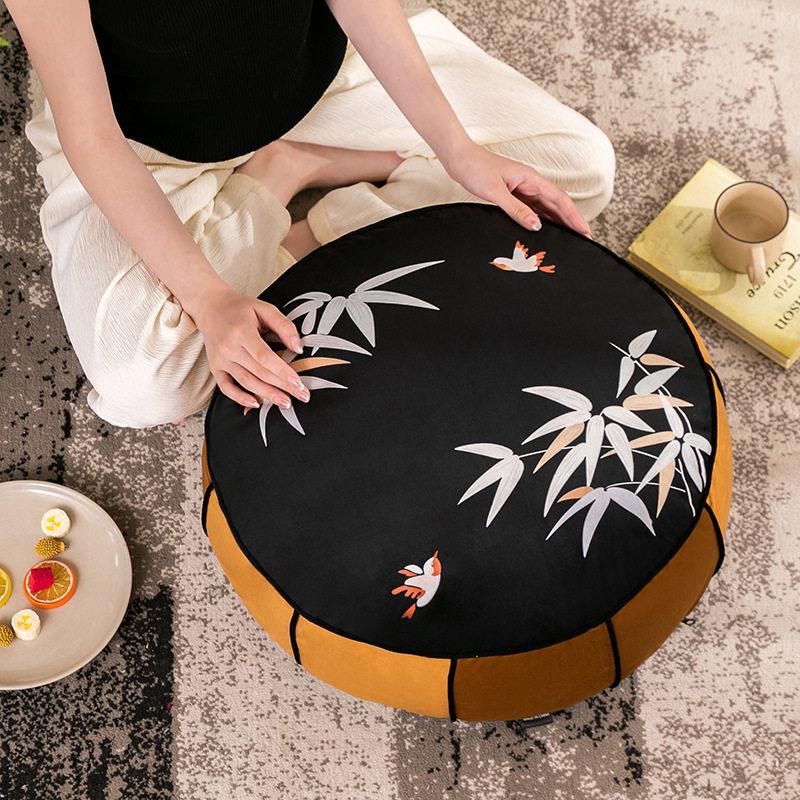 New Chinese Style Round Floor Cushion – Removable and Washable Meditation Pillow for Living Room, Balcony, Lazy Sofa, Tatami Support, Cozy Home Stool