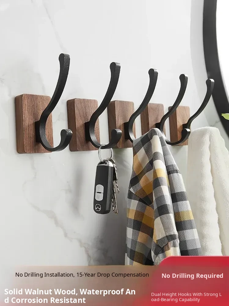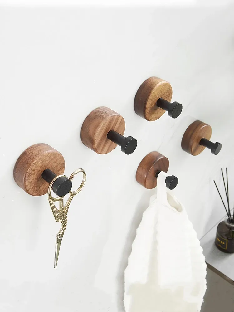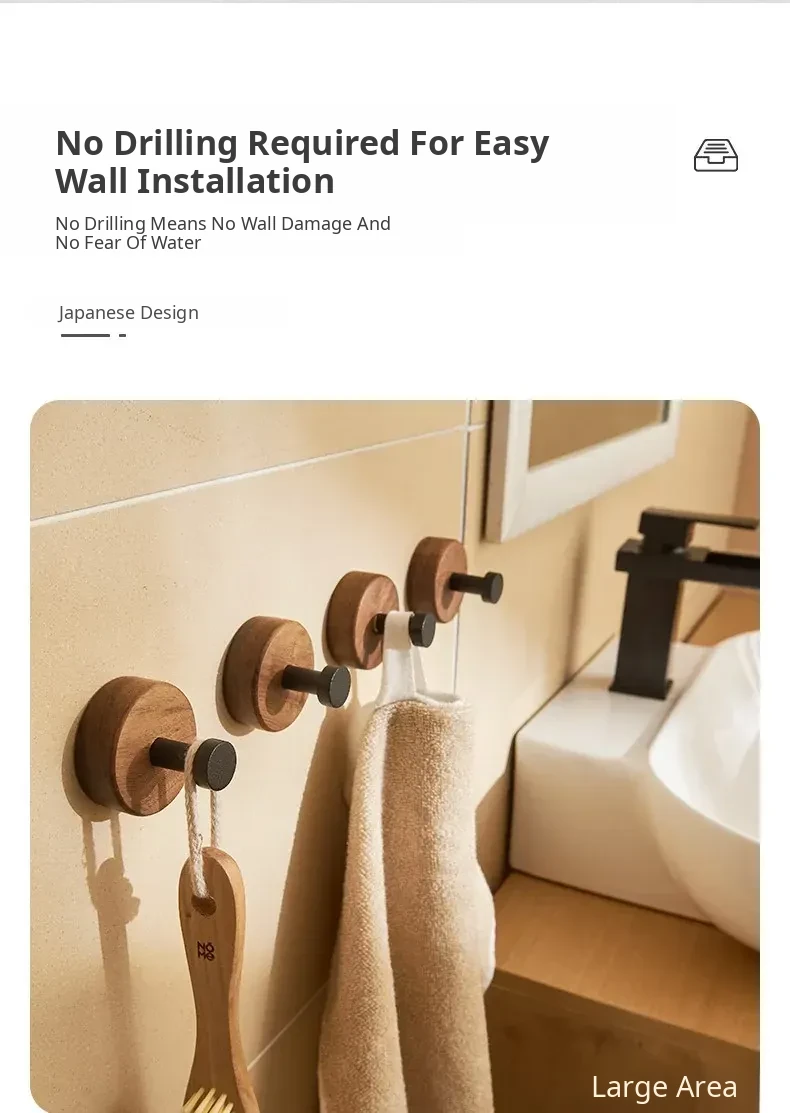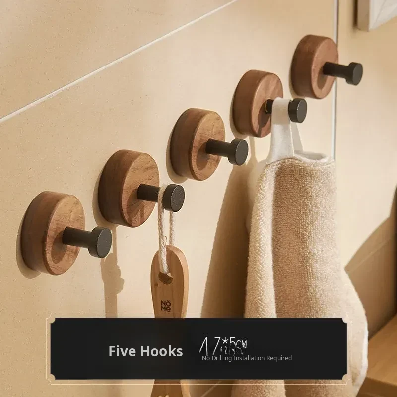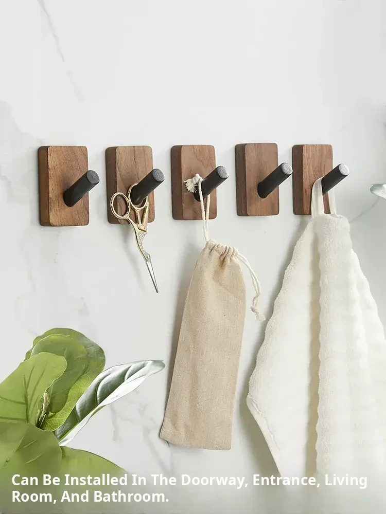 No-Drill Bathroom Door Hooks - Wall-Mounted Coat and Hat Rack for Easy Storage - Solid Wood Clothes Hangers - Perfect for Organizing Your Space!