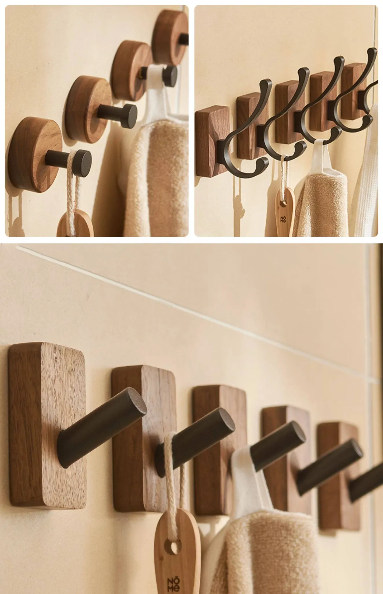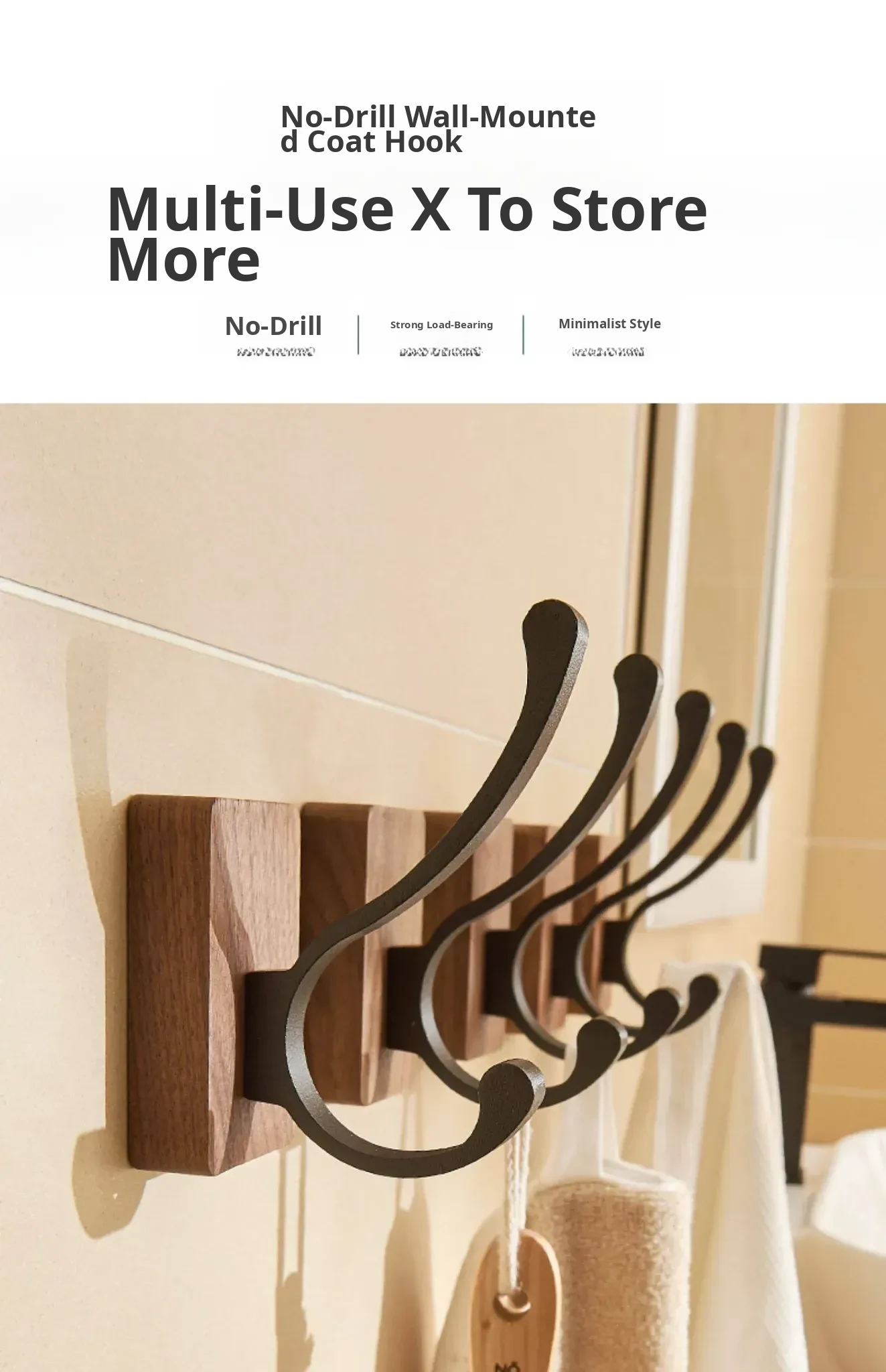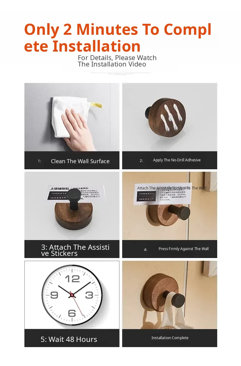 No-Drill Bathroom Door Hooks - Wall-Mounted Coat and Hat Rack for Easy Storage - Solid Wood Clothes Hangers - Perfect for Organizing Your Space!