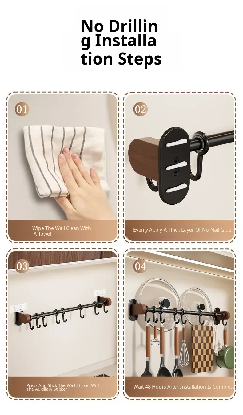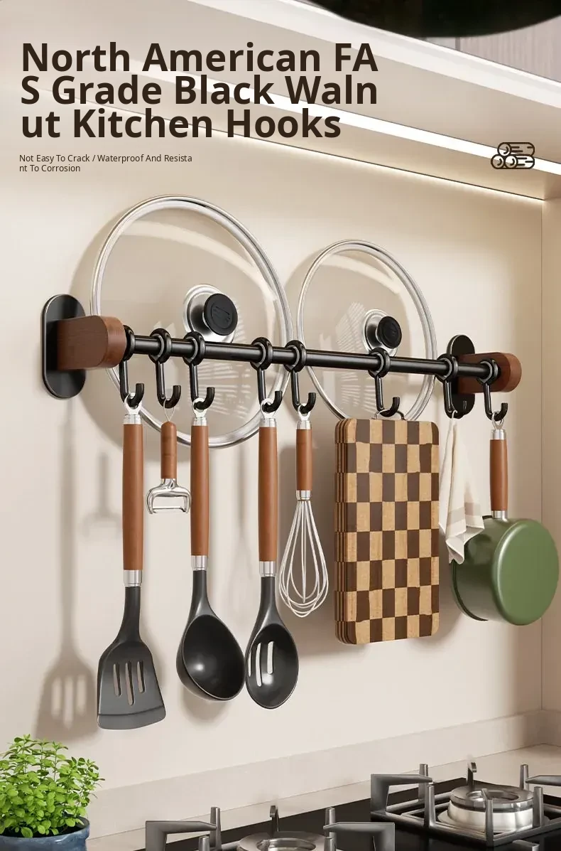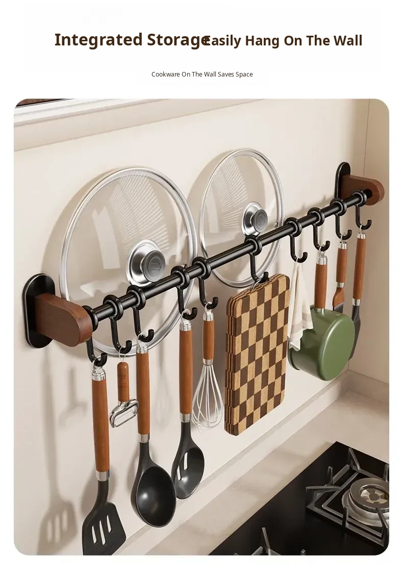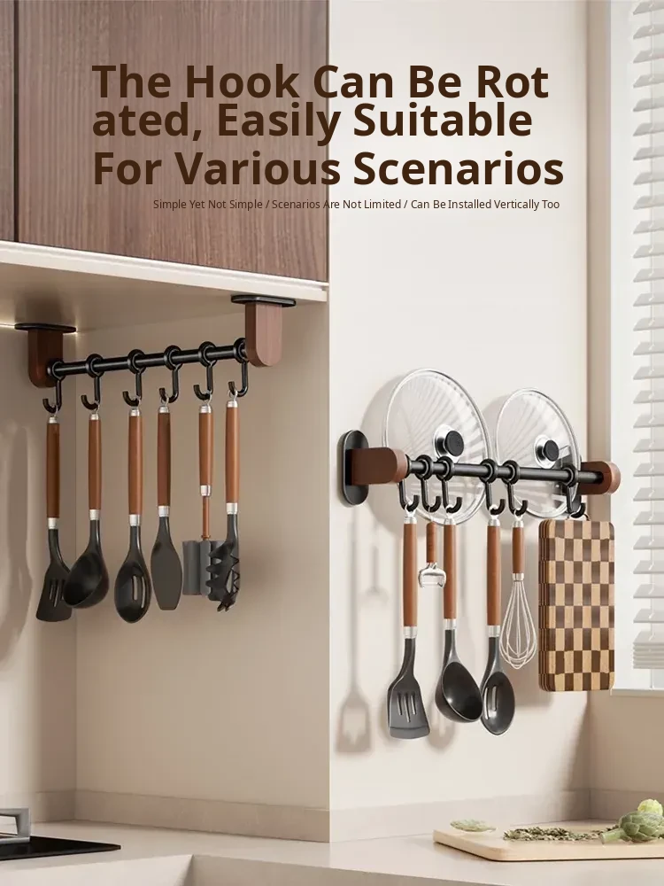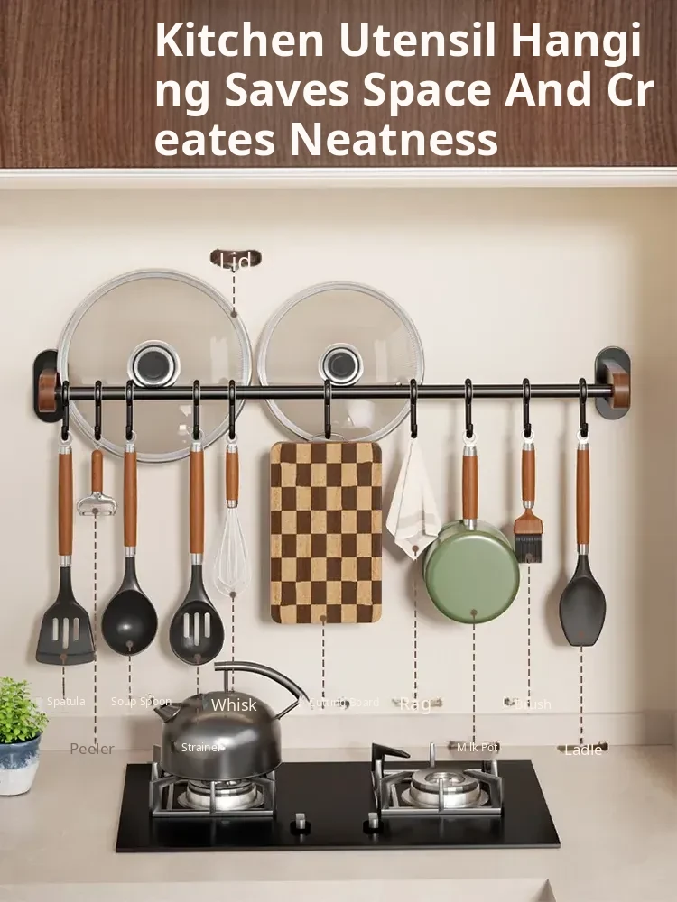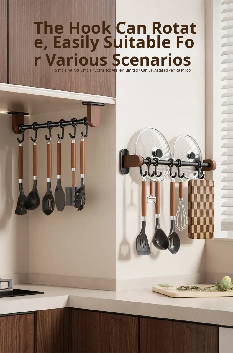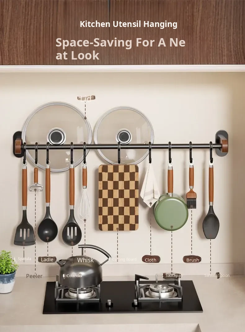 No-Drill Wall Hooks for Kitchen – Versatile Hanging Rack for Spoons, Spatulas, and Cloths – Space-Saving Storage Solution with Easy Installation