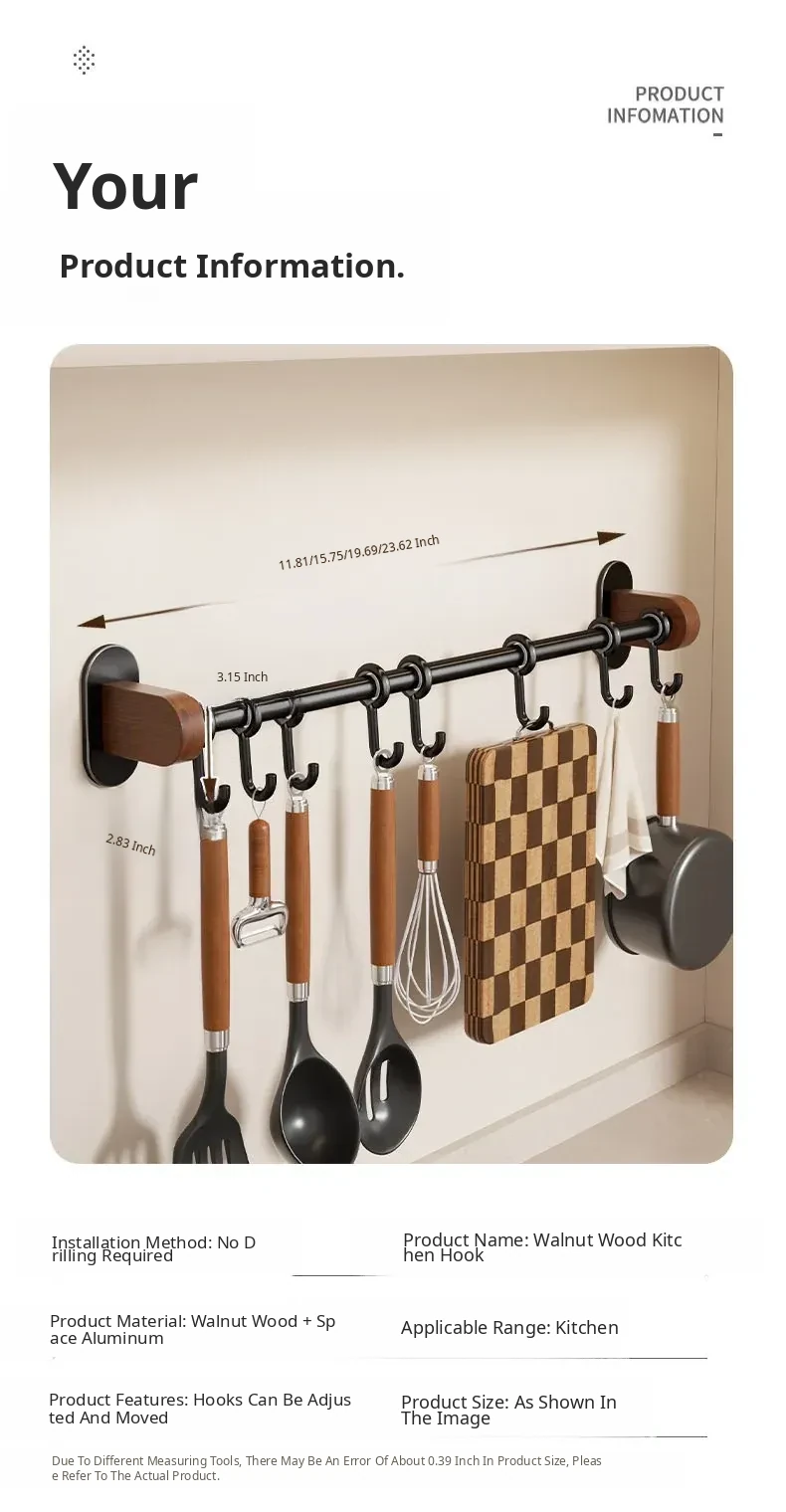[Black + Walnut] Hook 19.69in (7 Hooks)
