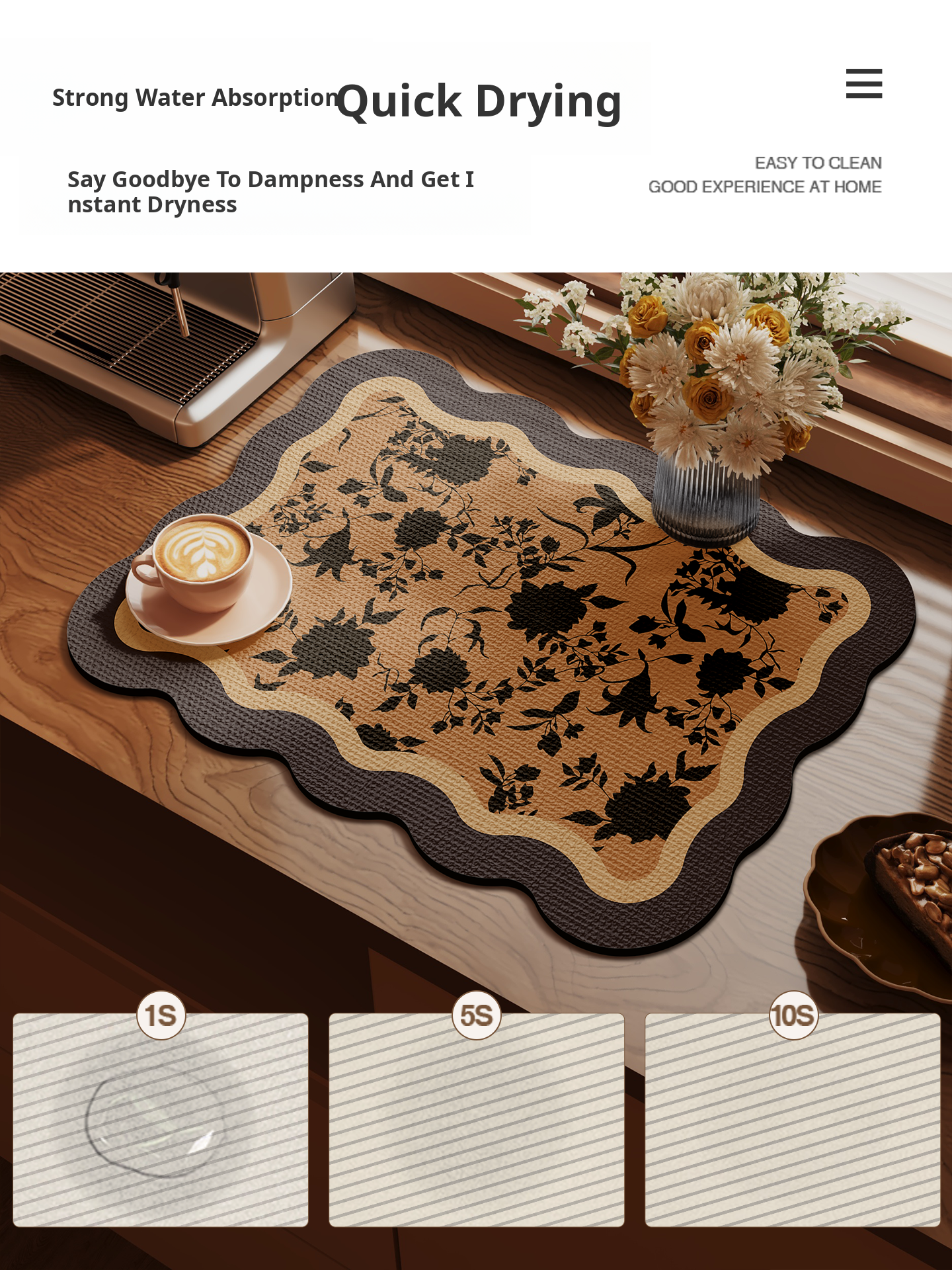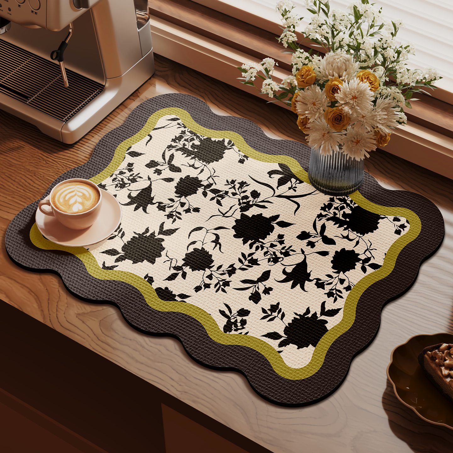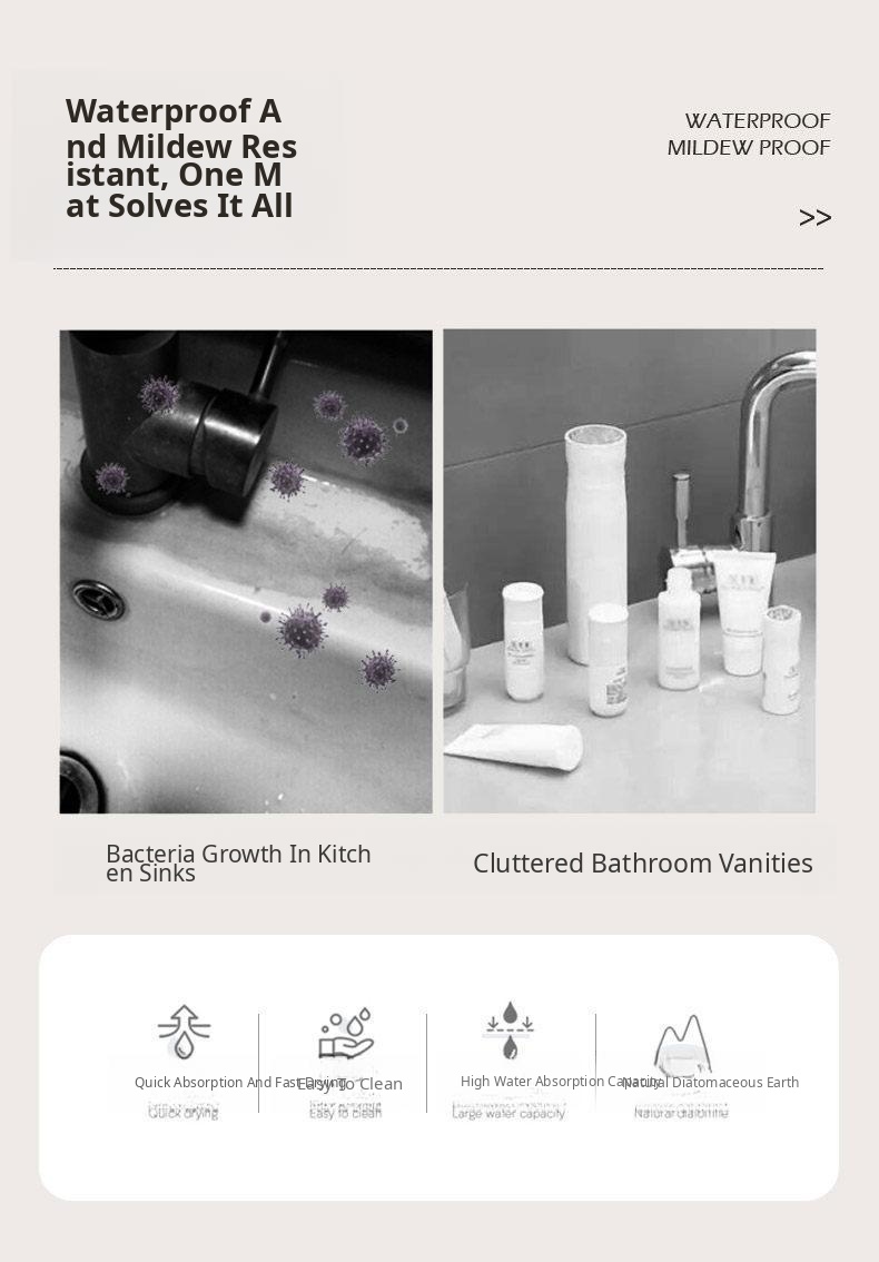 Premium Silicone Drying Mat for Kitchen Countertops - Fast-Drying, Absorbent Diatomaceous Earth, Non-Slip, Heat-Resistant Bar Sink Mat for an Elegant American Style Kitchen