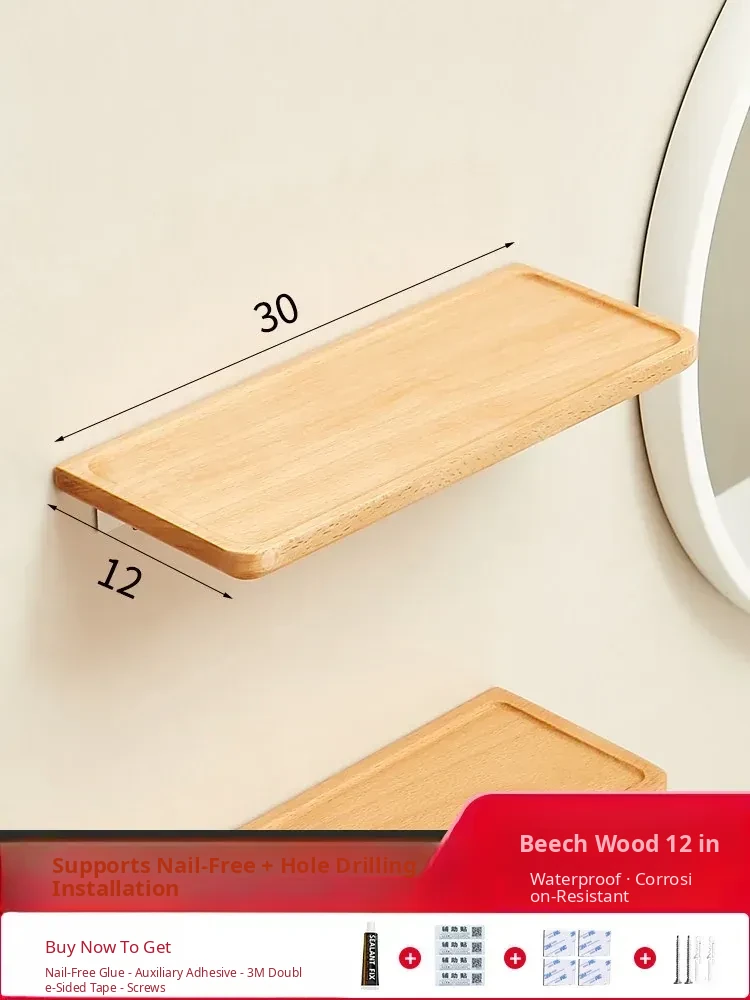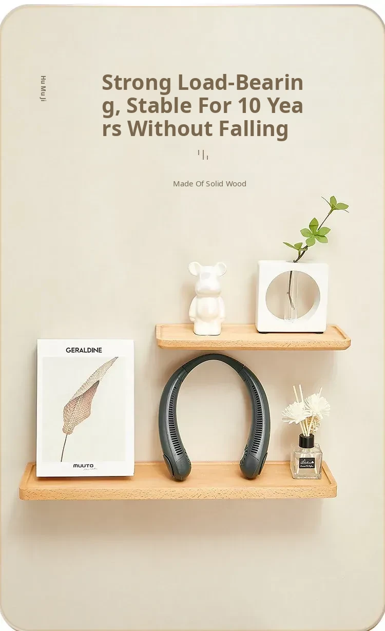 Solid Wood Floating Shelf - No Drilling Wall-Mounted Storage Rack for Living Room, Bedroom, or Bedside - Stylish and Functional Wall Organizer
