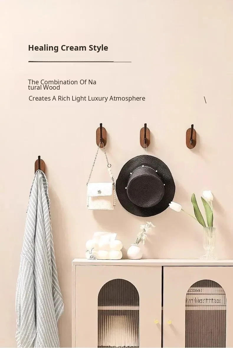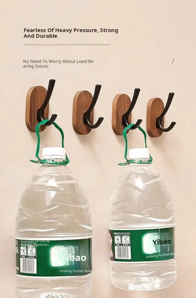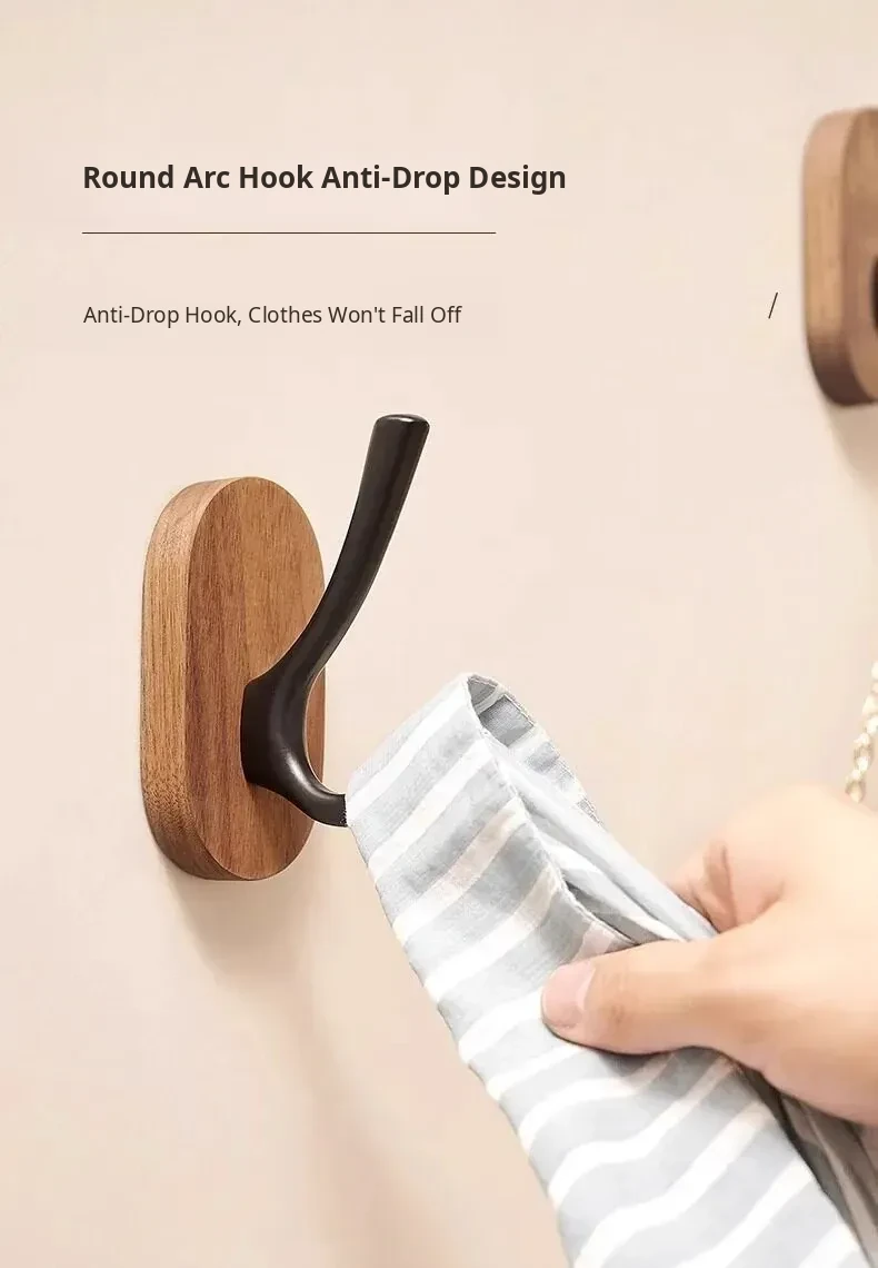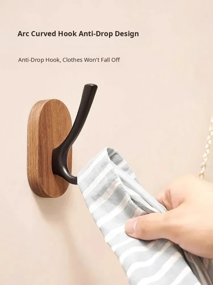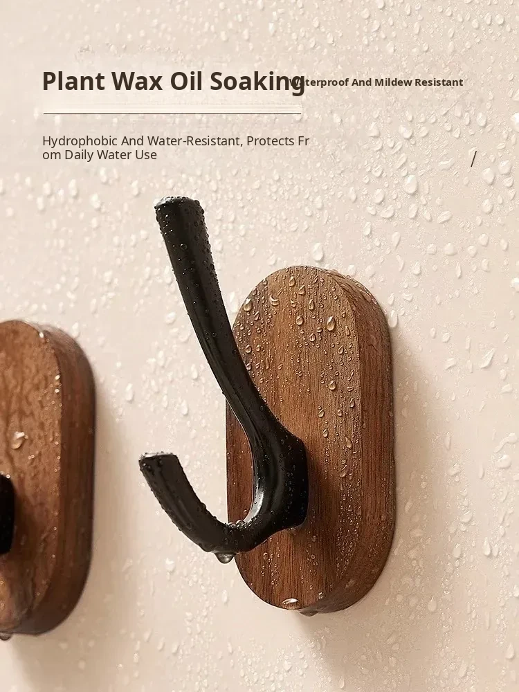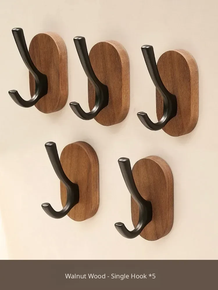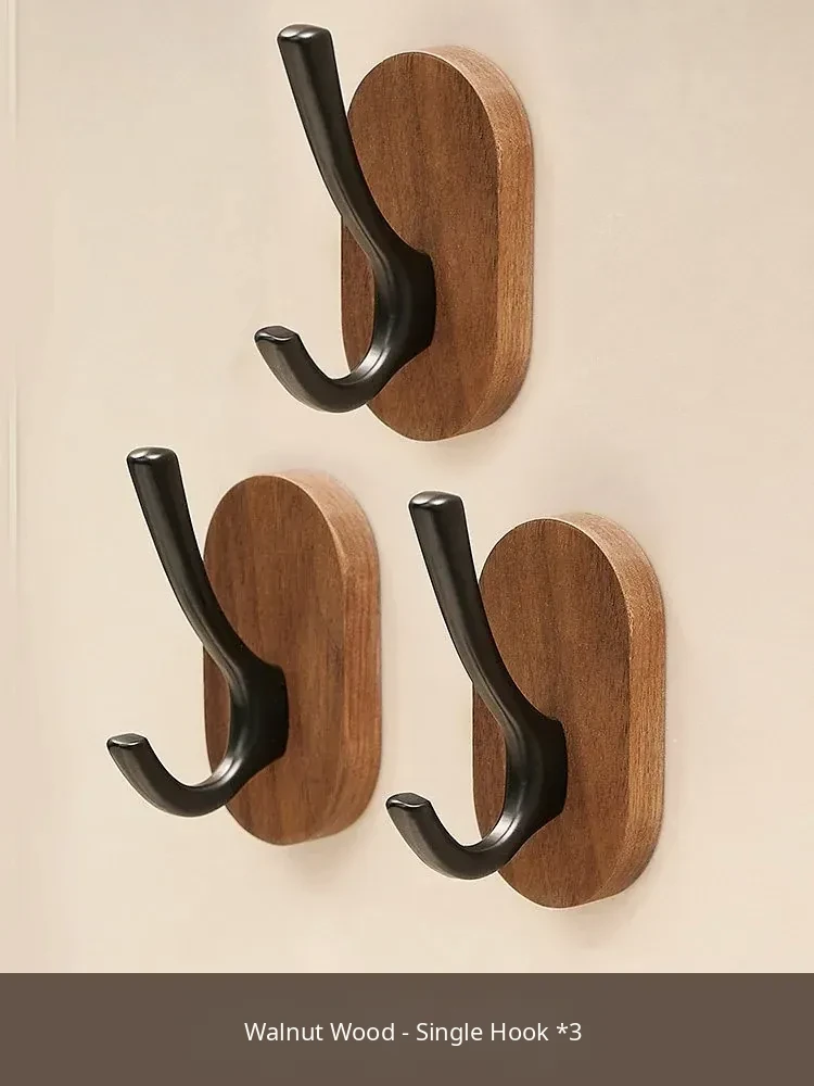 Strong Adhesive Walnut Wood Wall Hooks - No Drilling Needed! Perfect for Bathrooms and Entryways, Stylish Single Hook for Hanging Coats, Bags, and More.