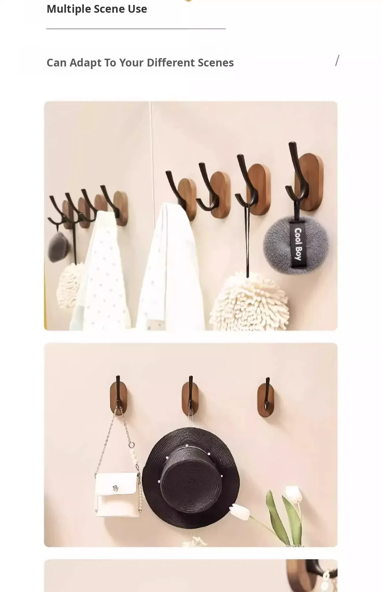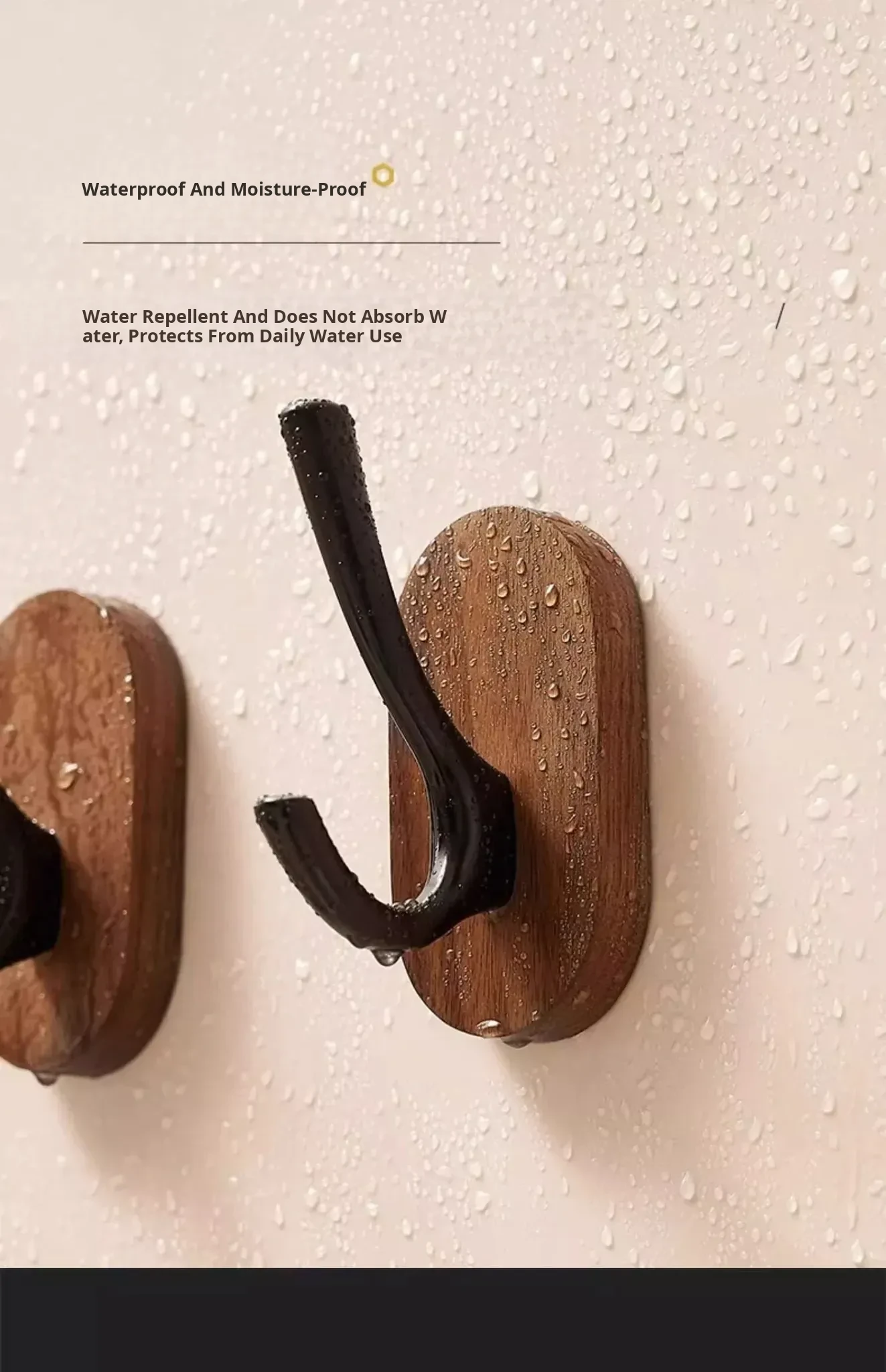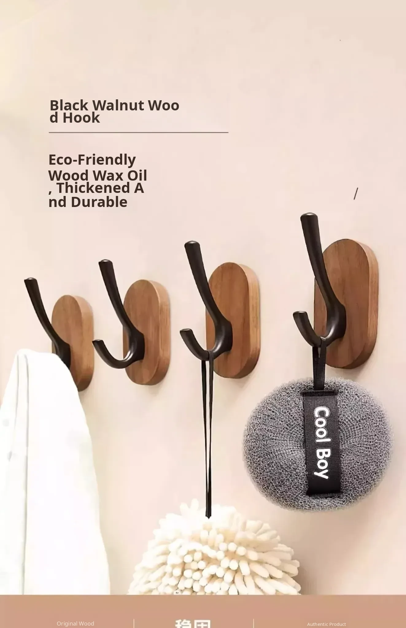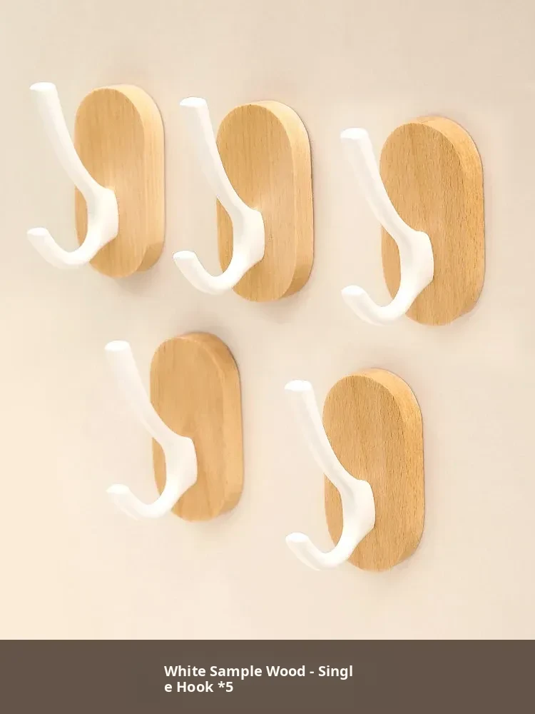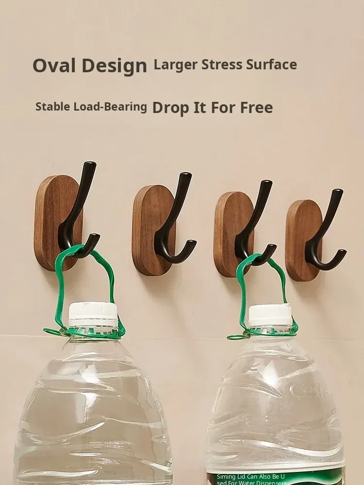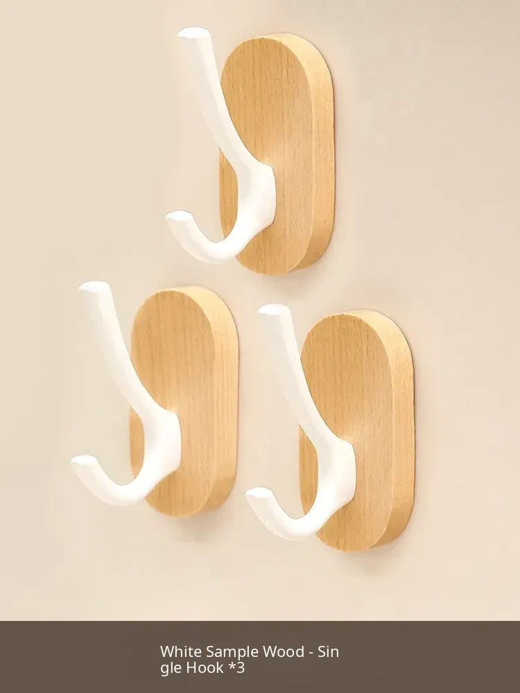 Strong Adhesive Walnut Wood Wall Hooks - No Drilling Needed! Perfect for Bathrooms and Entryways, Stylish Single Hook for Hanging Coats, Bags, and More.