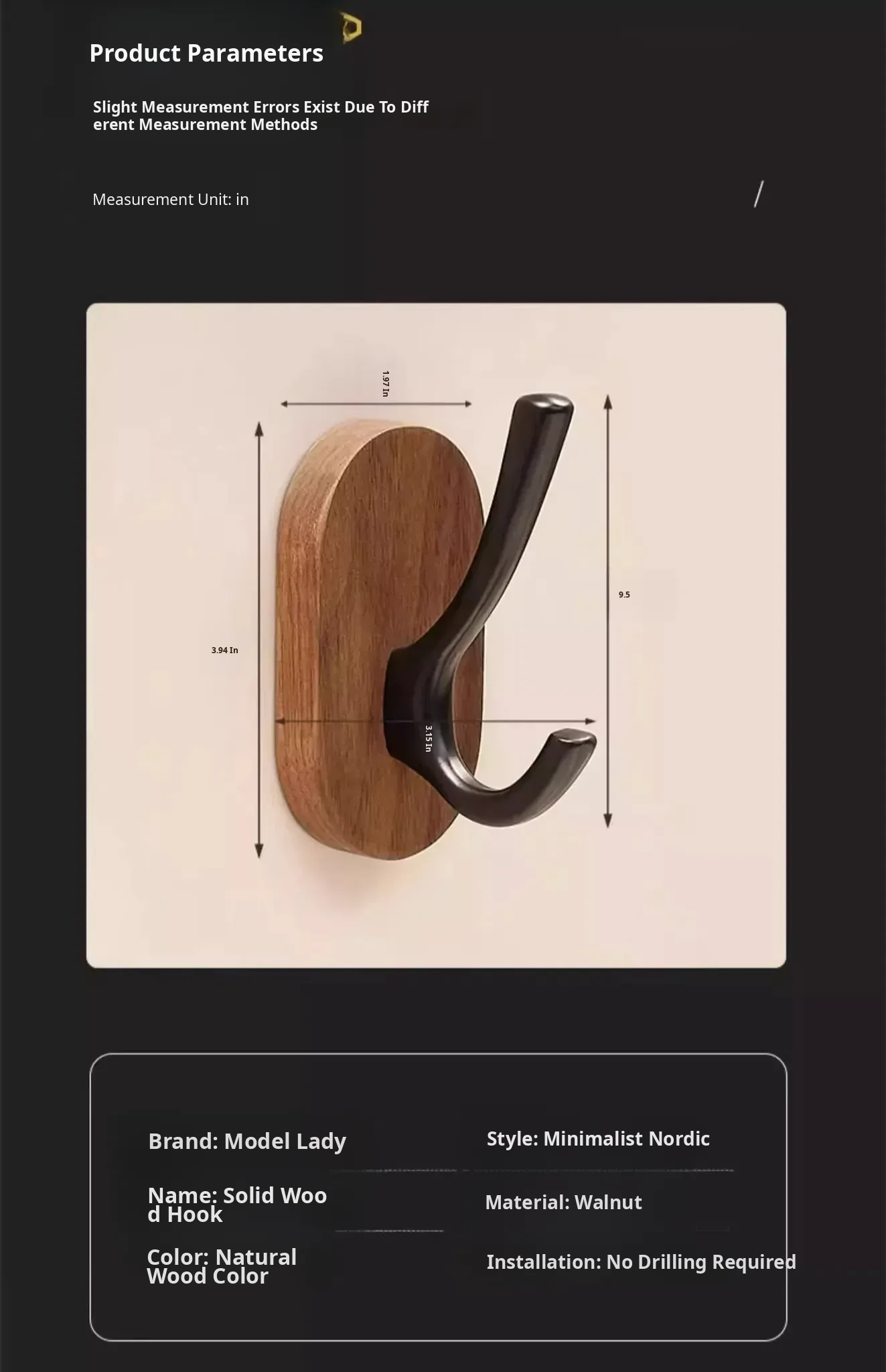 Black Walnut [Oval Single Hook] - Jet Black
