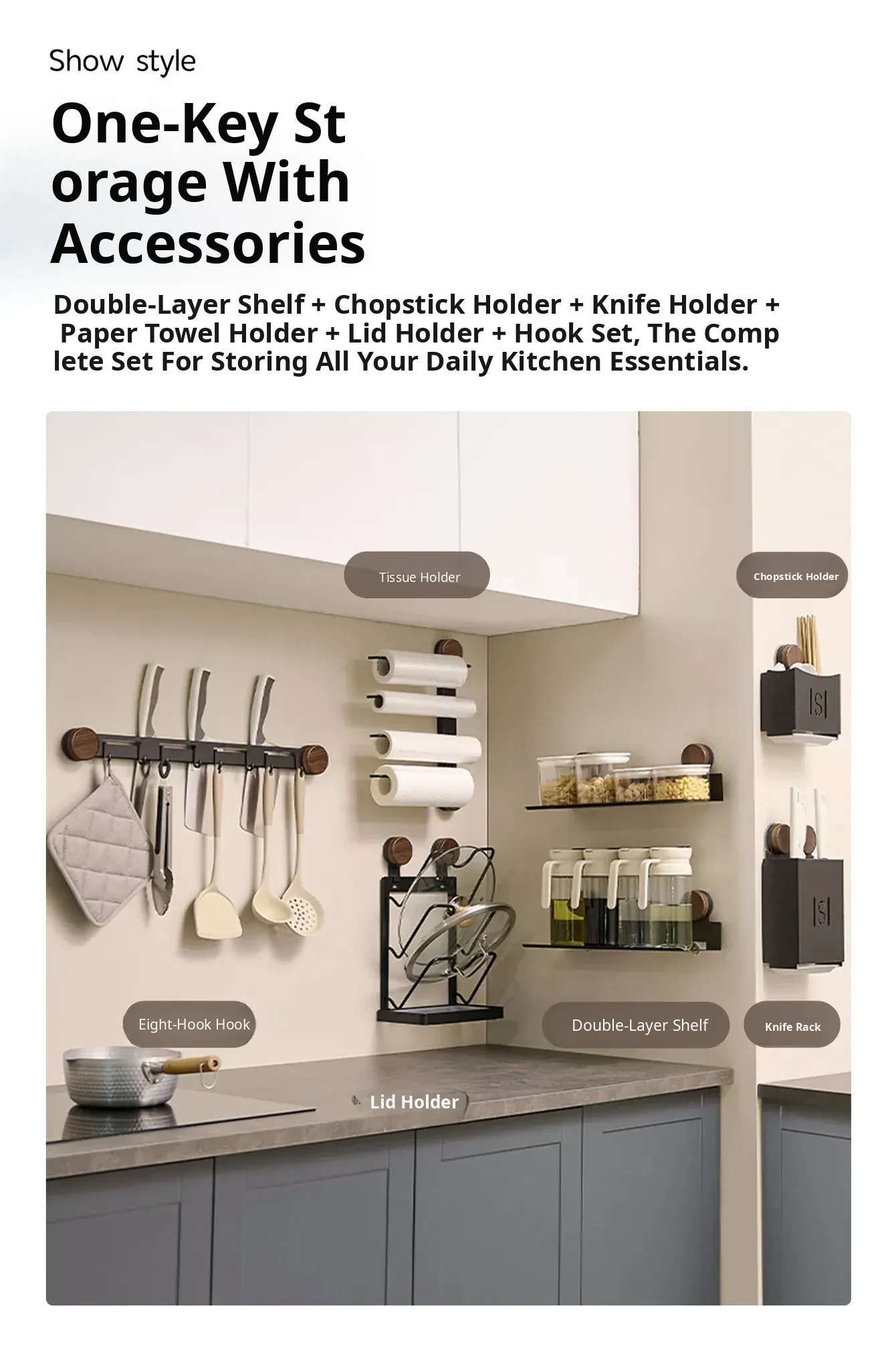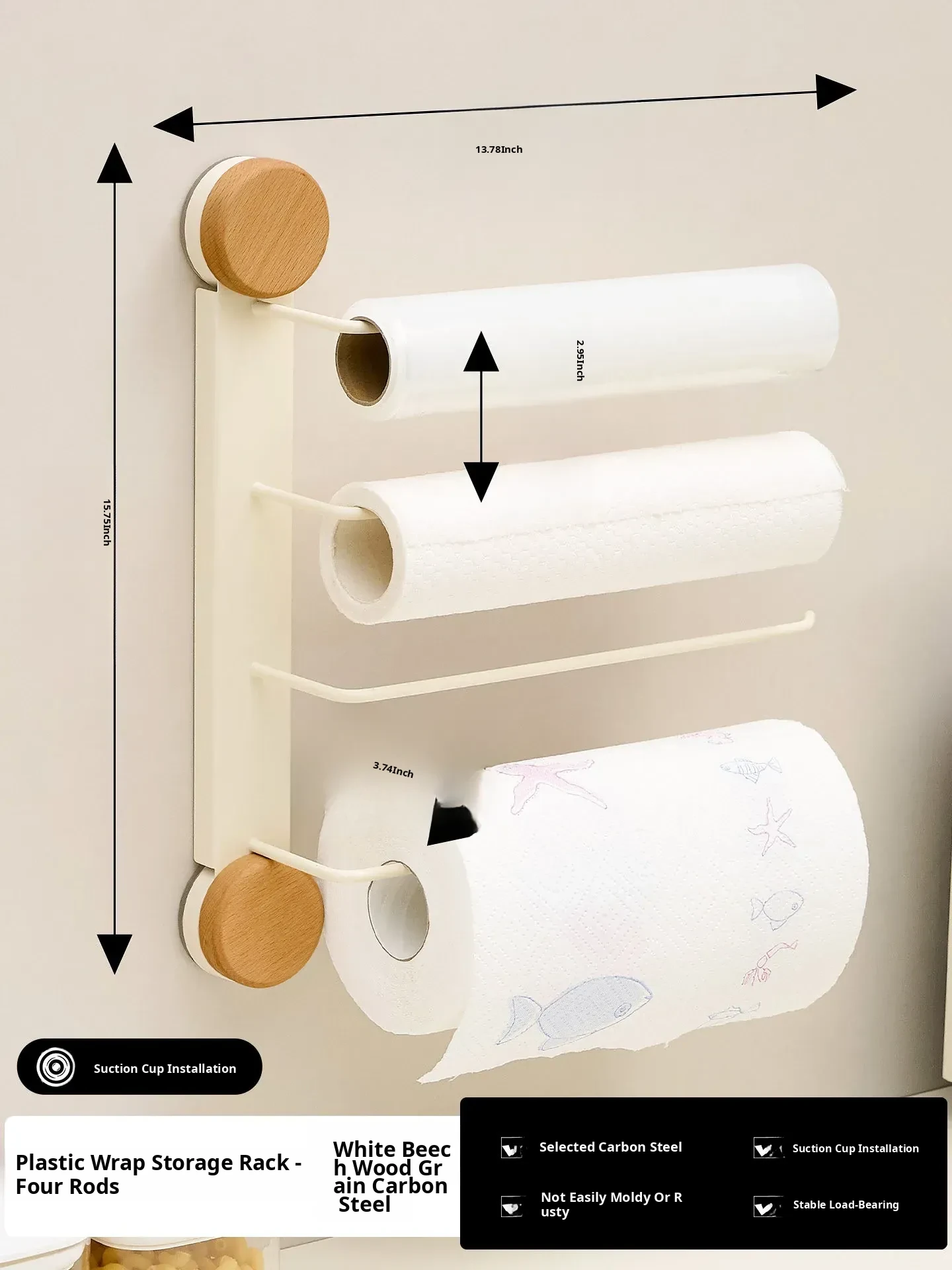 Suction Cup Kitchen Paper Towel Holder - No Drilling Required, Versatile Cabinet Roll Paper Rack, Plastic Wrap and Bag Organizer, Multi-Rod Storage for Cloths - Wall-Mounted Design for Space-Saving Convenience