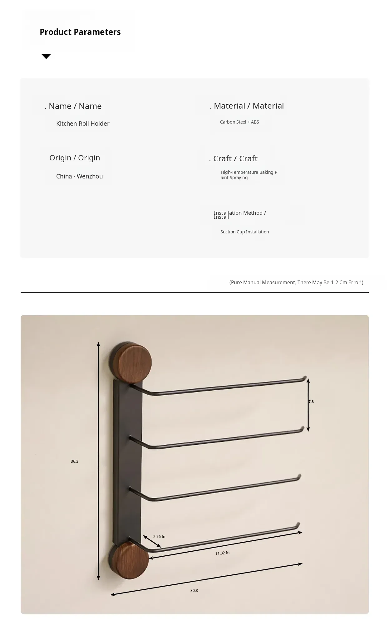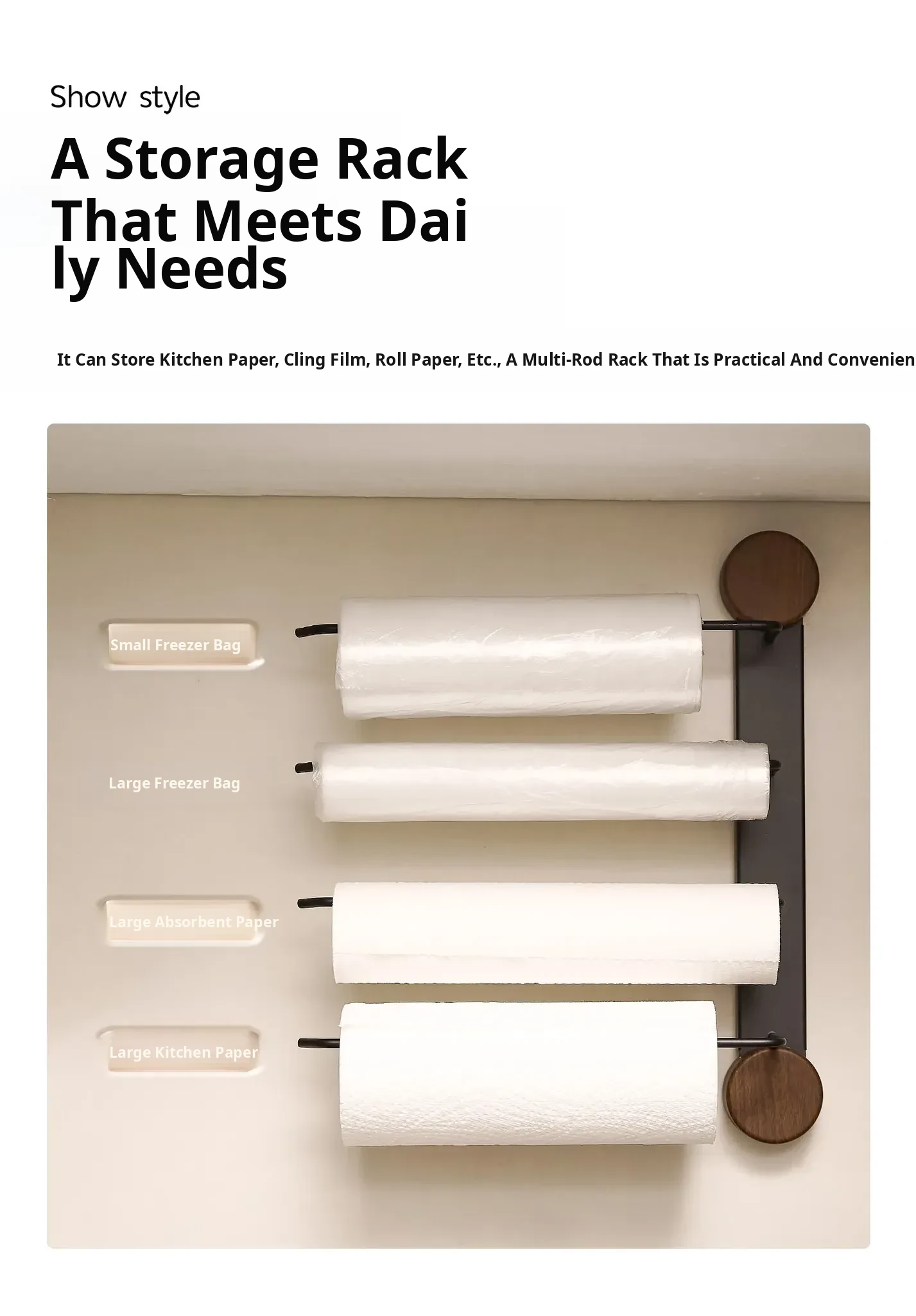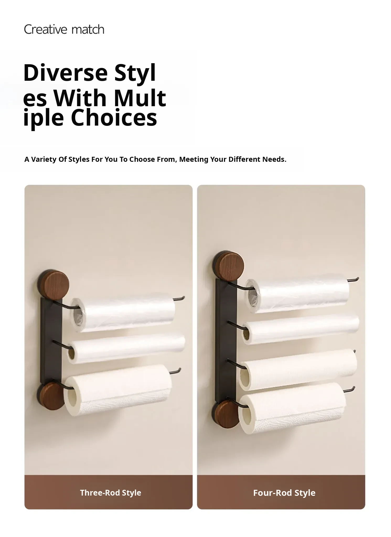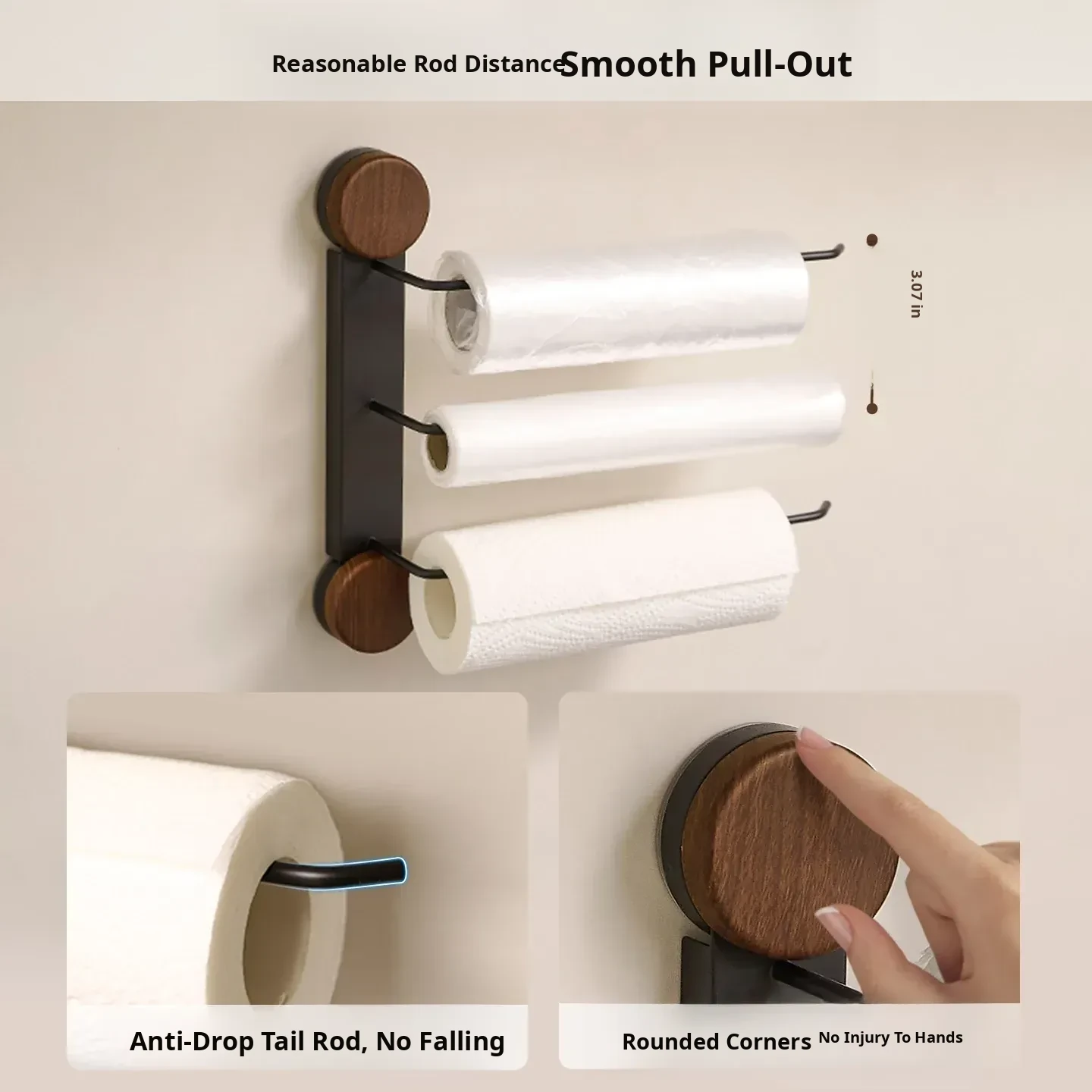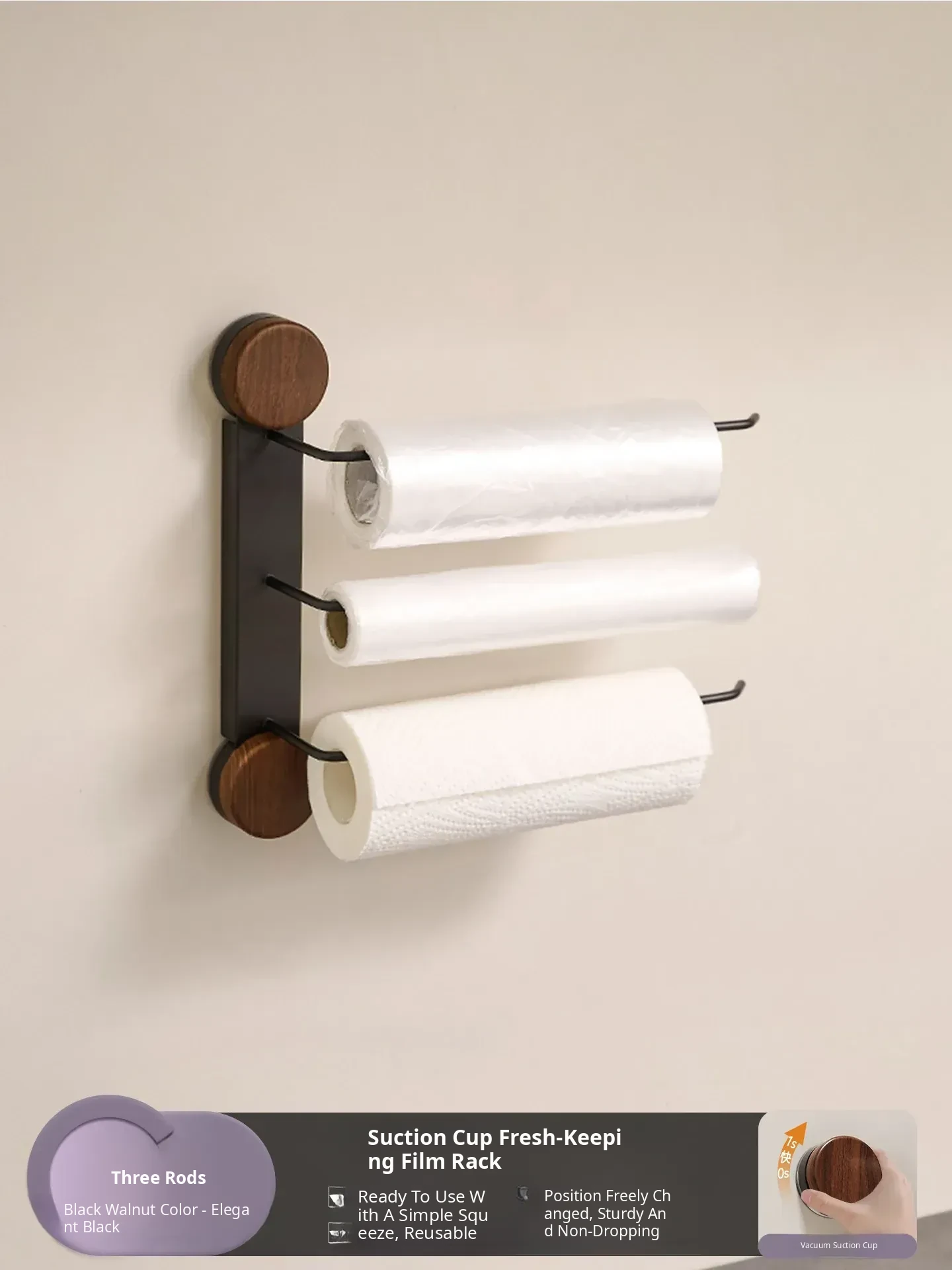 Black Walnut Color-Kitchen Paper Towel Holder Three Poles [Milk White]