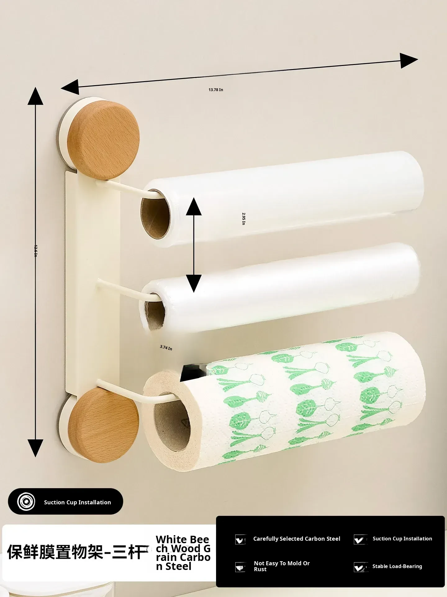 Beech Wood Grain-Kitchen Paper Towel Holder Three Poles [Milk White]