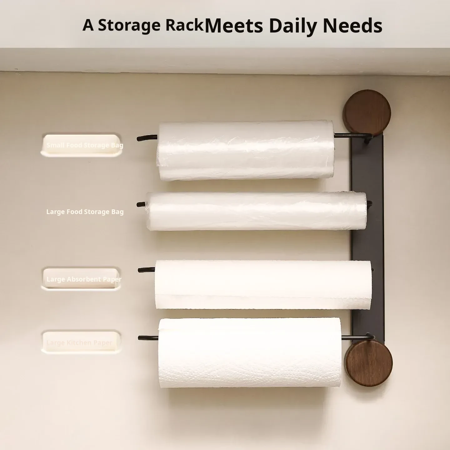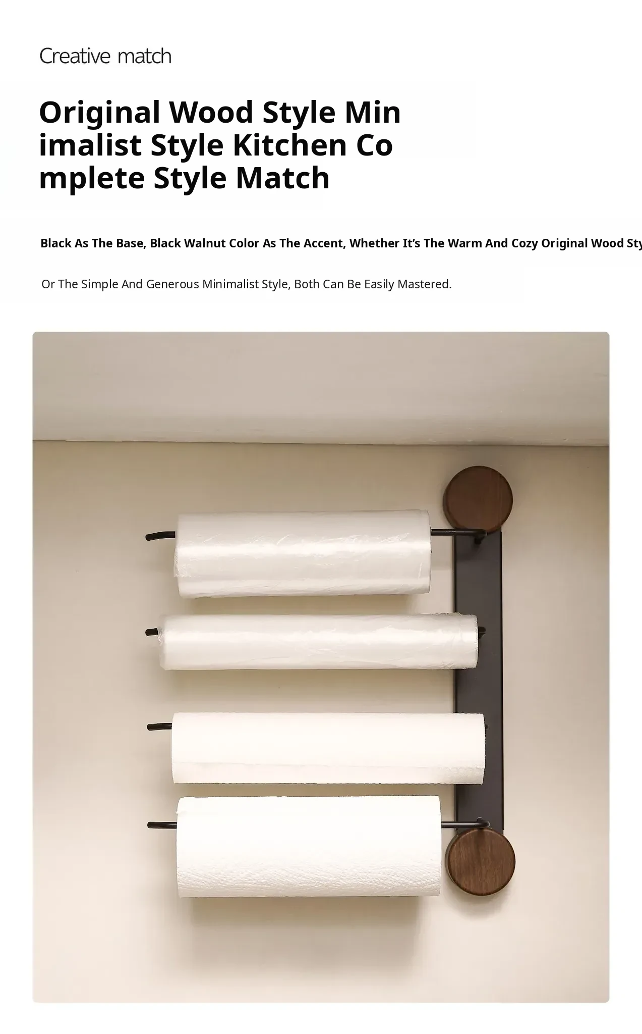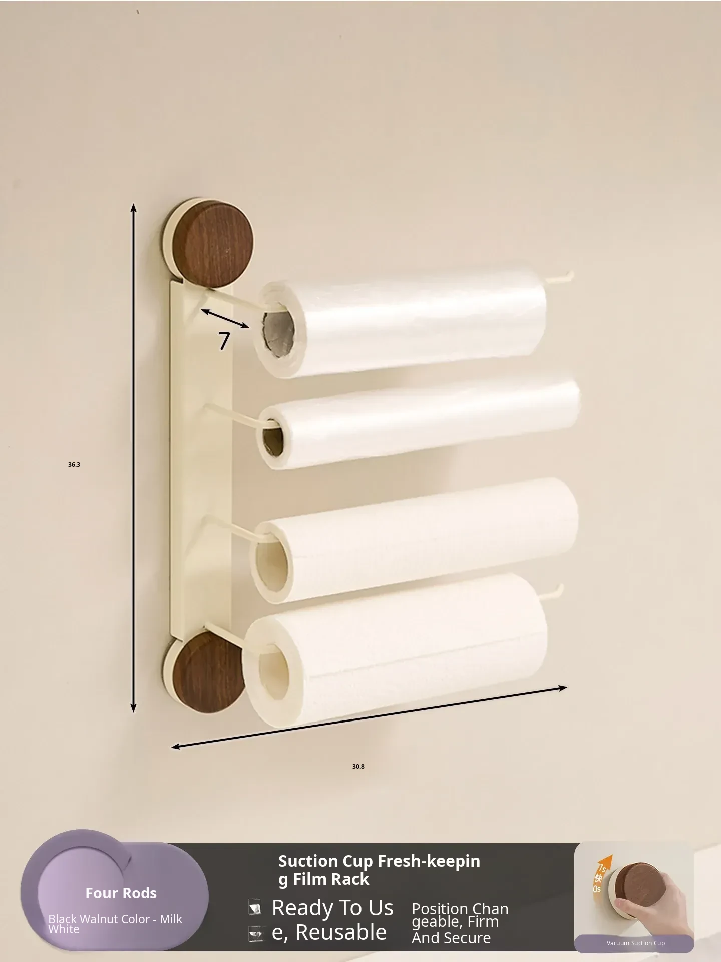 Black Walnut Color-Kitchen Paper Towel Holder Four Poles [Milk White]