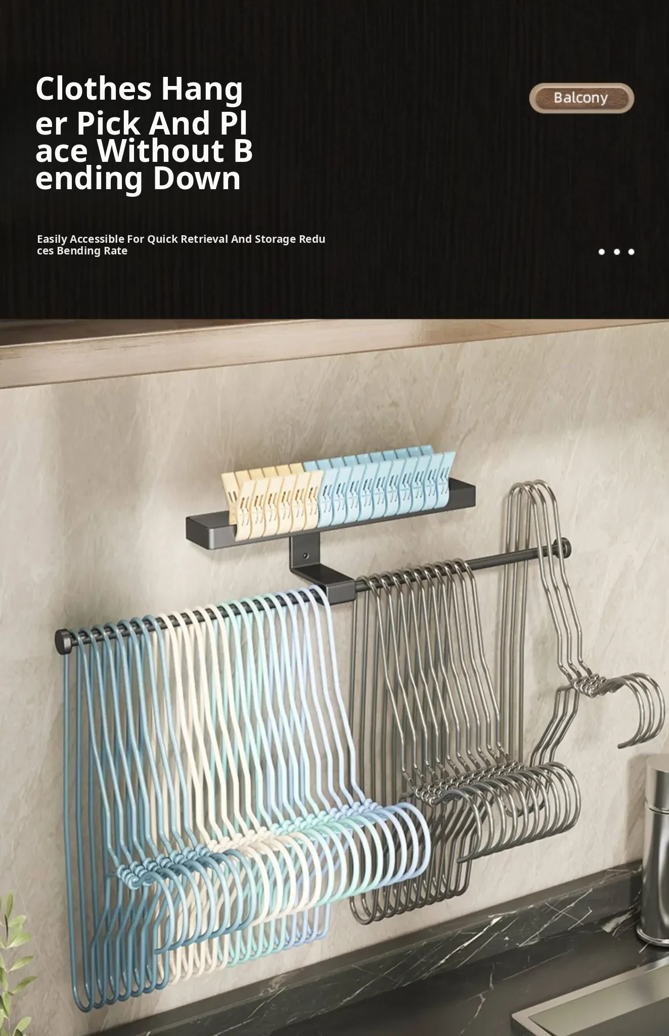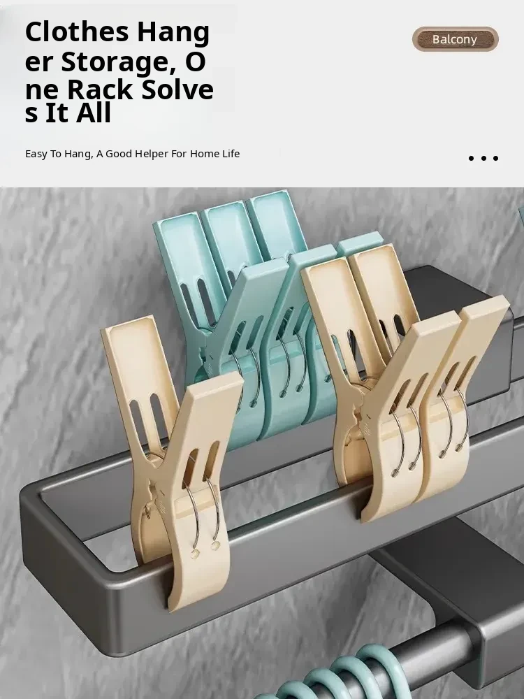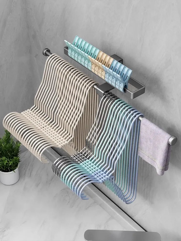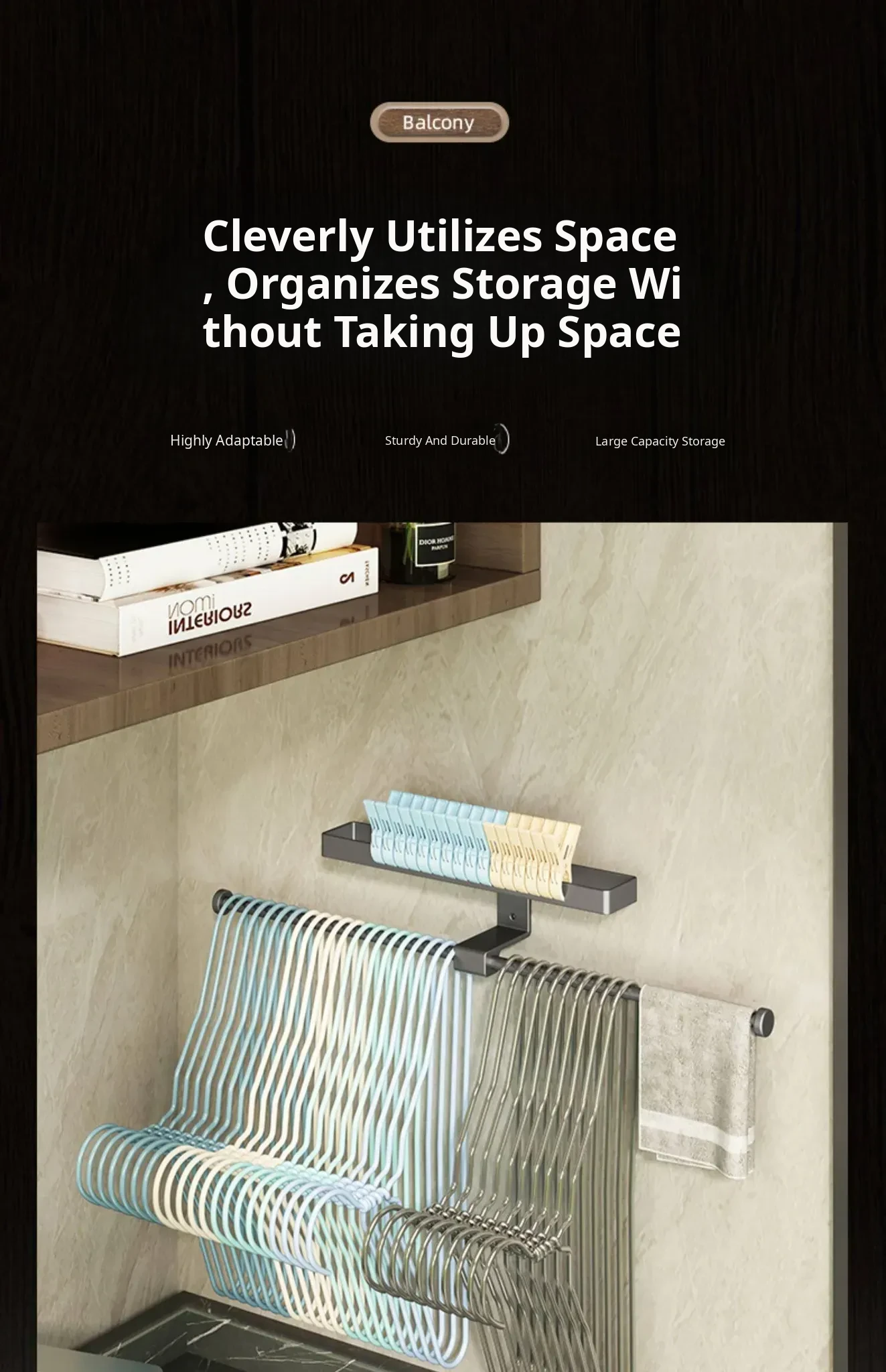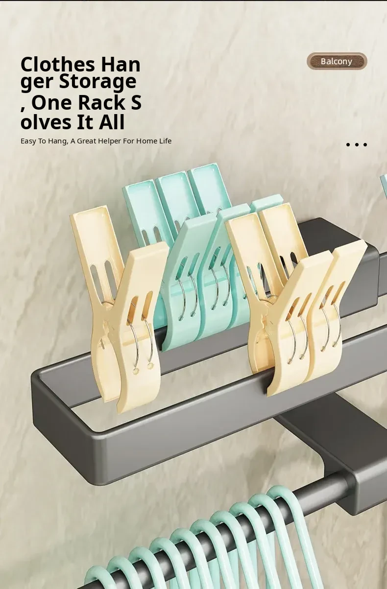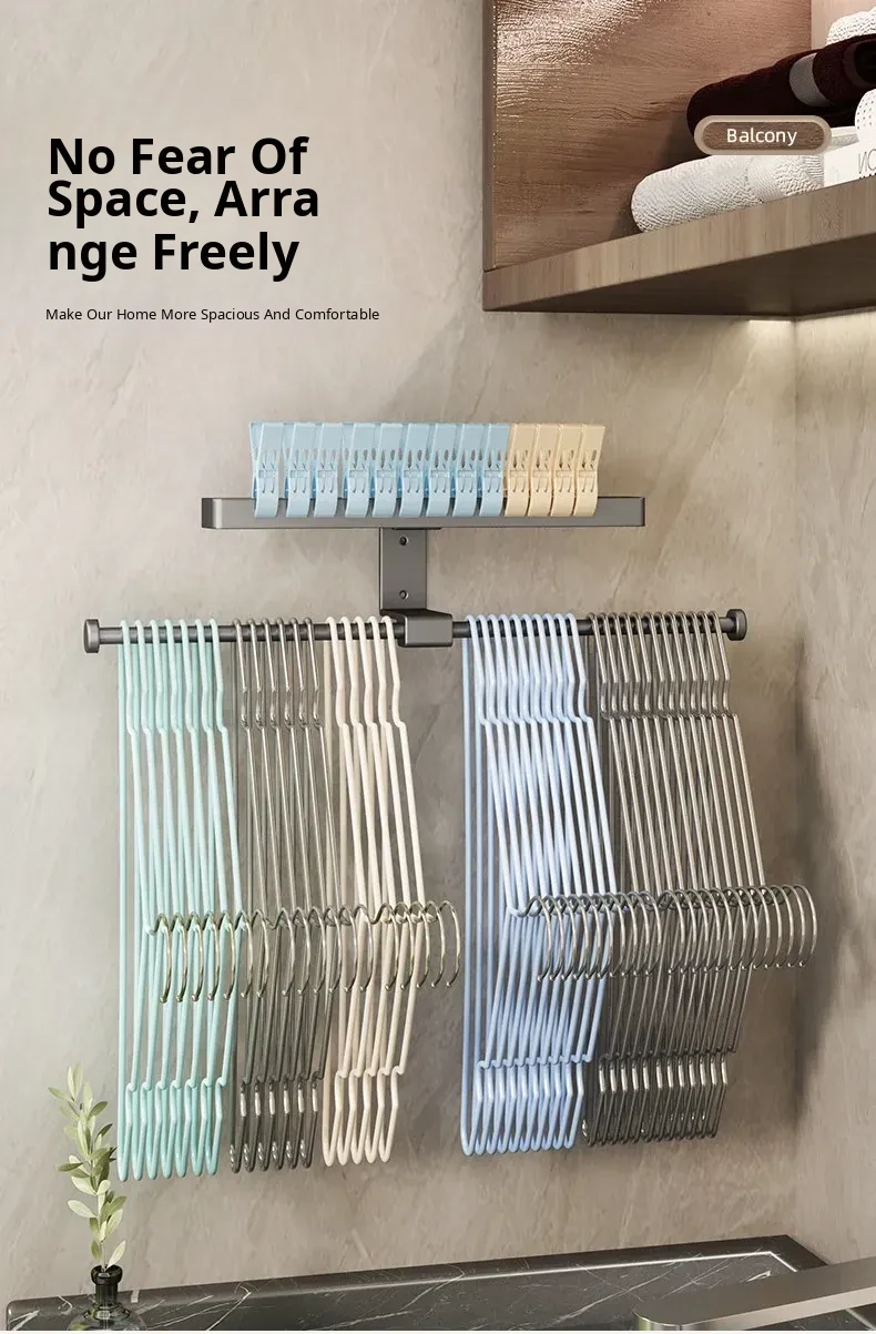 Versatile Wall-Mounted Clothes Drying Rack - No Drill, Space-Saving Hanger for Balcony Organizing with Clips and Multi-Functional Hooks for Home Storage