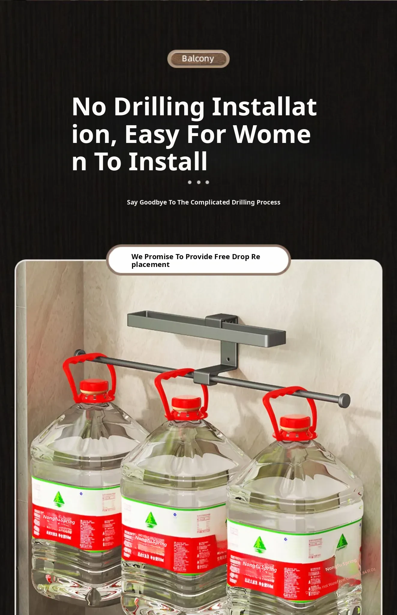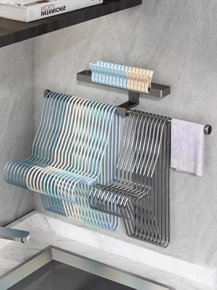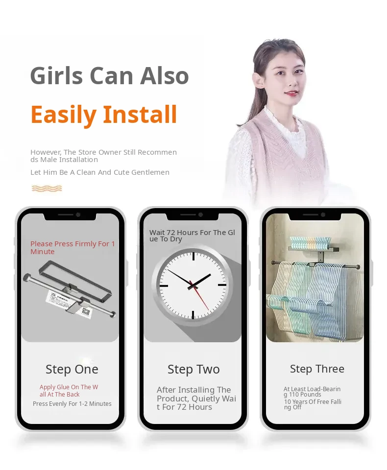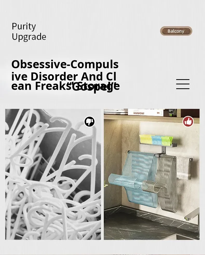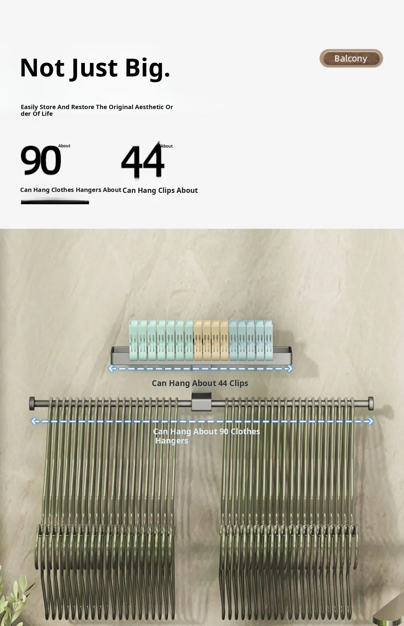 Versatile Wall-Mounted Clothes Drying Rack - No Drill, Space-Saving Hanger for Balcony Organizing with Clips and Multi-Functional Hooks for Home Storage