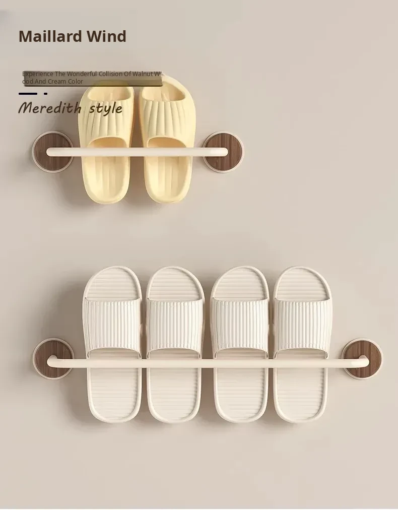 Wall-Mounted No-Drill Bathroom Slipper Rack - Space-Saving Organizer for Shoes, Perfect for Toilets and Behind Doors, with Drainage Design for Quick Drying