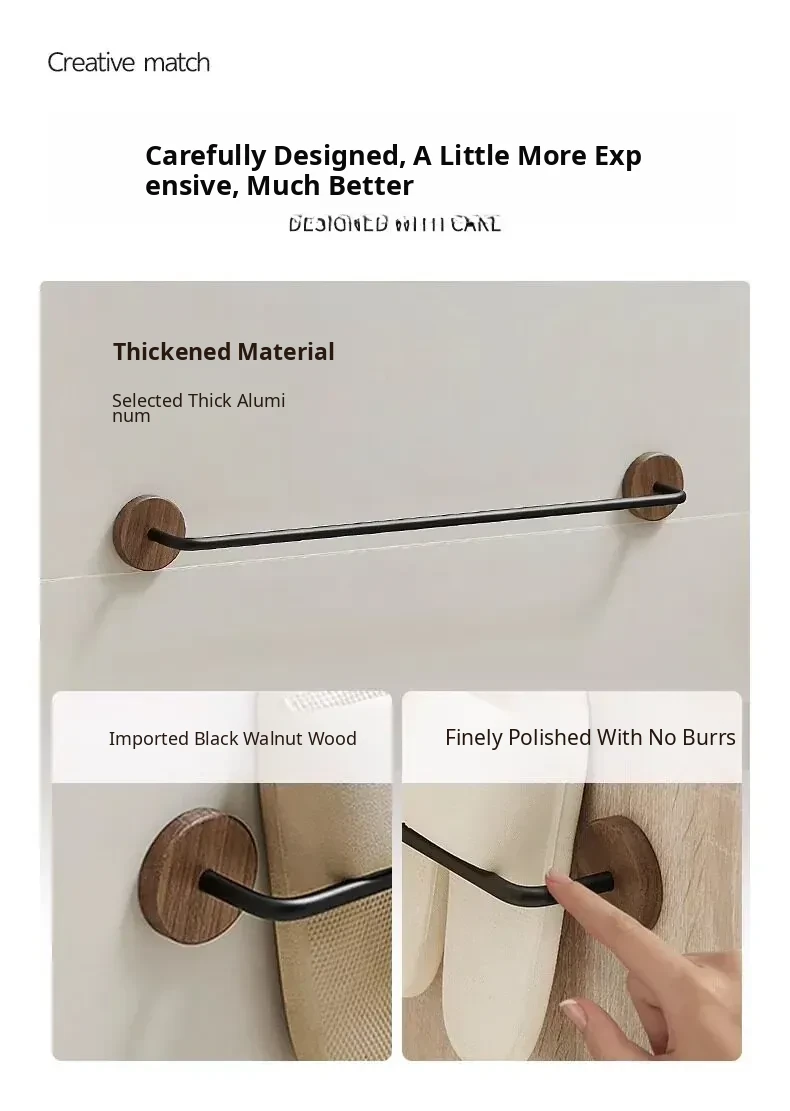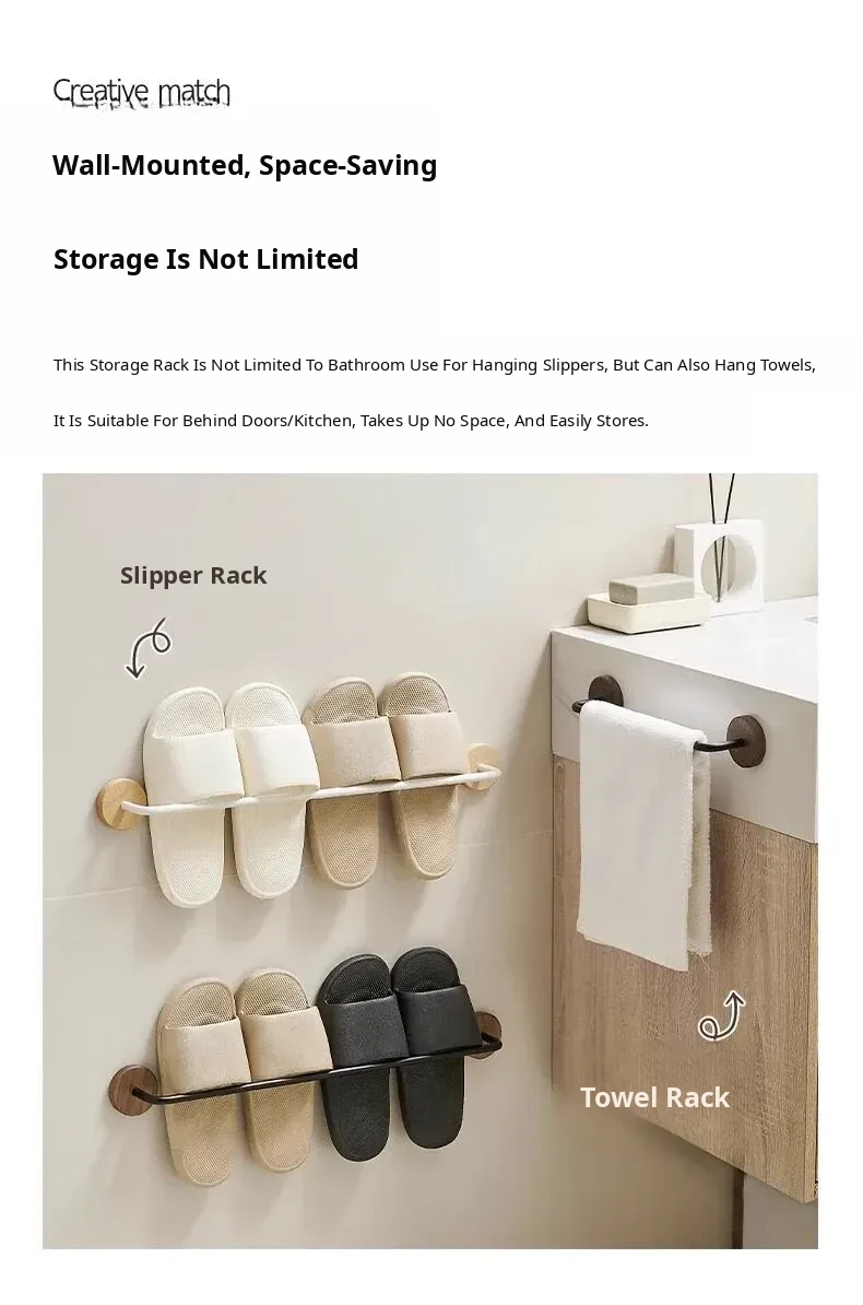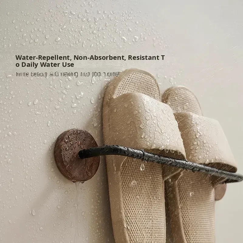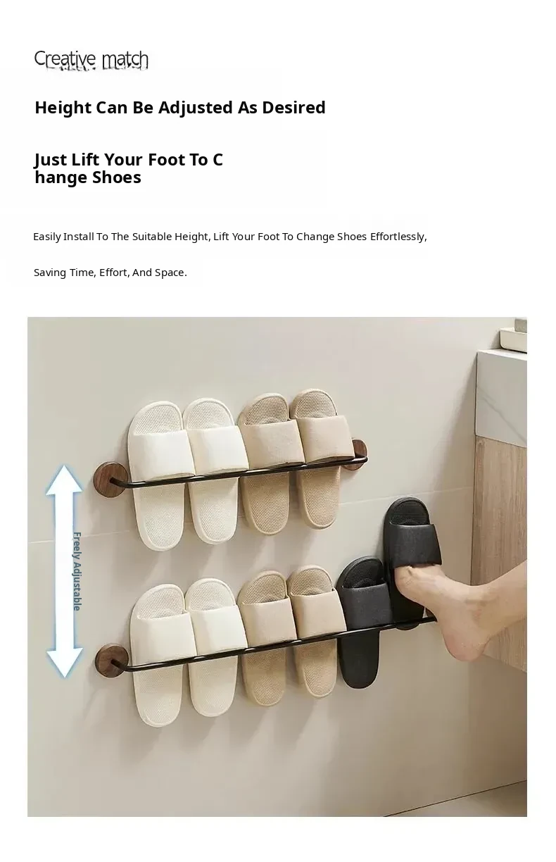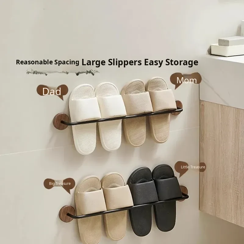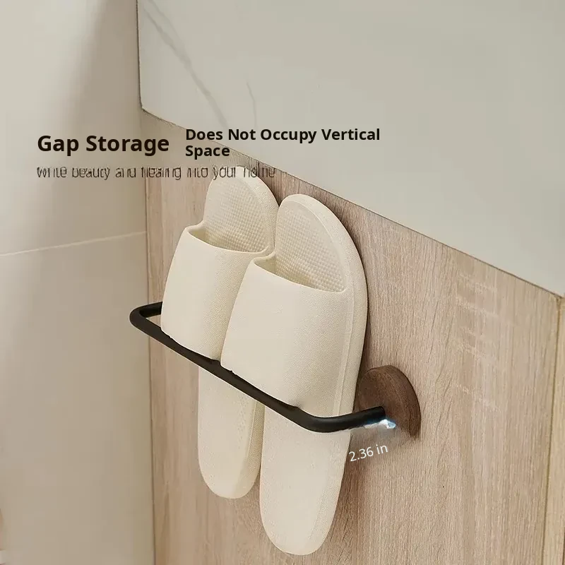 Walnut Wood No-Drill Bathroom Slipper Rack - Wall-Mounted Storage Organizer for Shoes, Perfect for Toilets and Behind Doors, Space-Saving Solution for a Tidy Home