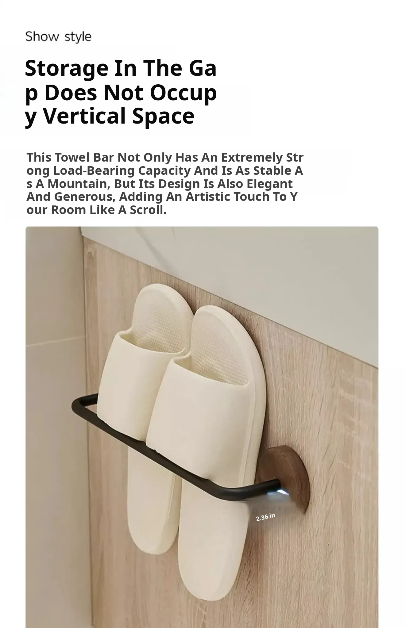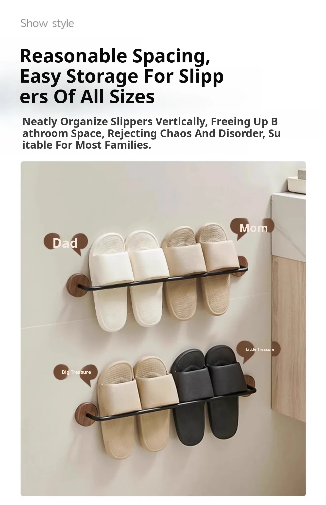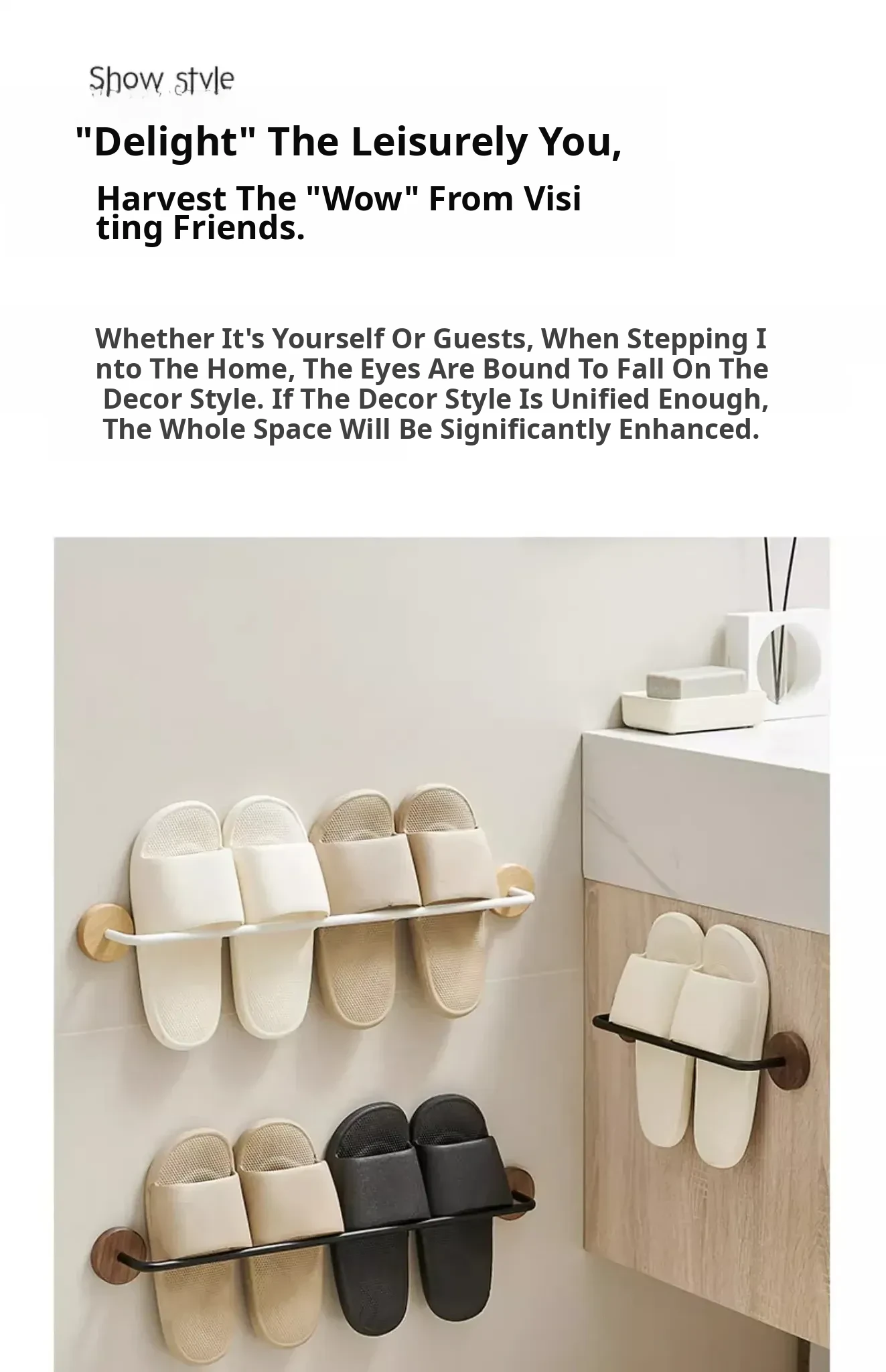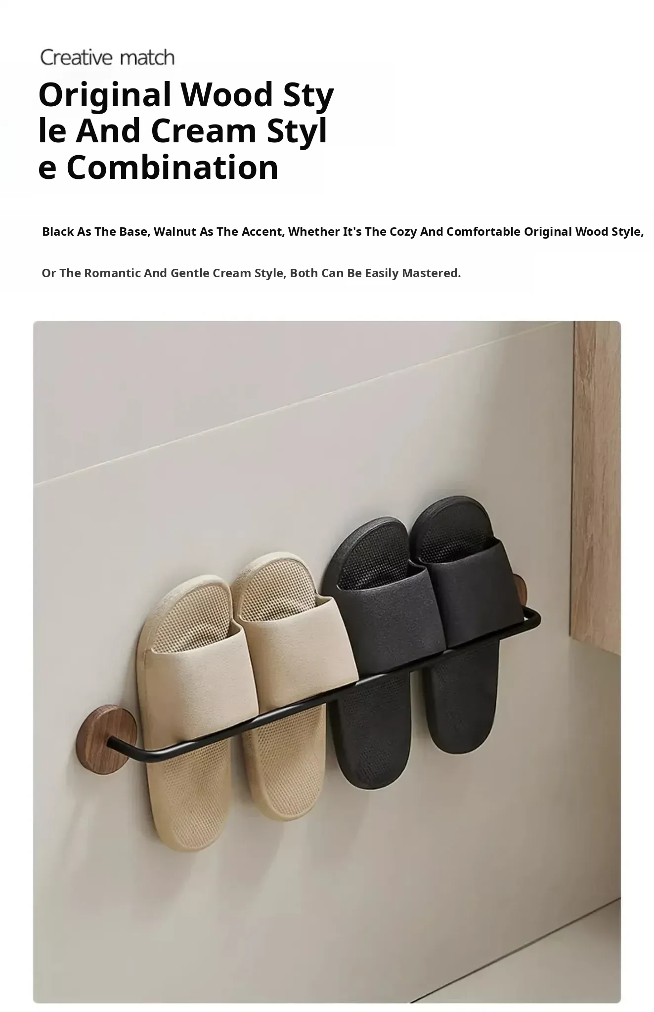 Walnut Wood No-Drill Bathroom Slipper Rack - Wall-Mounted Storage Organizer for Shoes, Perfect for Toilets and Behind Doors, Space-Saving Solution for a Tidy Home