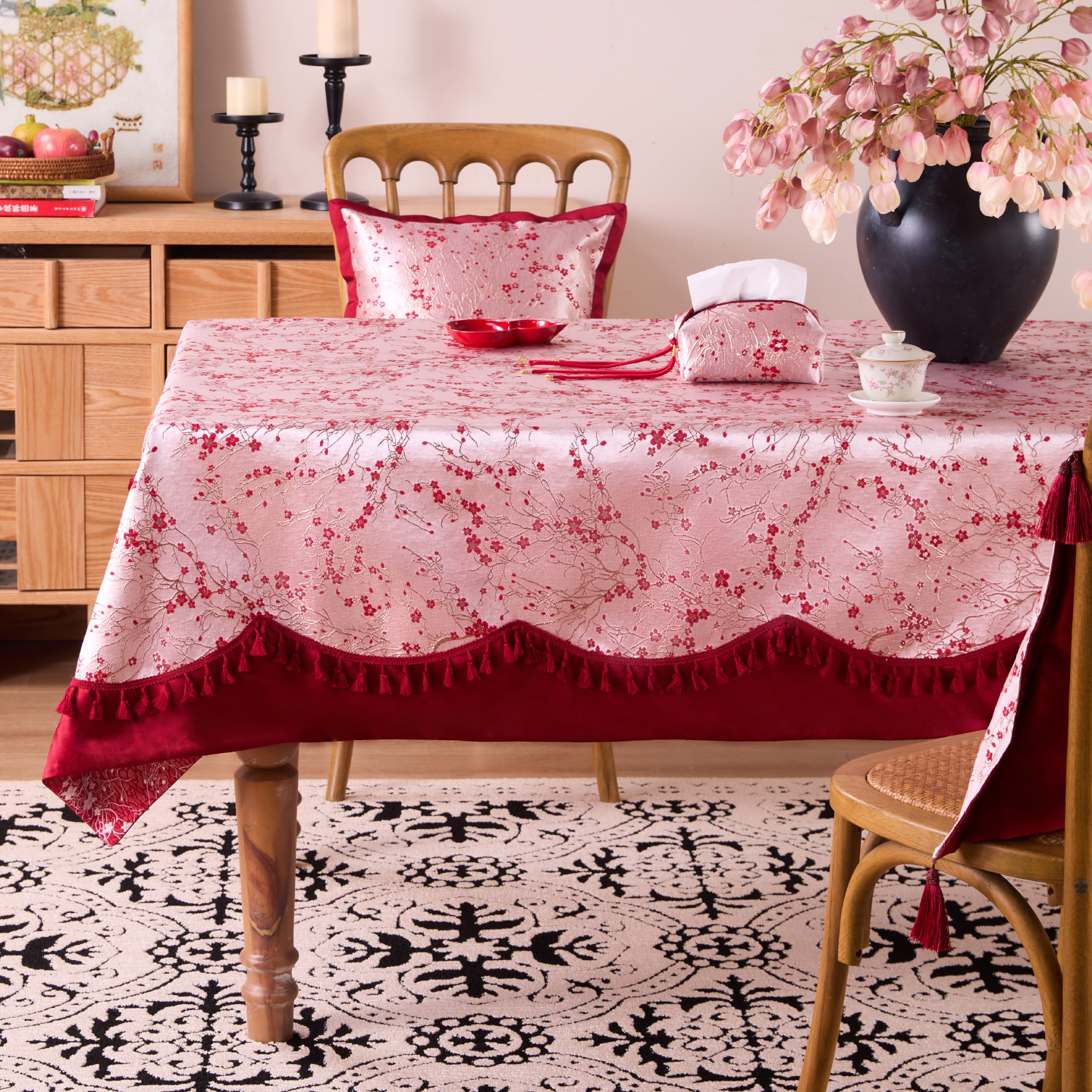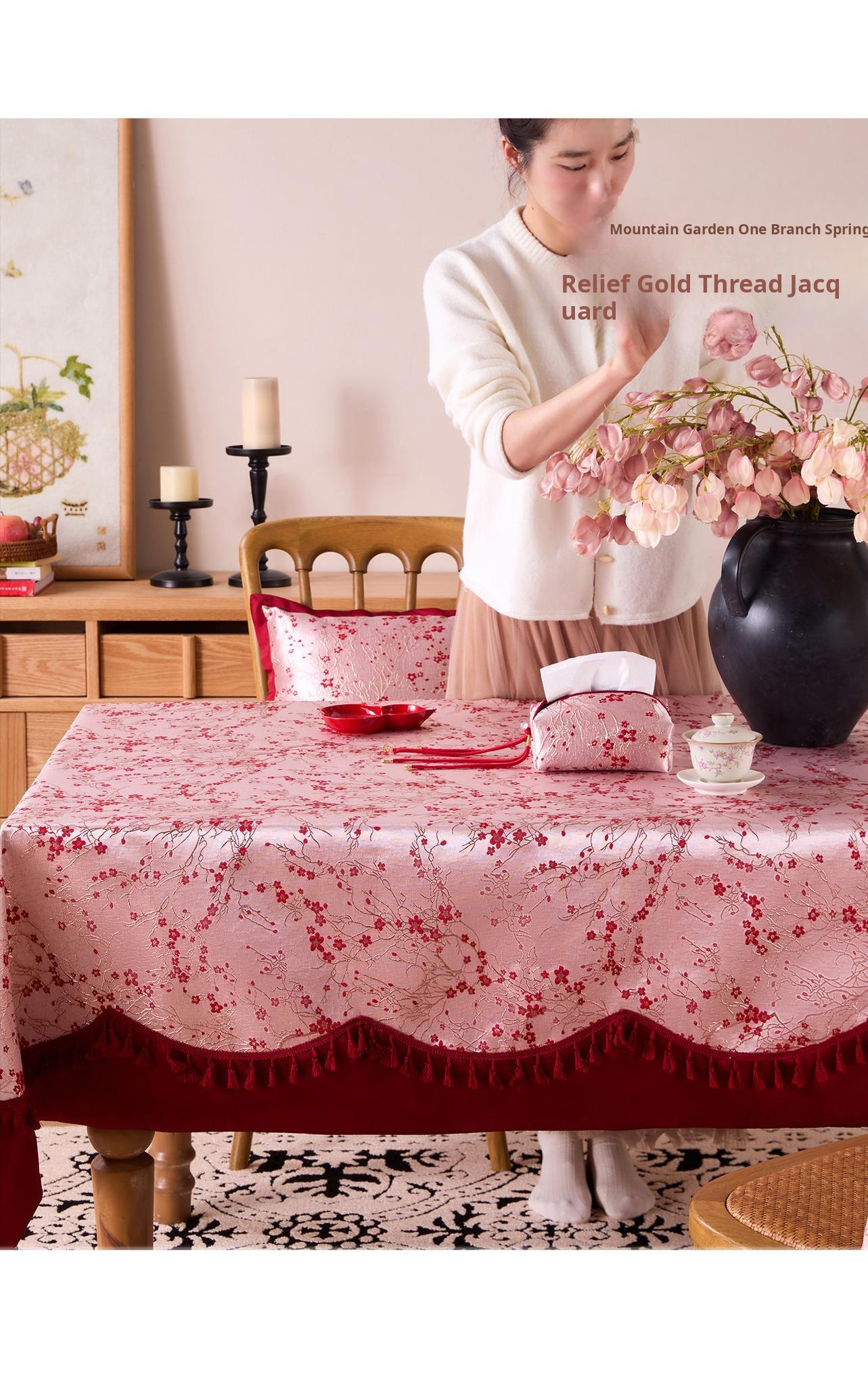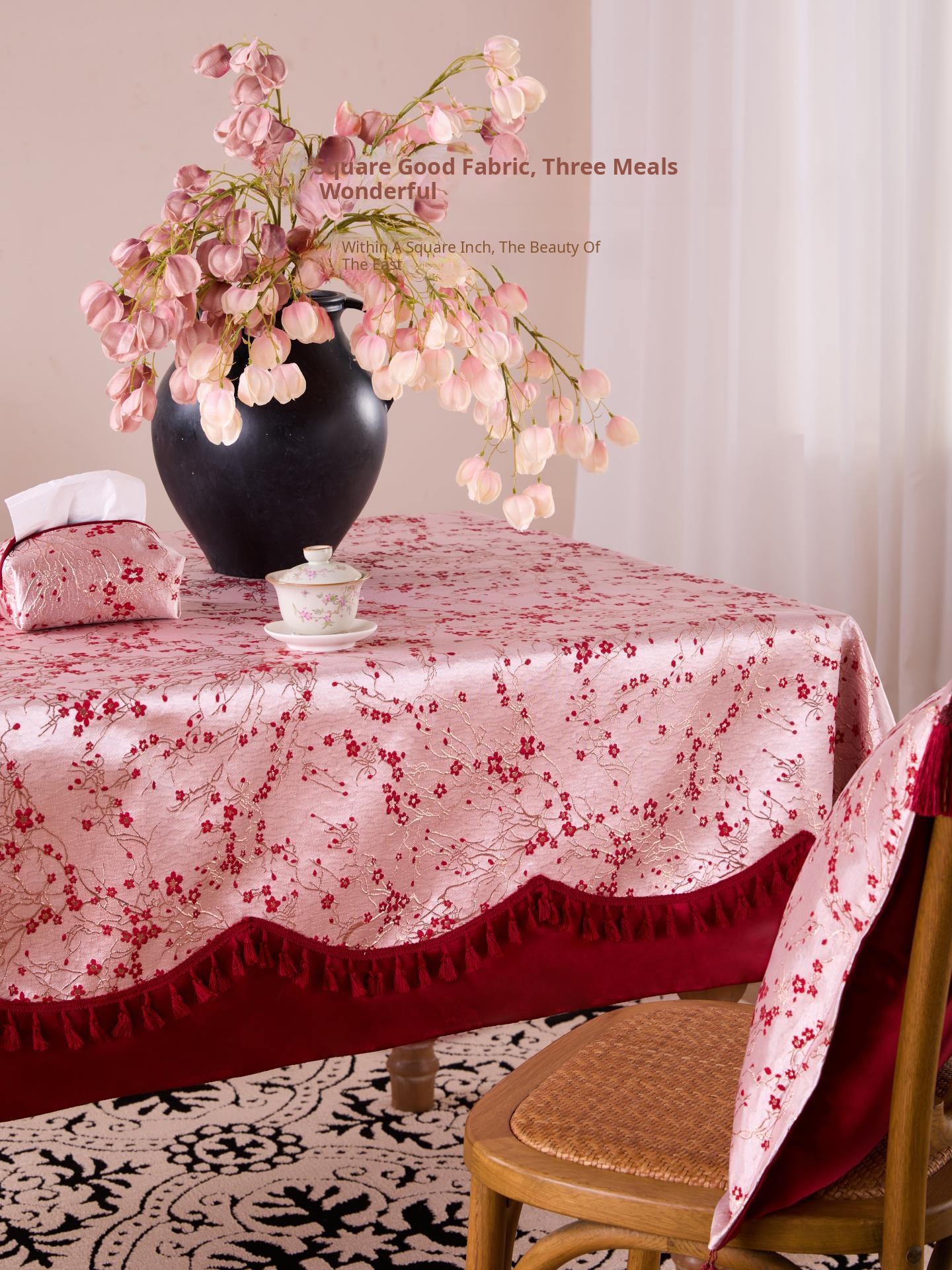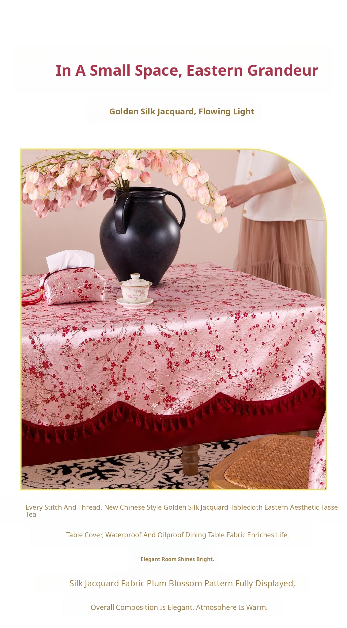 Waterproof and Oil-Resistant Tablecloth for Coffee Tables – Easy Care, Chic Luxury Dining Table Mat with Chinese Style Tassels – Elevate Your Dining Experience!