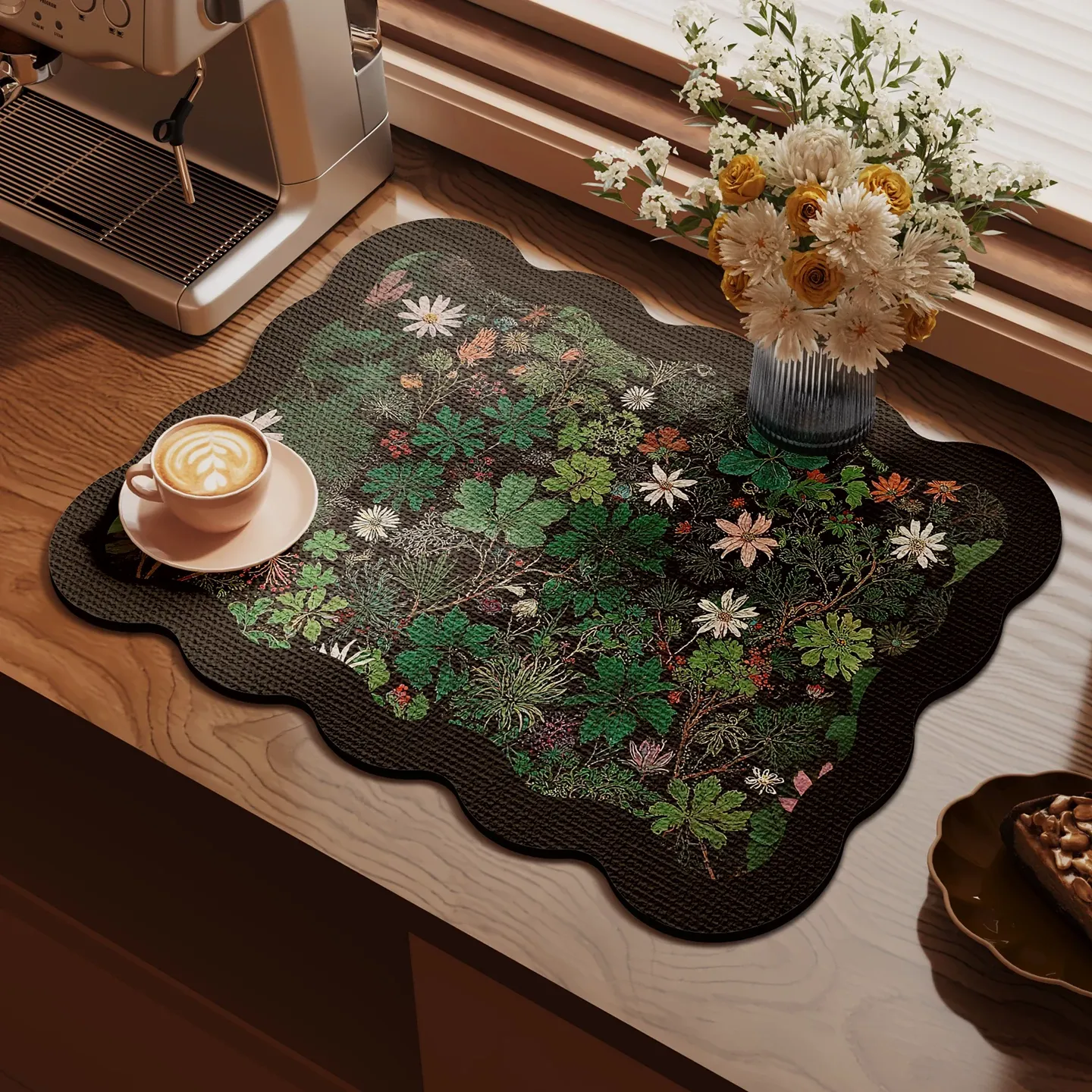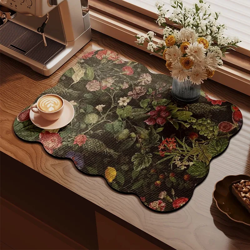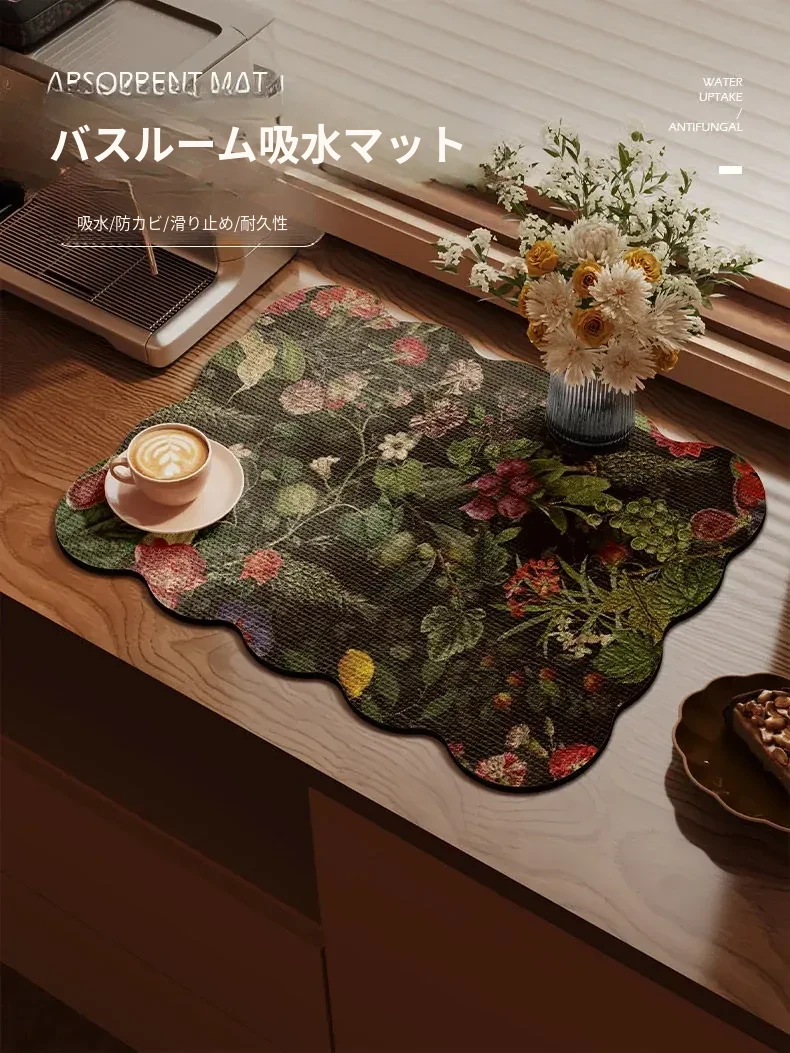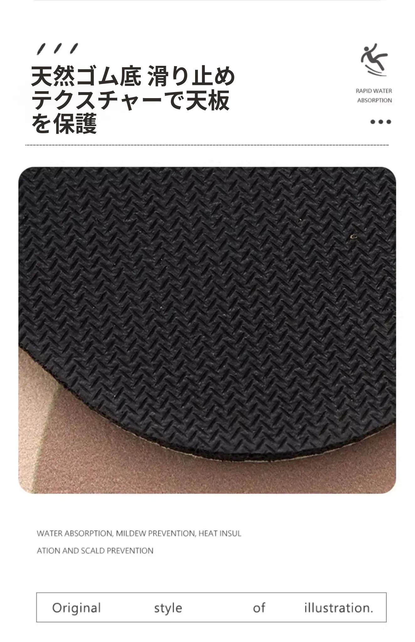 キッチン用吸水マット!コーヒーメーカー専用の水切りマット。テーブルやバーカウンターにぴったりな小型マット。熱を防ぎ、テーブルを守る必需品!