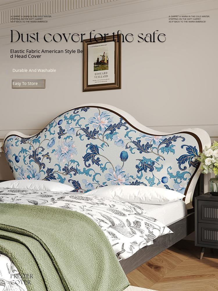 American Style Luxurious Upholstered Headboard Cover - Versatile Soft Fabric with Unique Curved Design, Perfect for All Seasons and Protecting Your Bedhead