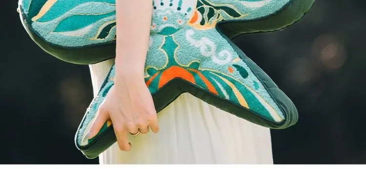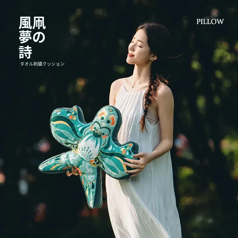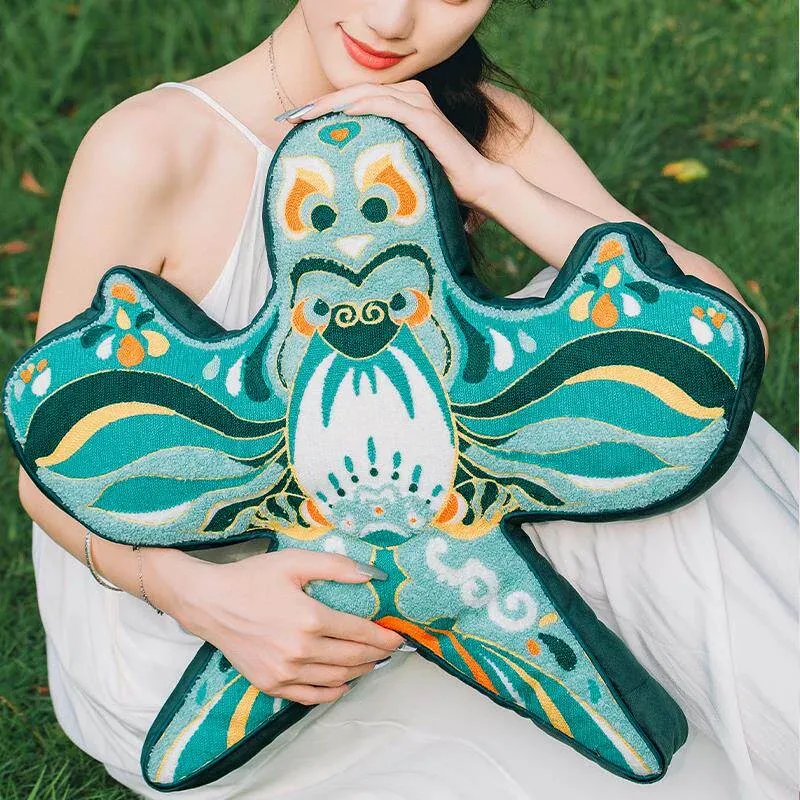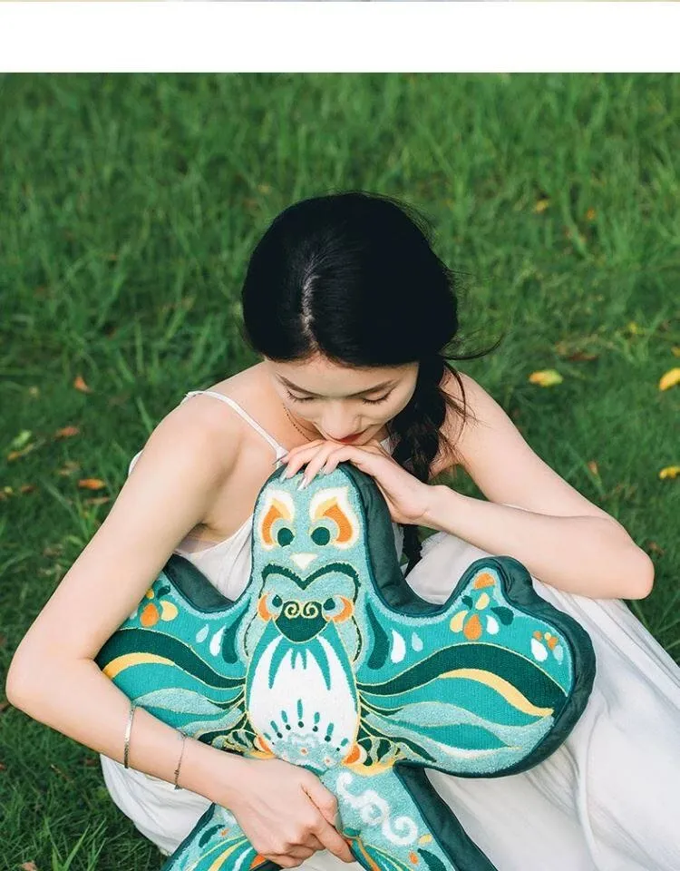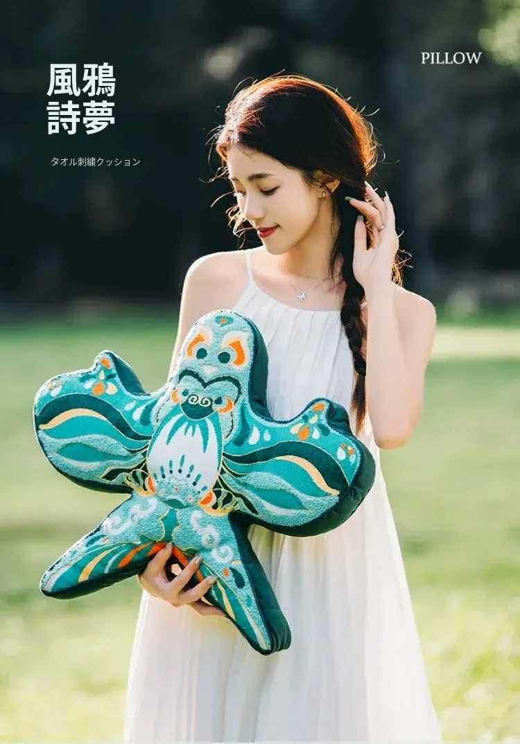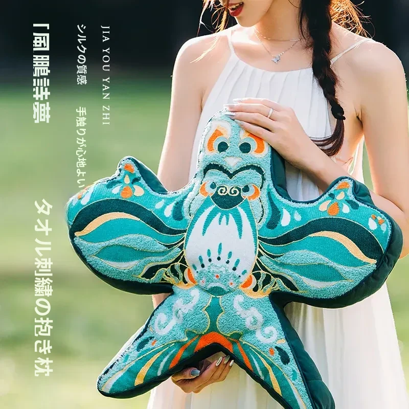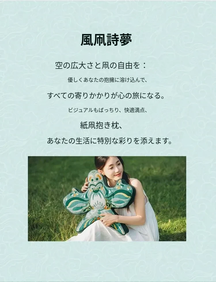 新中式デザインの紙凧クッション - 創造的な刺繍で魅了するリビングソファ用の腰枕、中国風のデザイナー背もたれクッション、個性的な形状でインテリアを引き立てます!