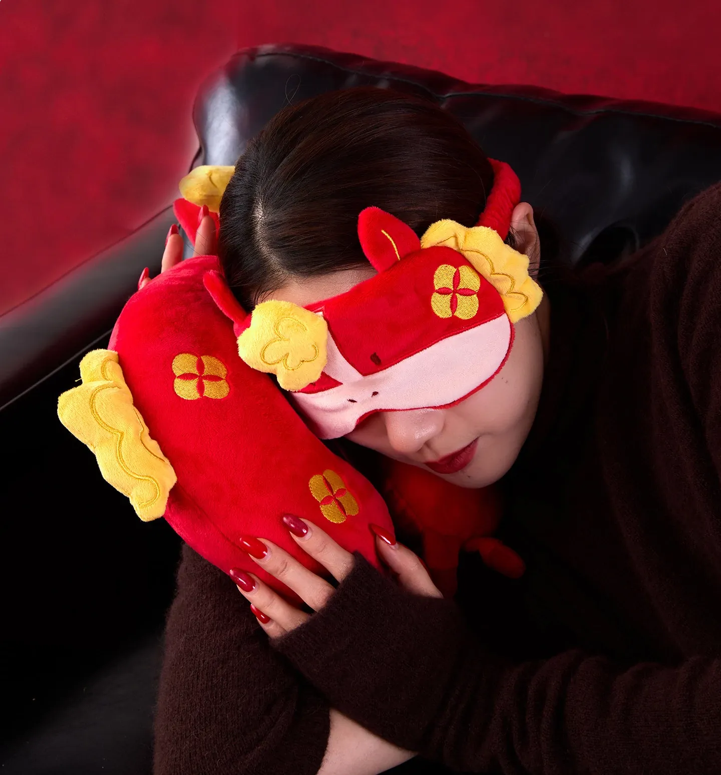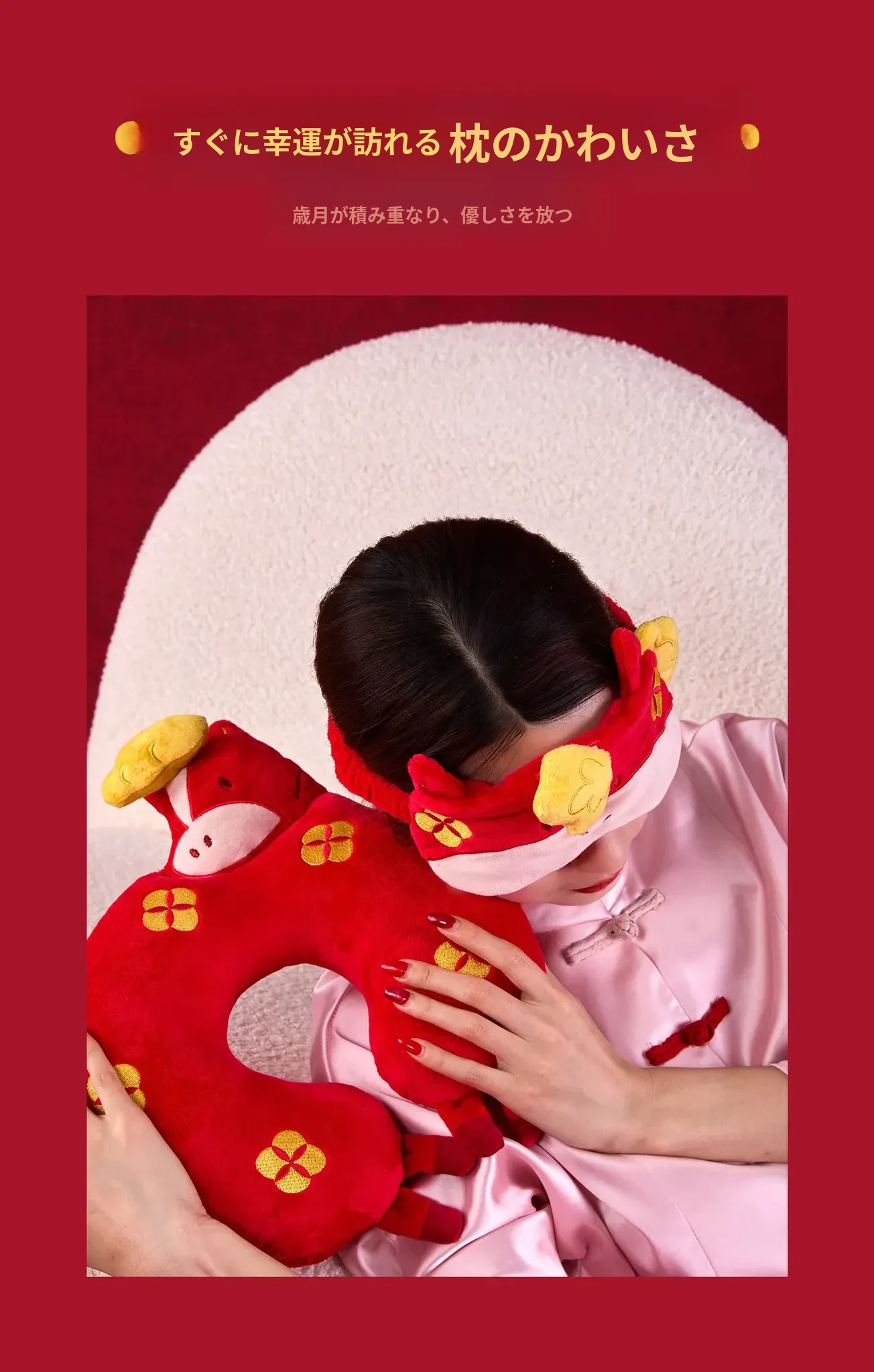 オフィスでの昼寝に最適!かわいい赤色の昼寝枕、うつ伏せ寝専用、首をしっかりサポート。快適なひとときを提供するアイデア商品、目を休めるアイマスク付き!あなたのリラックスタイムを格上げします!