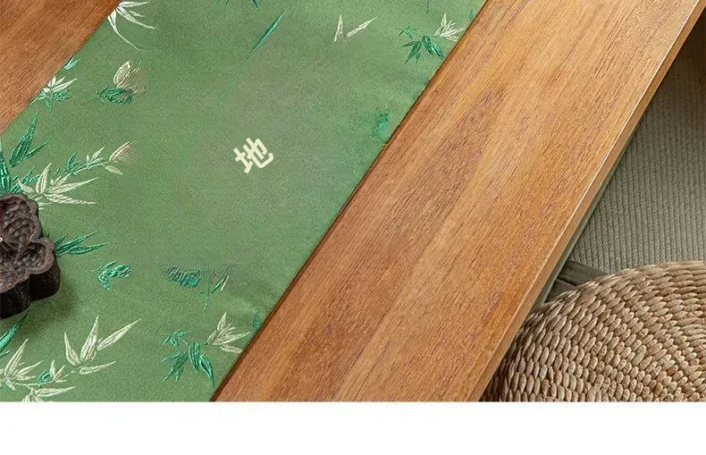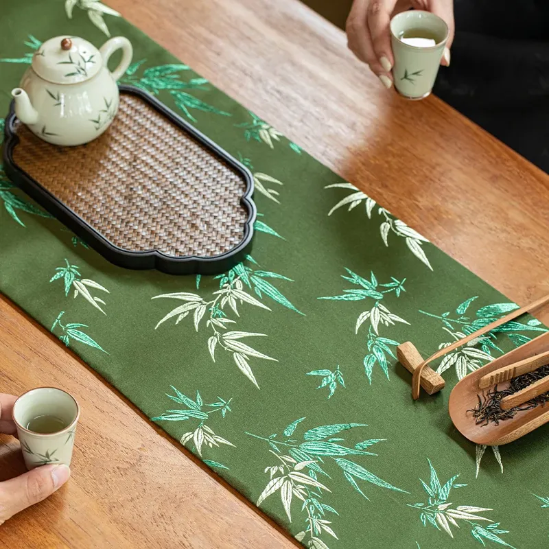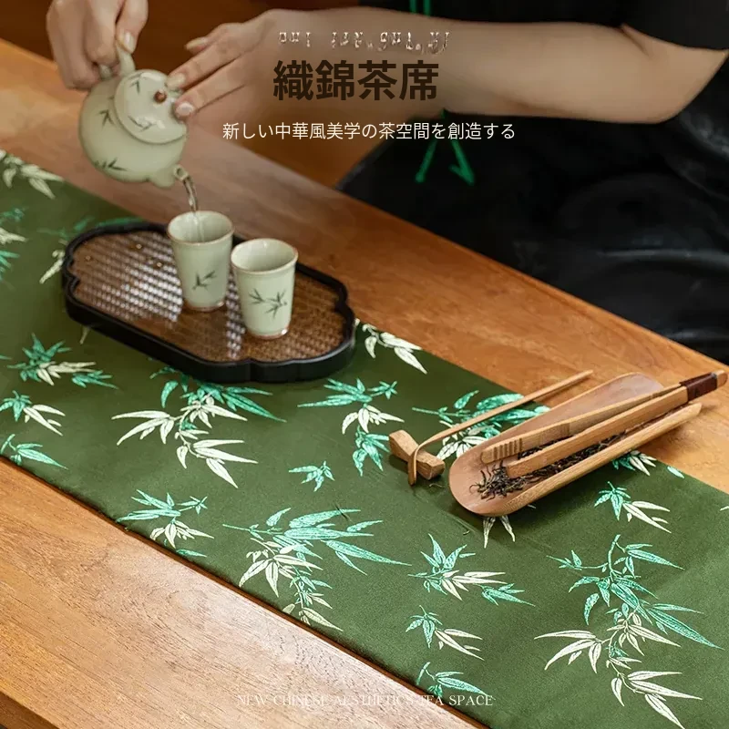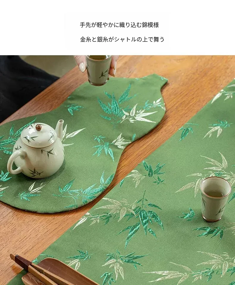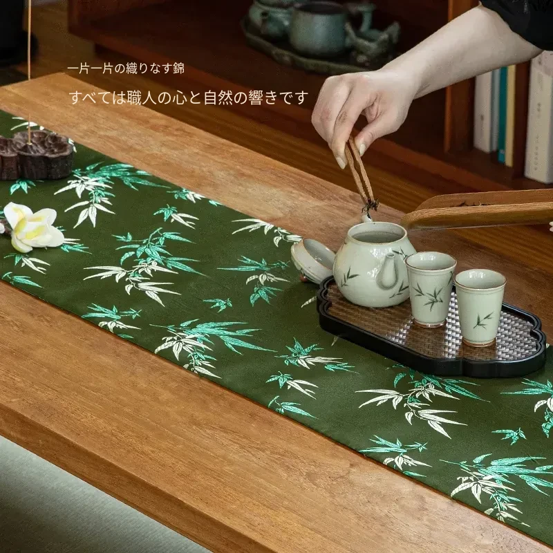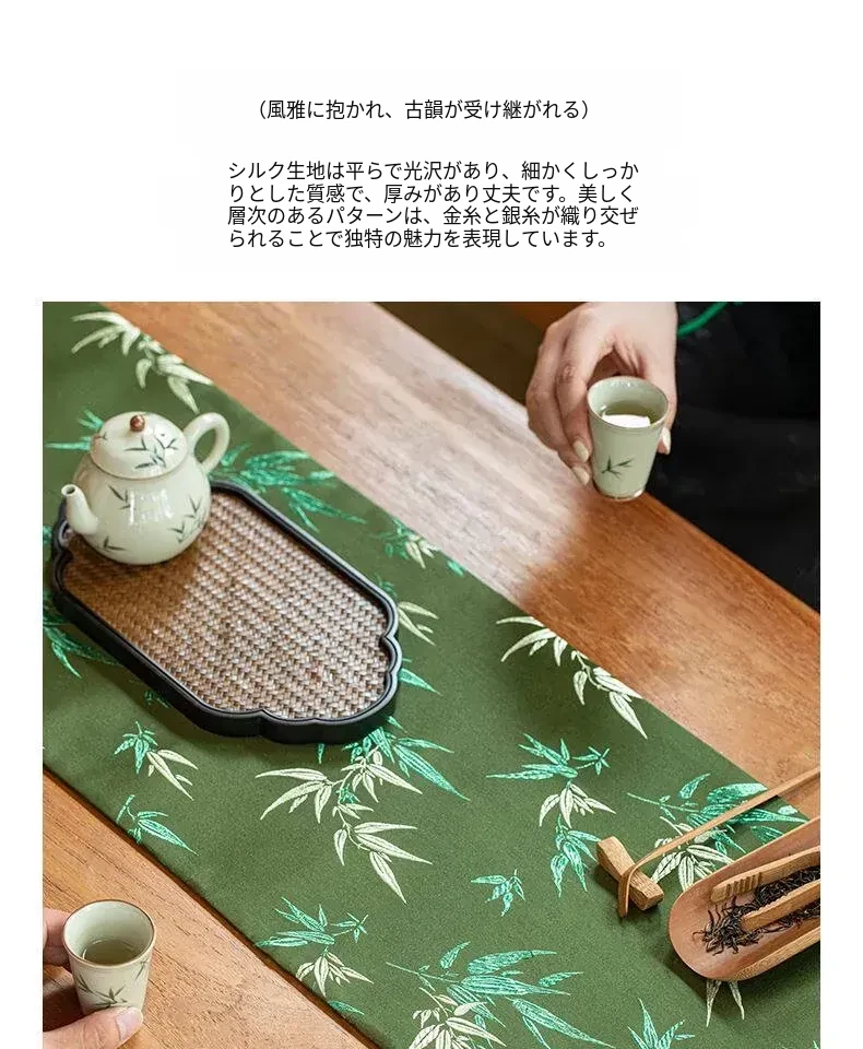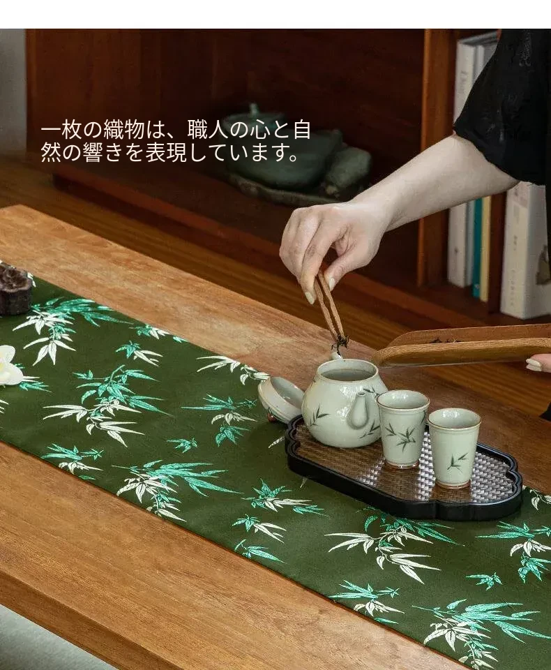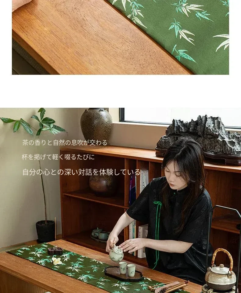 中式禅の雰囲気漂う防水・防熱竹柄テーブルクロス - 高級感あふれるリッチな茶席用テーブルマットで、心安らぐひとときを演出!
