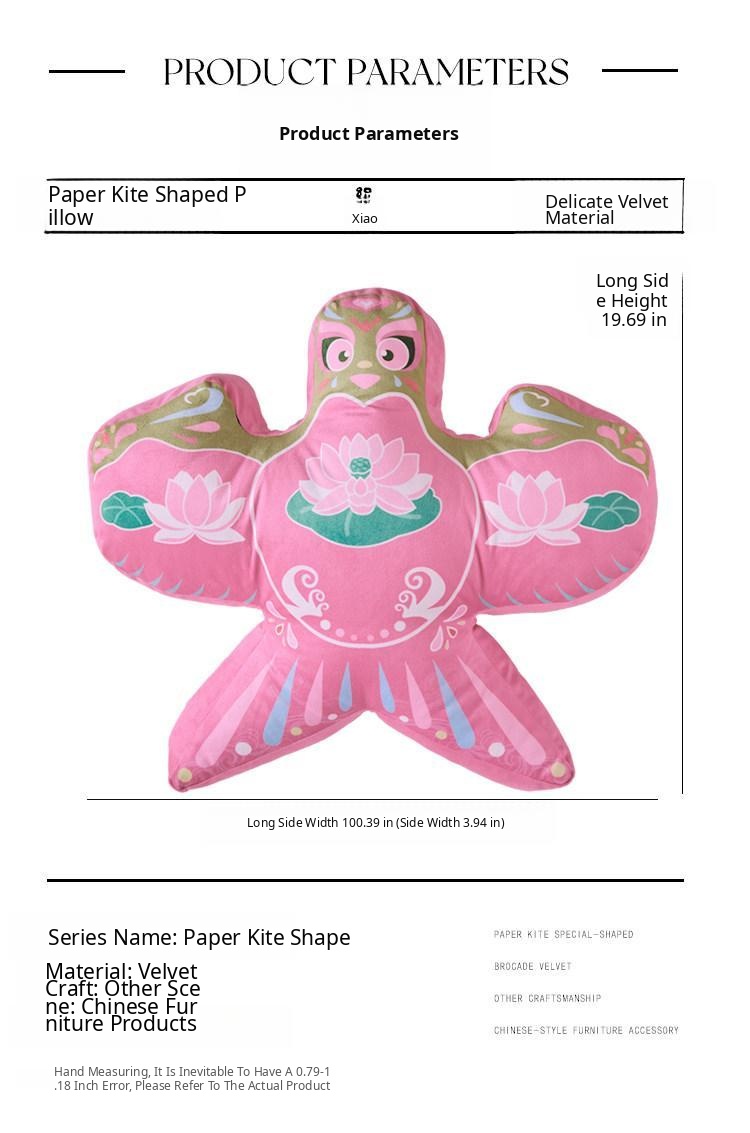 Elegant Chinese-Style Kites Pillow – Versatile Decorative Cushion for Living Room, Sofa, and Bed – Unique Shaped Supportive Lumbar Pillow with a Touch of Luxury and Sophistication